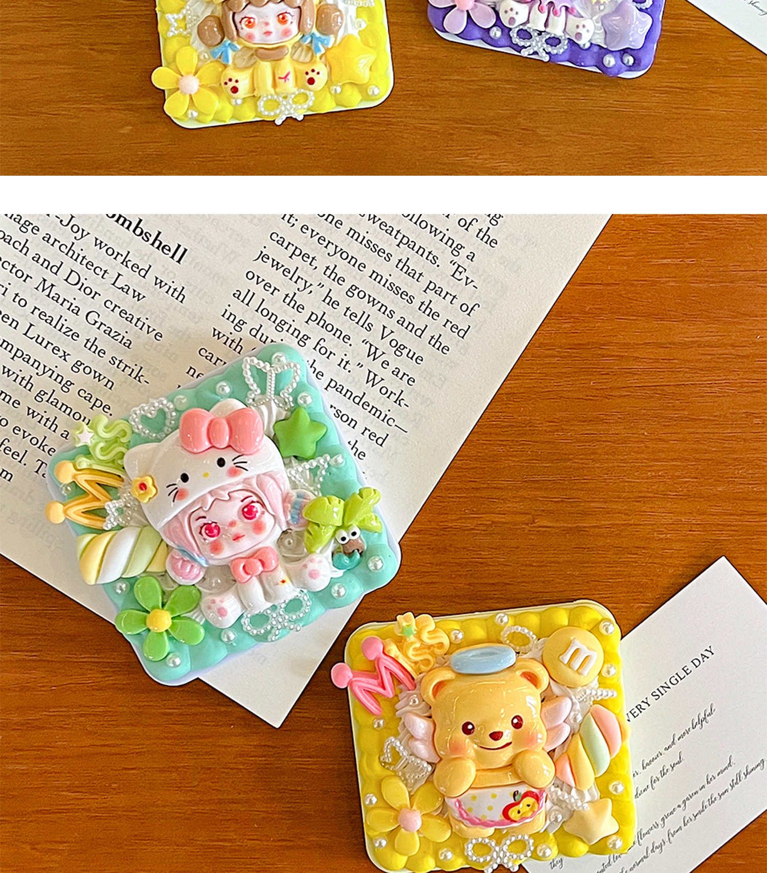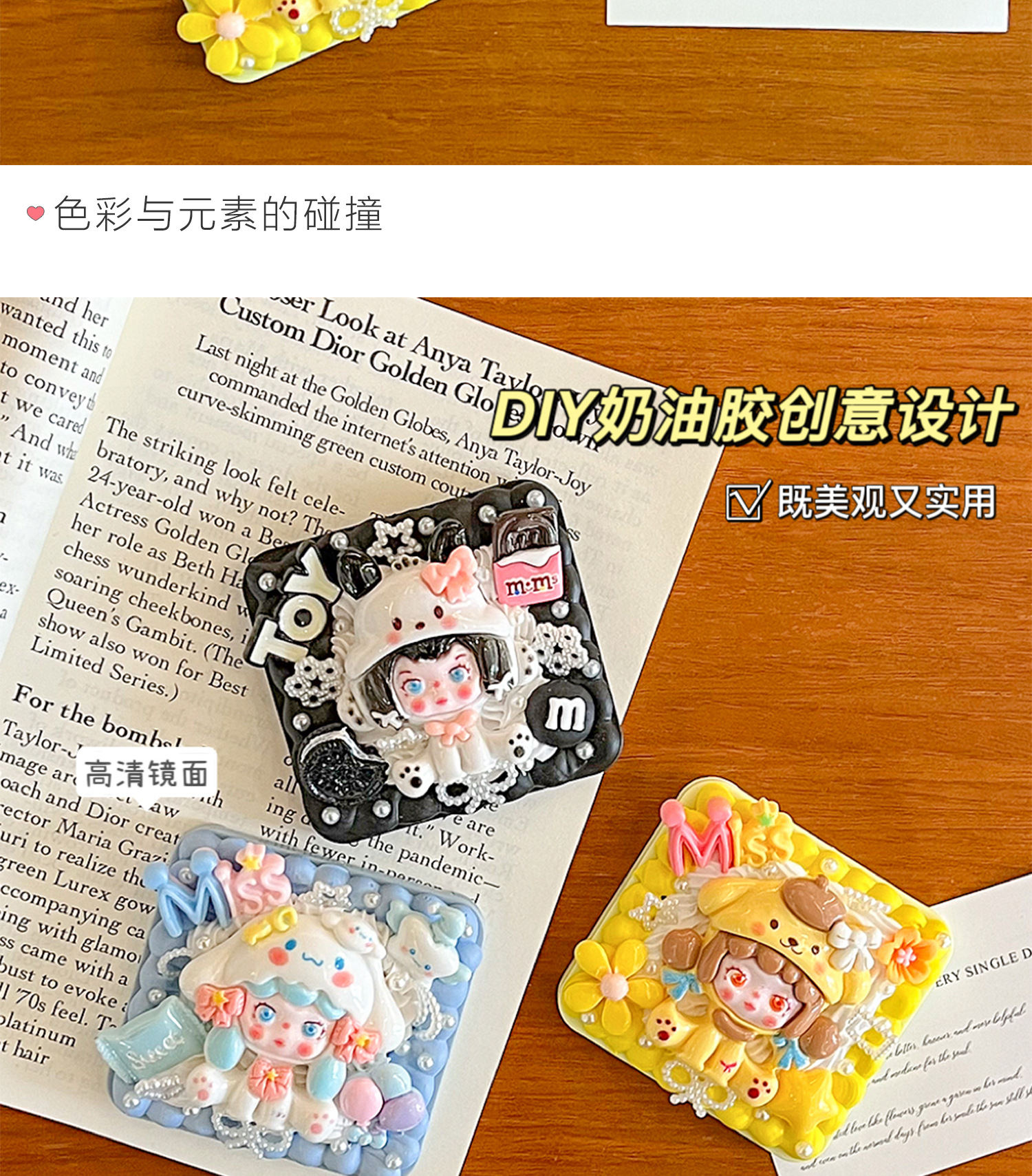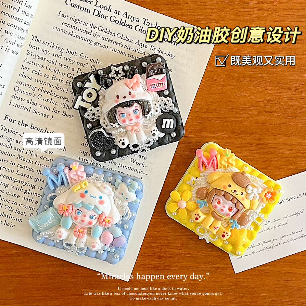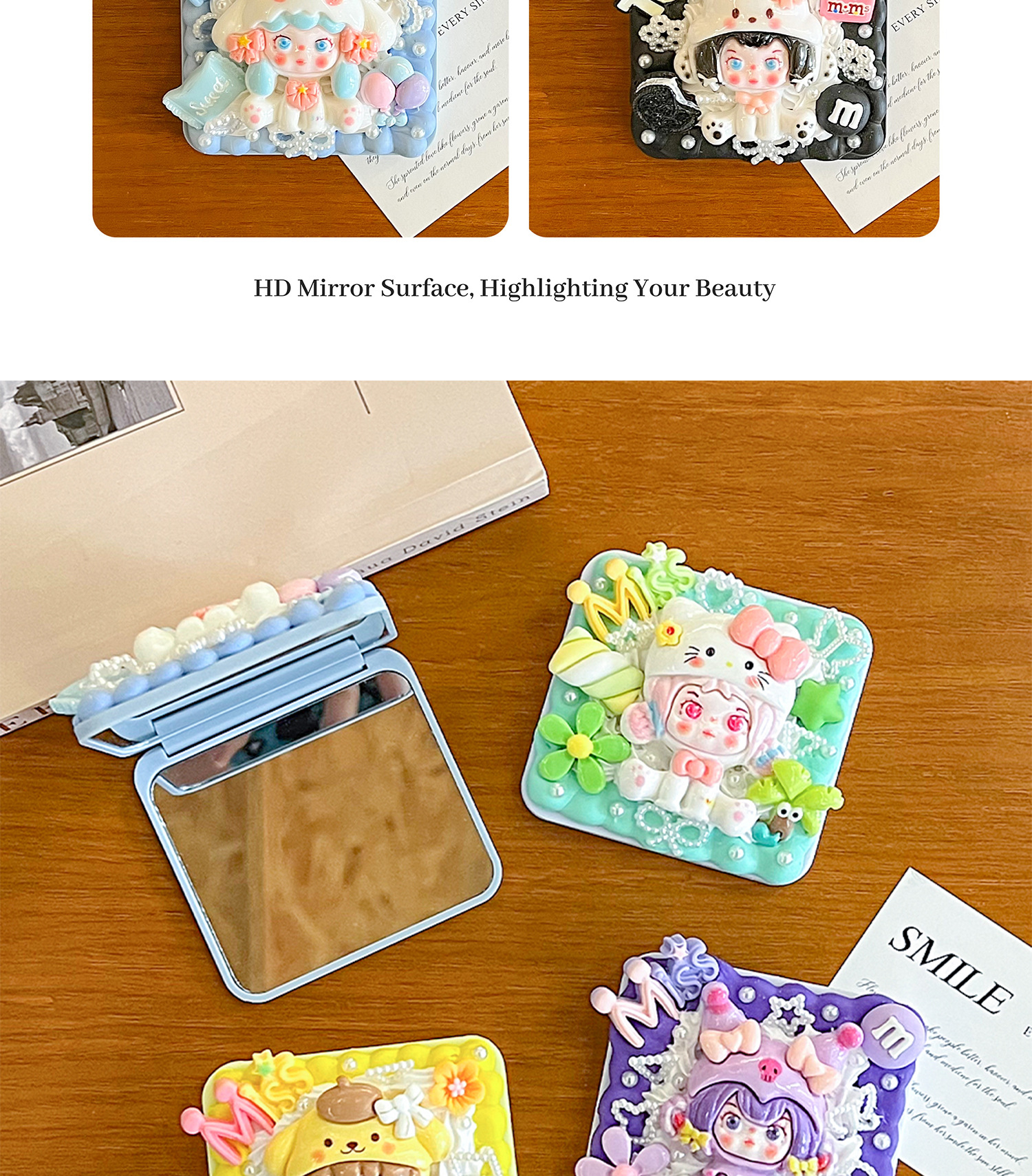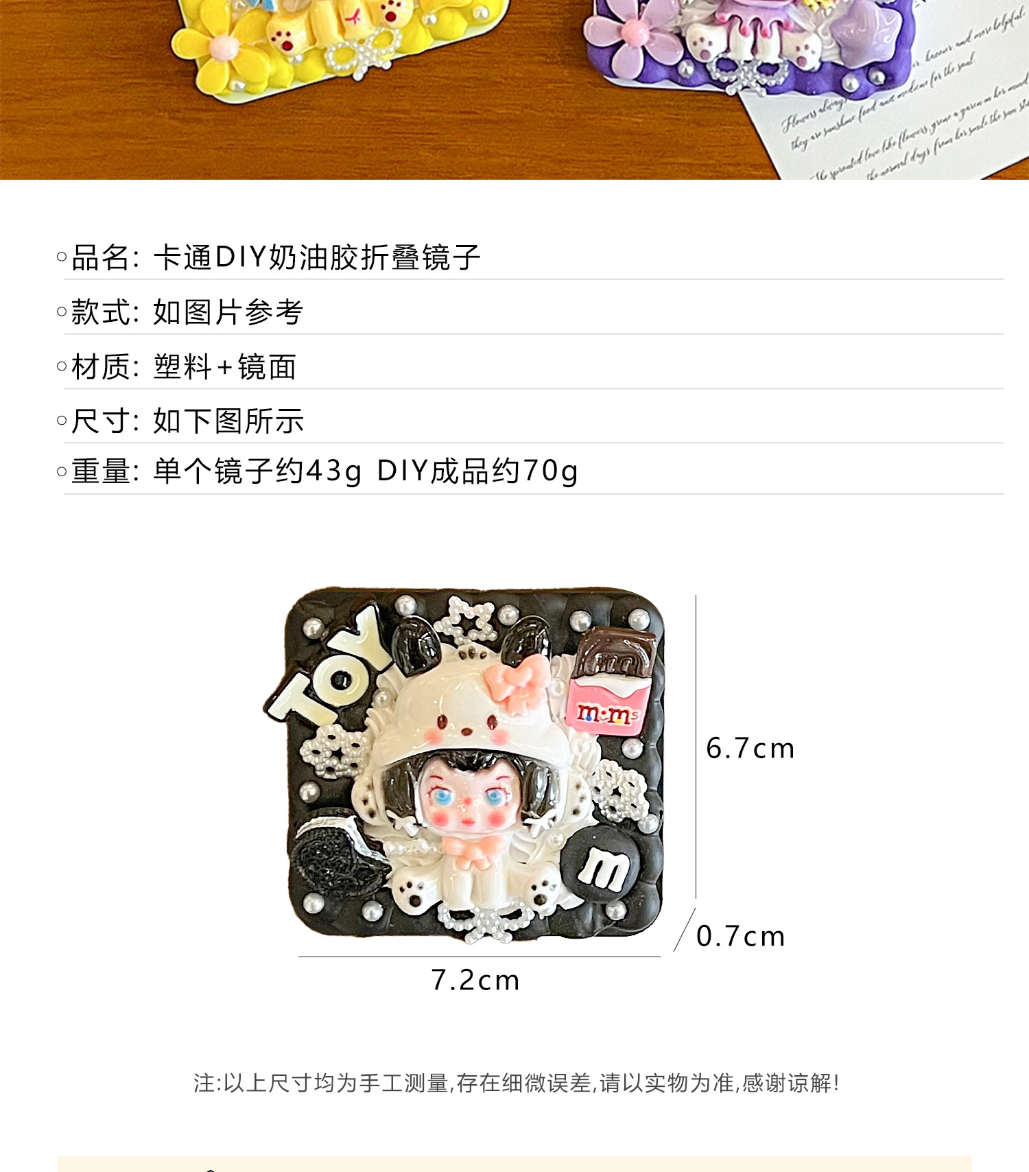 女孩子奶油胶手工diy正方形折叠镜子卡通三丽欧材料包化妆镜礼物