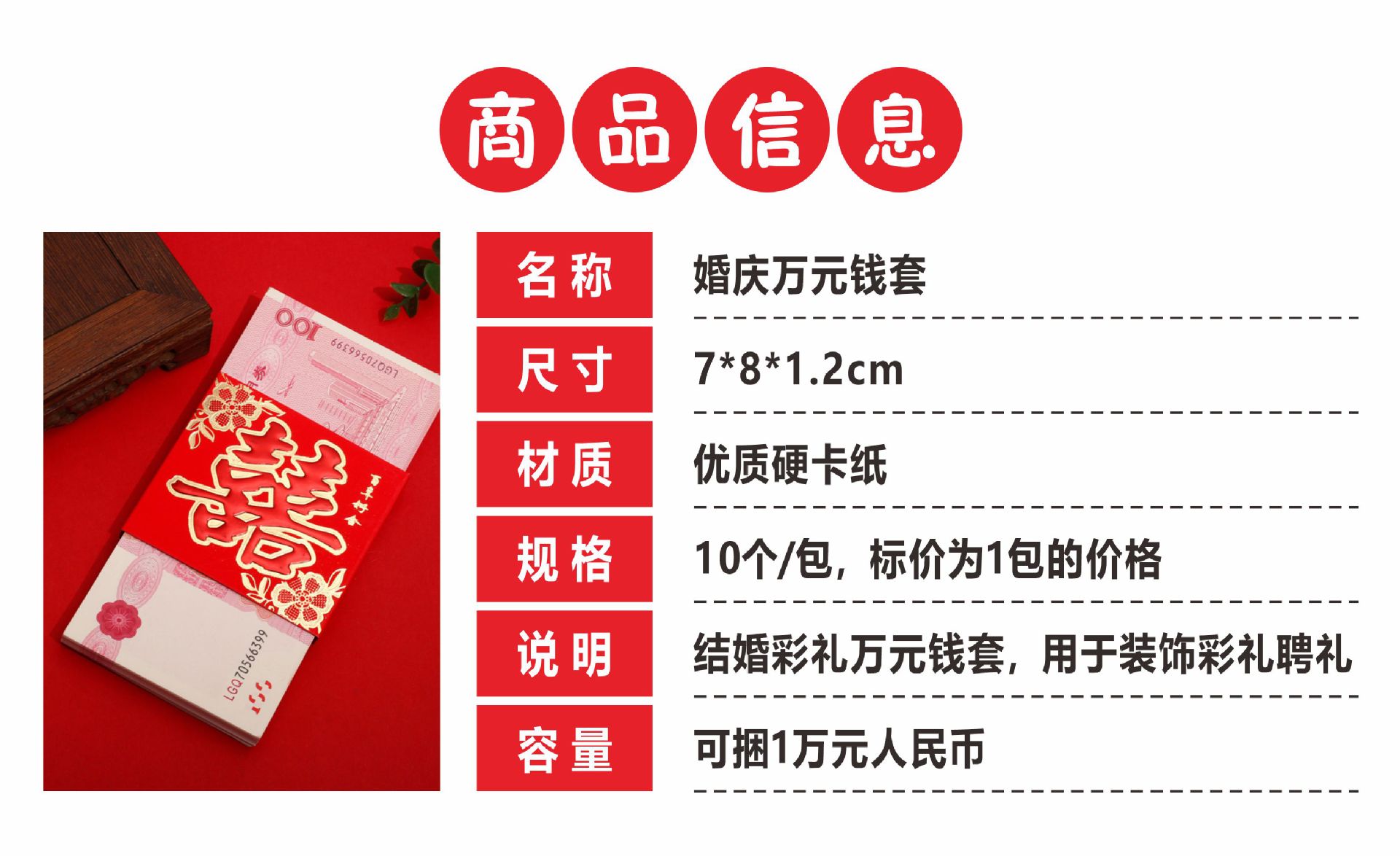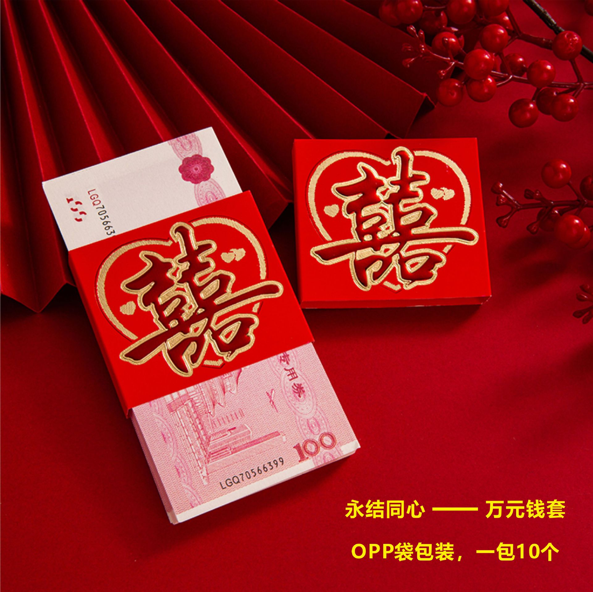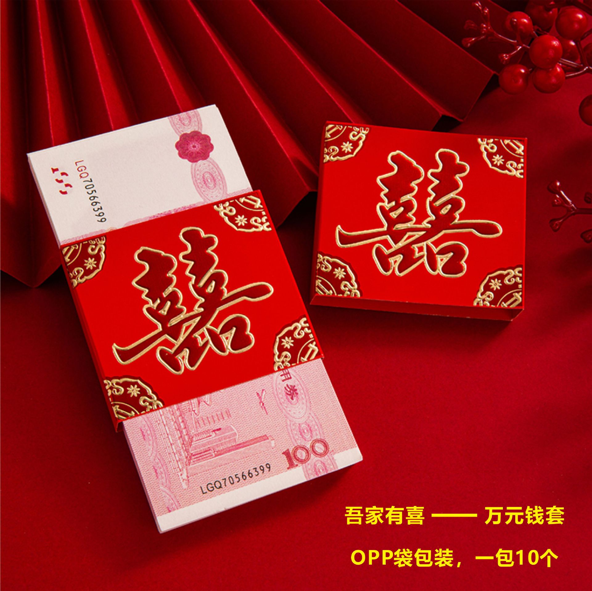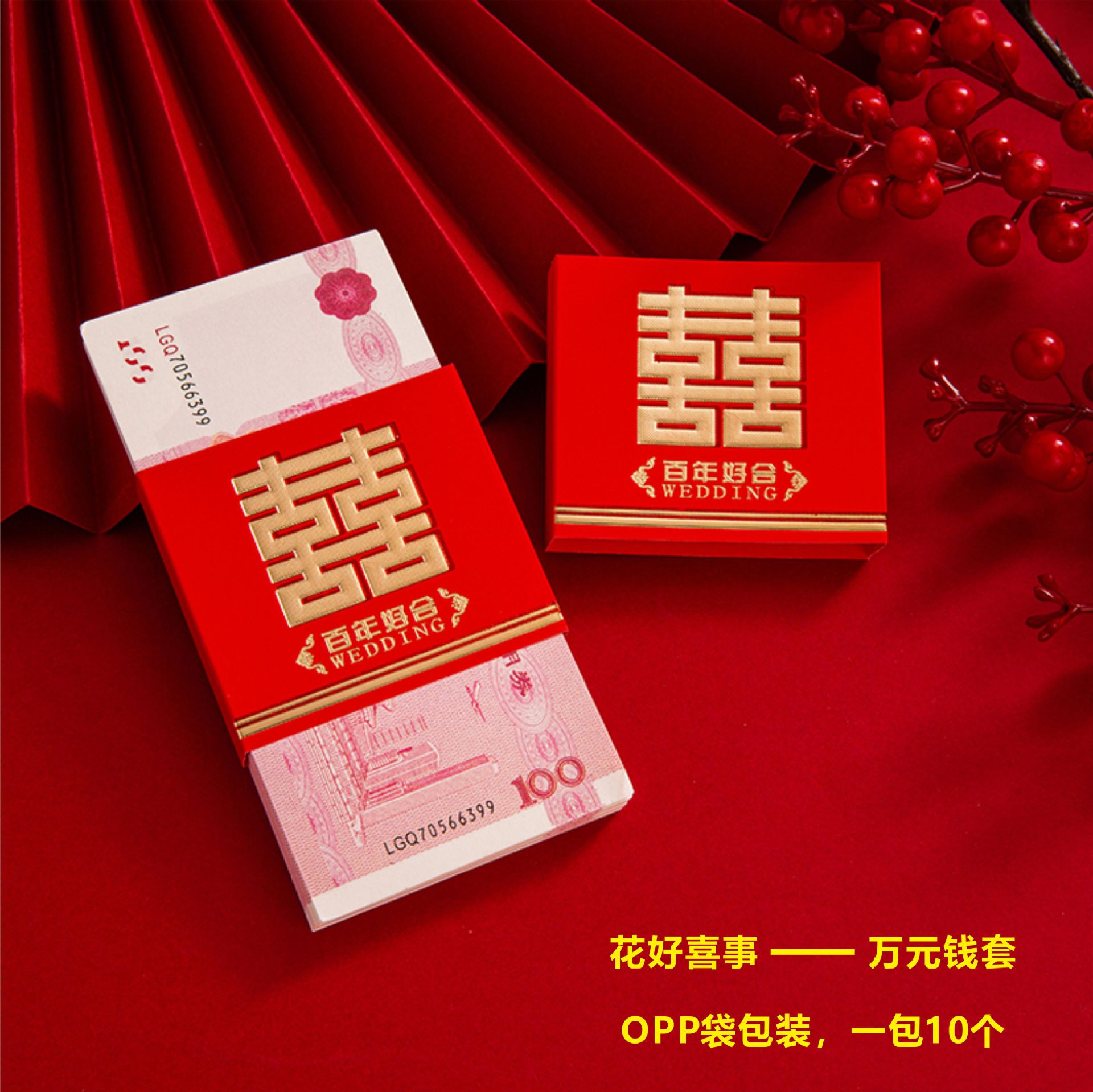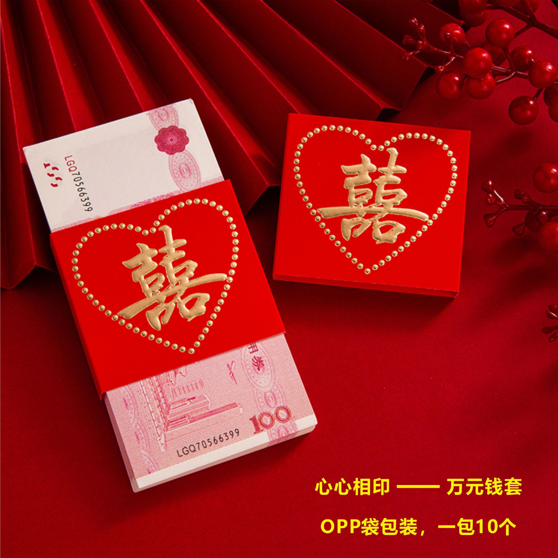 结婚红包婚礼万元钱封订婚庆彩礼捆钱套结婚聘礼钱套订婚万元卡套