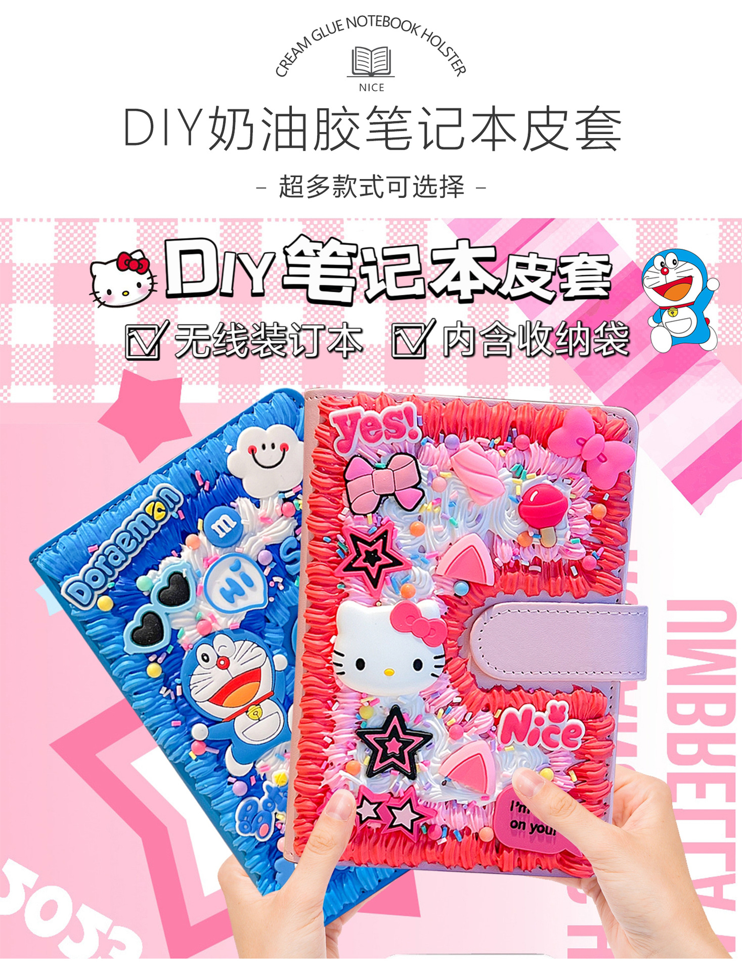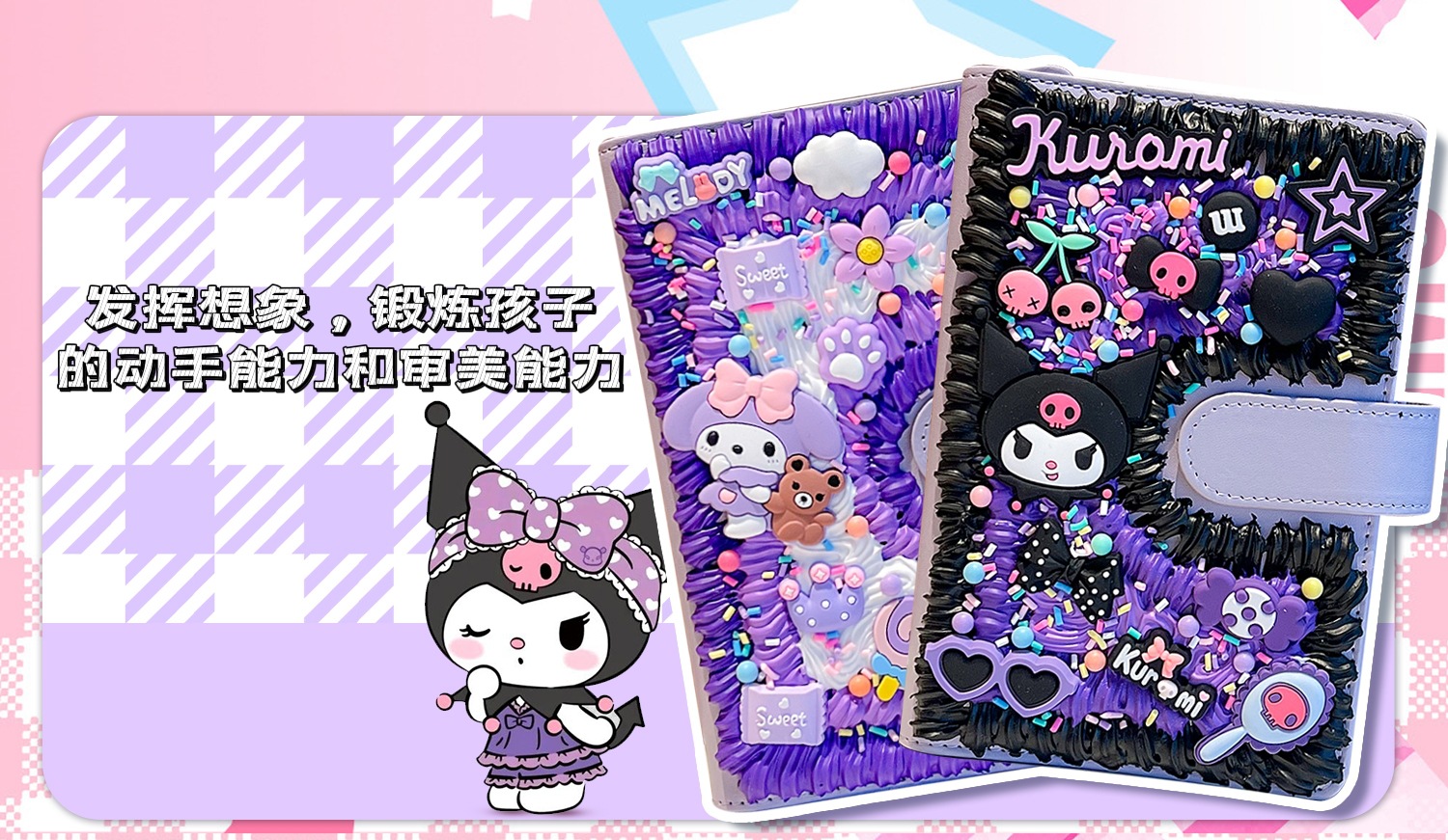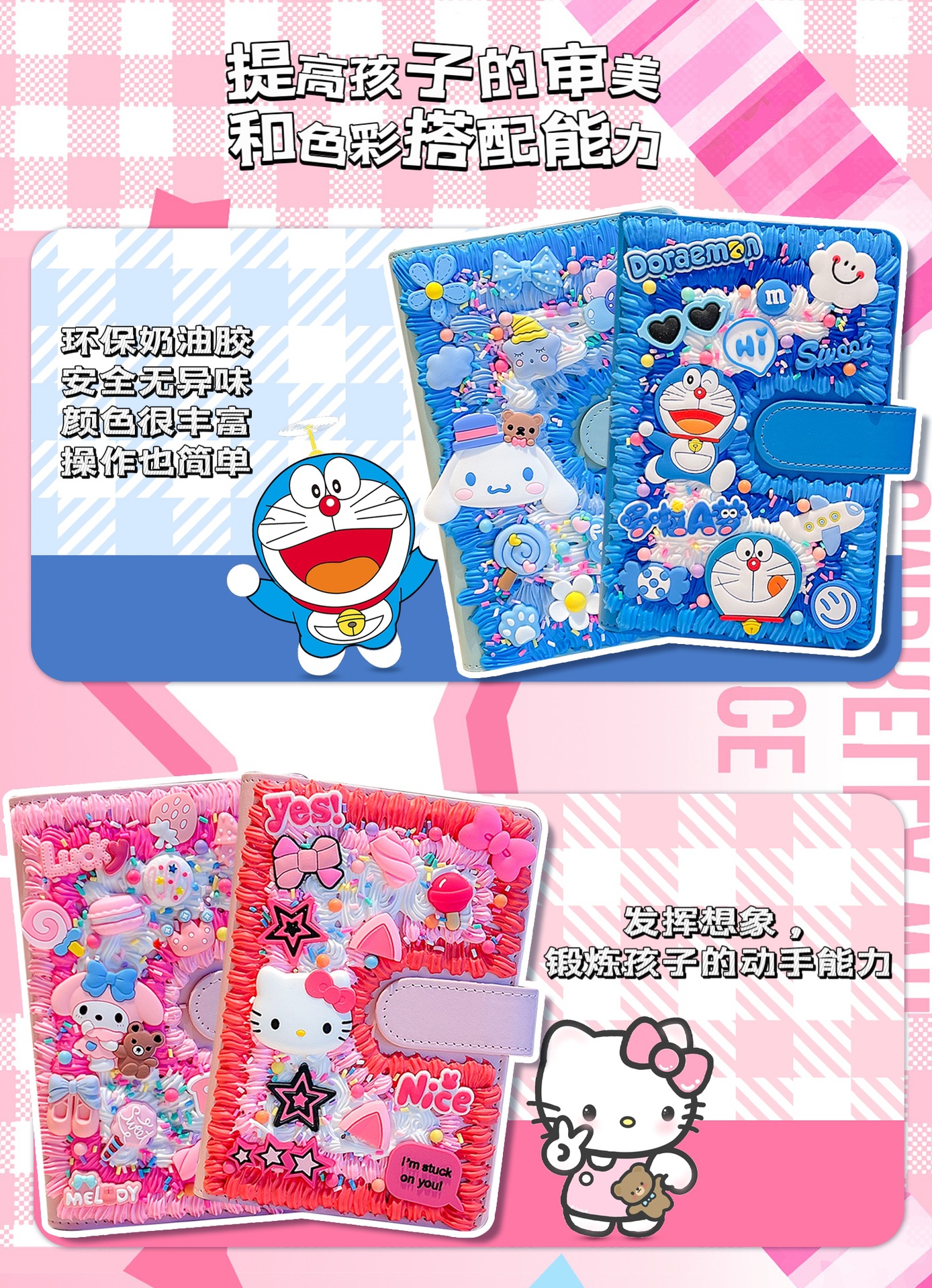 儿童手工奶油胶diy笔记本皮套材料包 学生学习三丽鸥手账本壳玩具