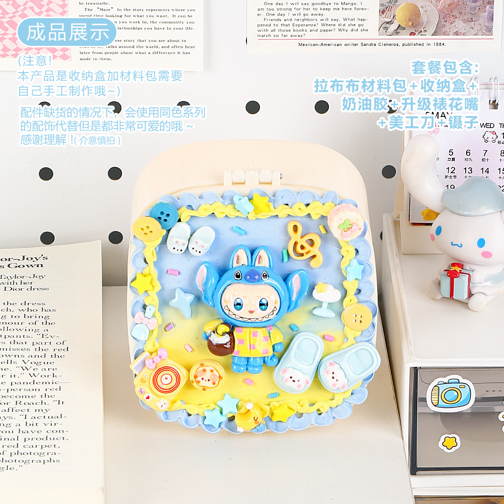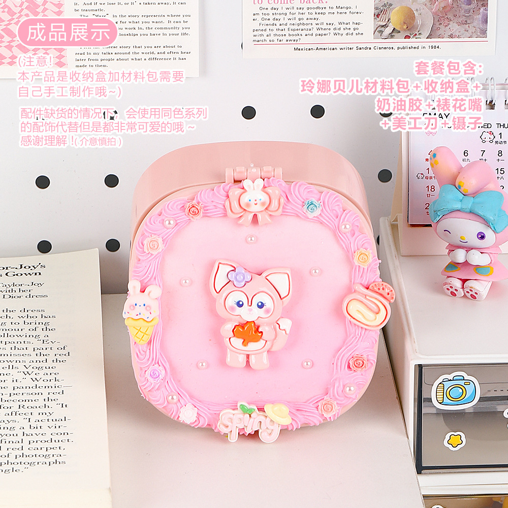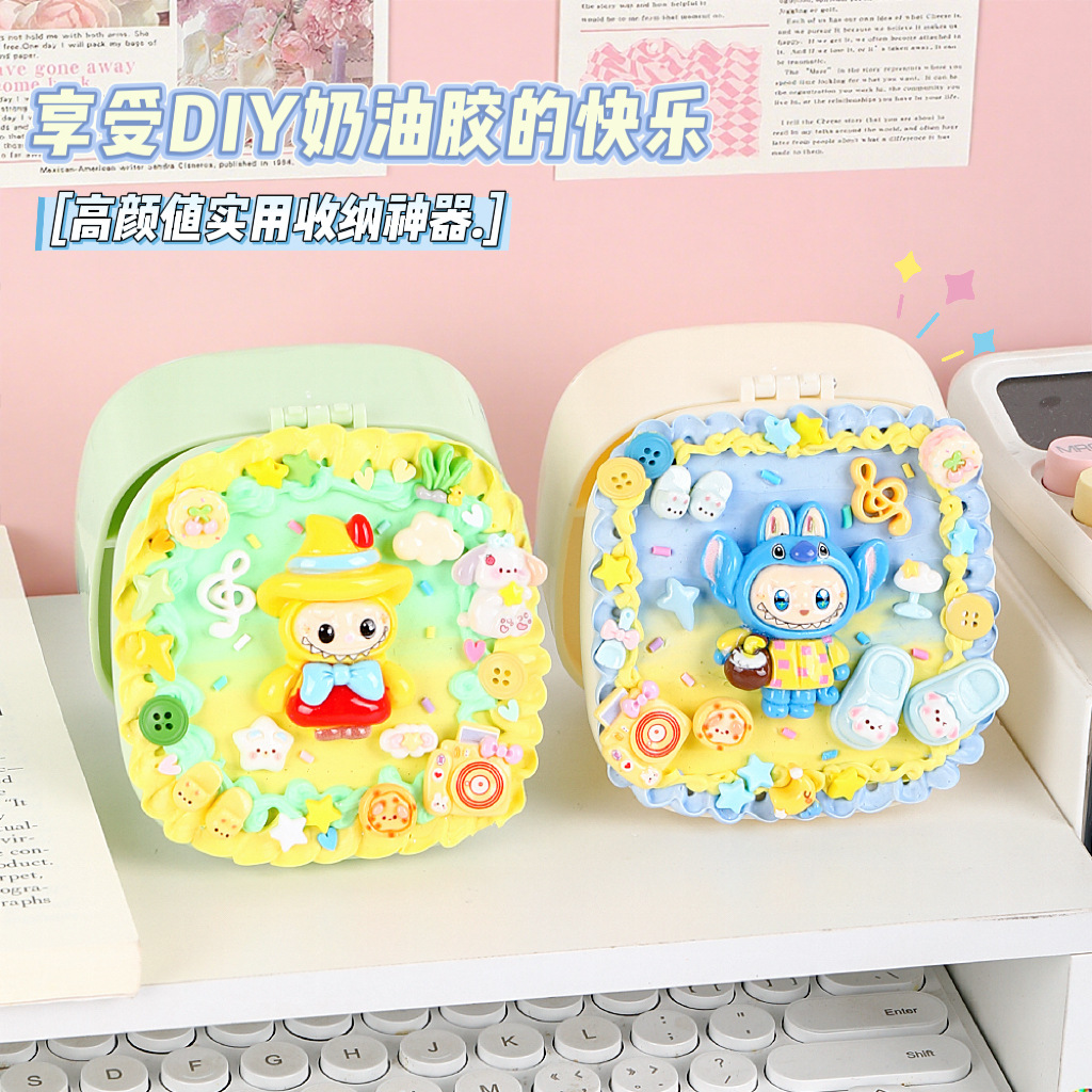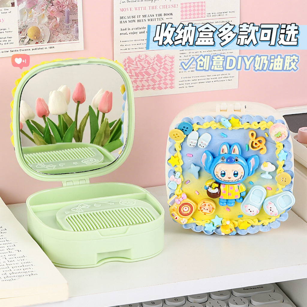 儿童diy奶油胶化妆镜收纳盒女孩子手工制作首饰盒材料包益智玩具