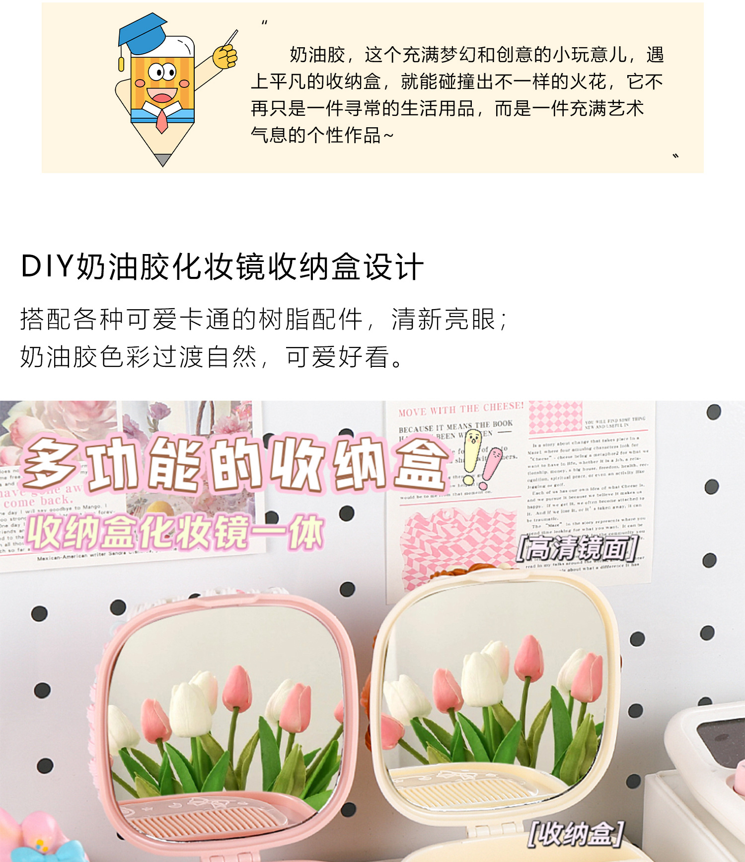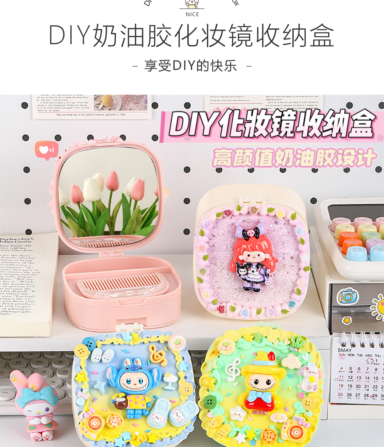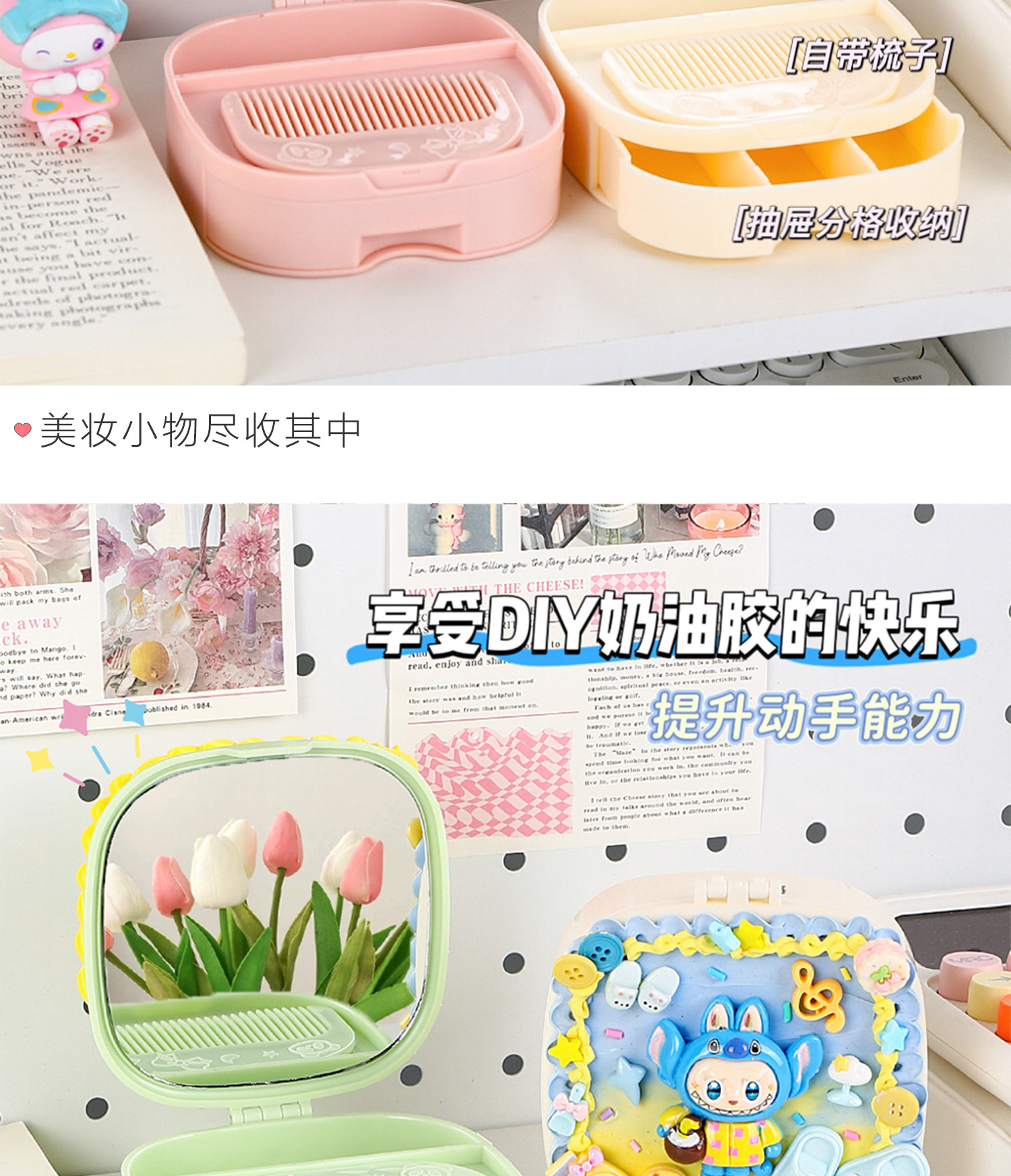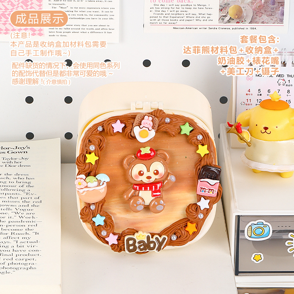 儿童diy奶油胶化妆镜收纳盒女孩子手工制作首饰盒材料包益智玩具