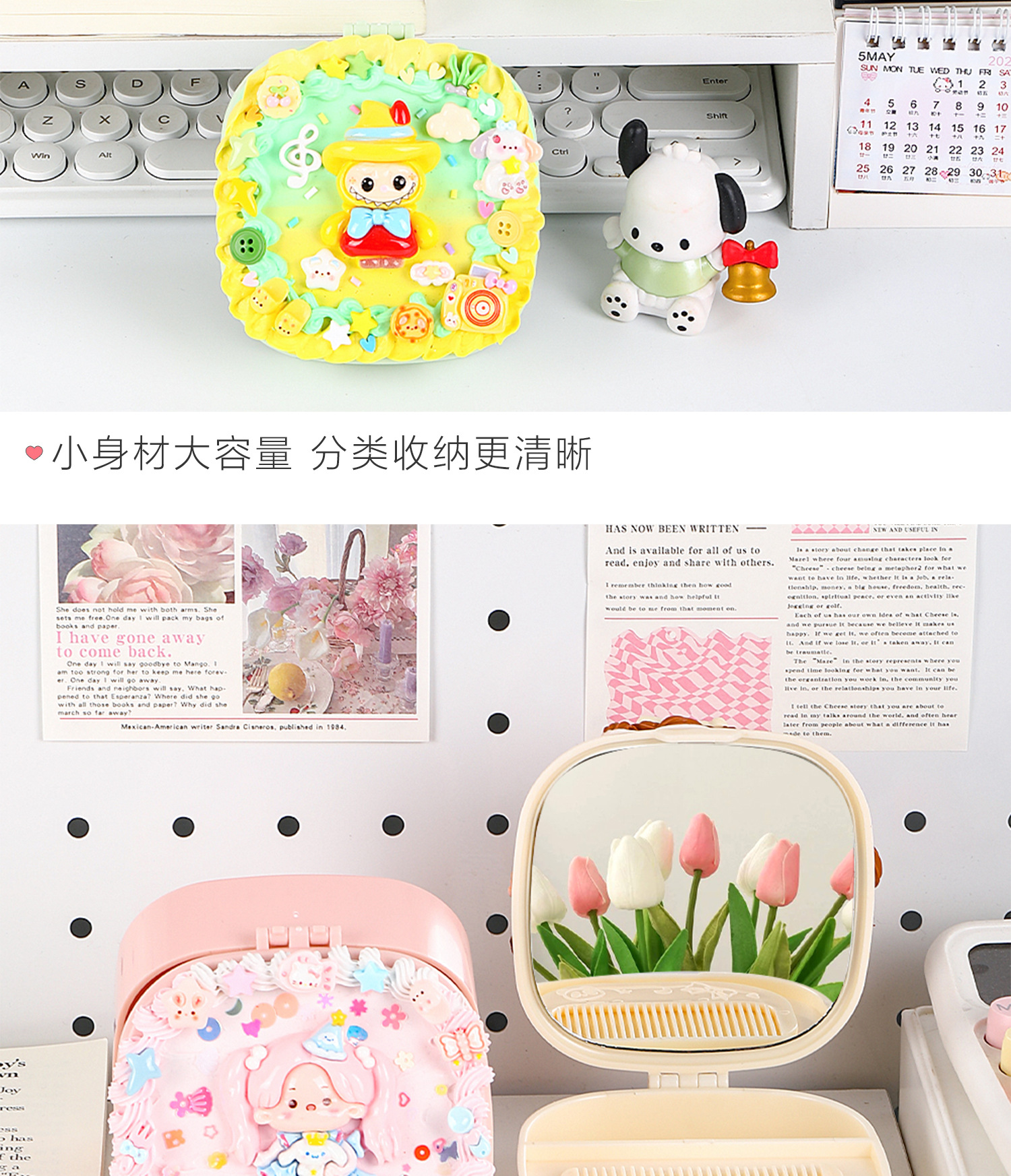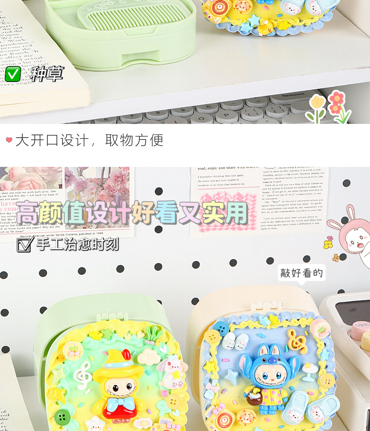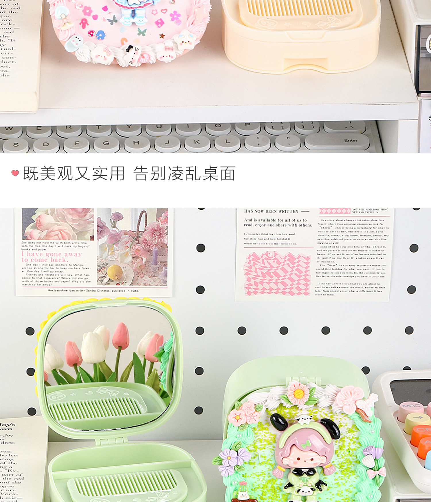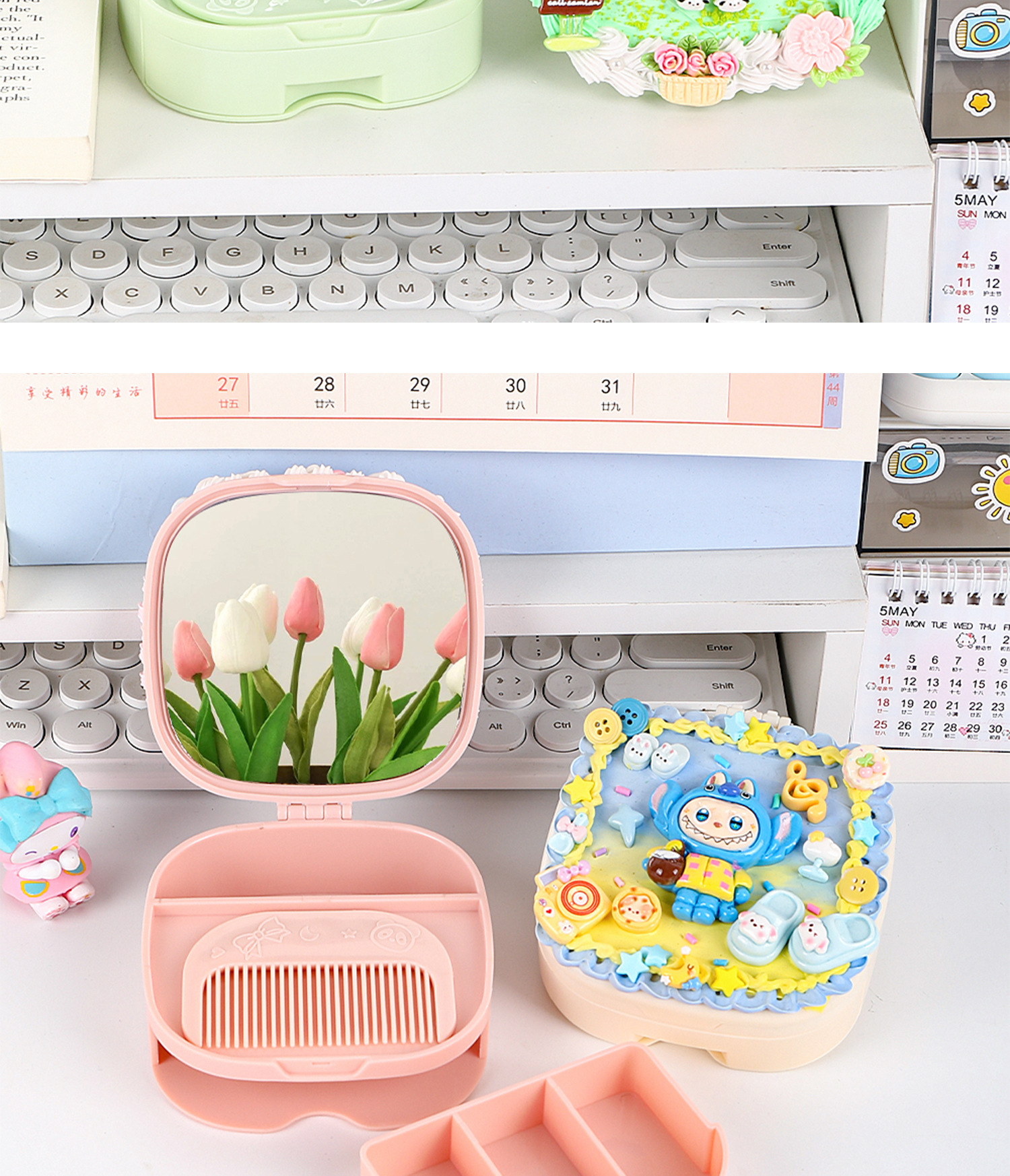 儿童diy奶油胶化妆镜收纳盒女孩子手工制作首饰盒材料包益智玩具