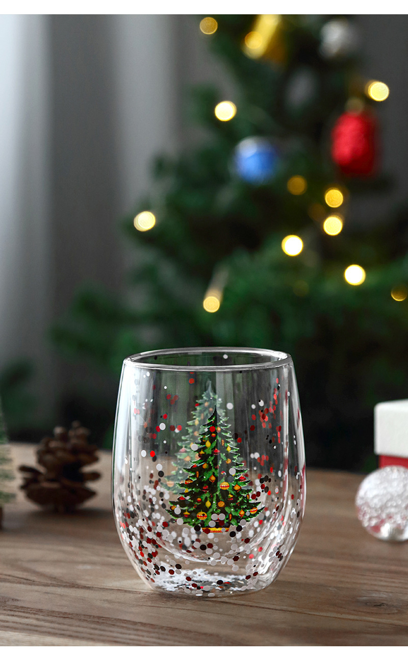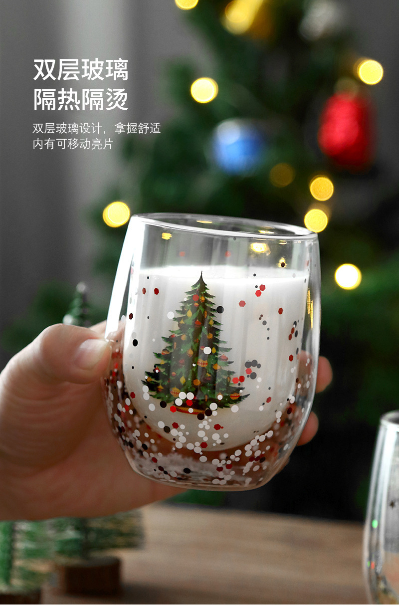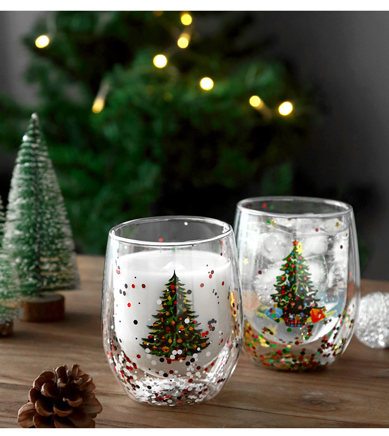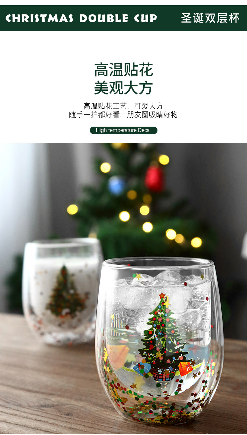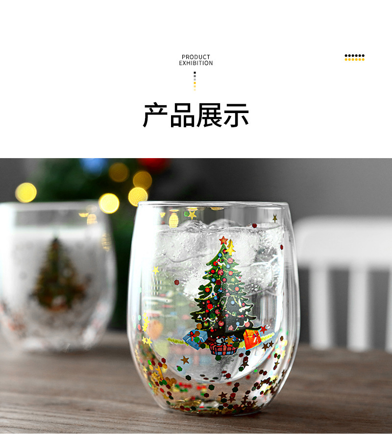 玻璃杯流动亮片双层圣诞树人工吹制玻璃杯耐高温高硼硅咖啡杯