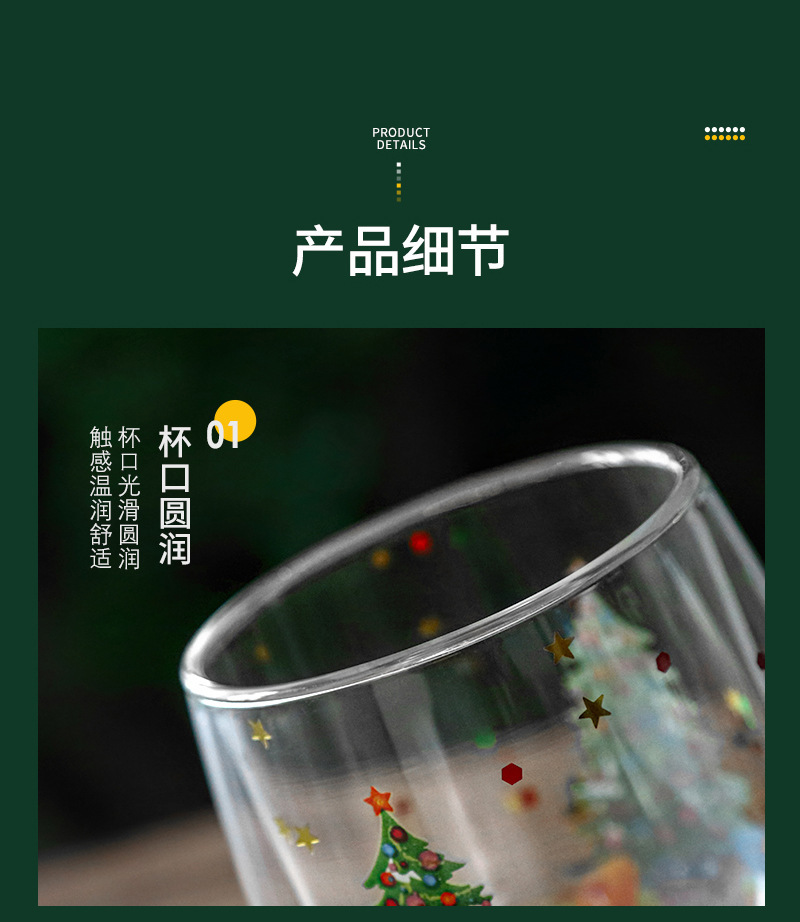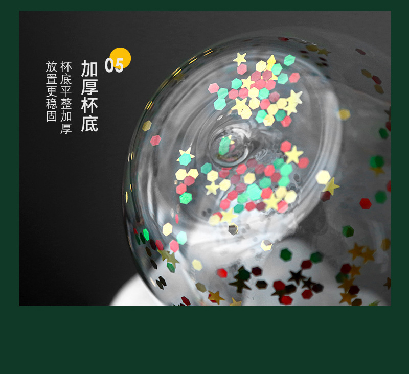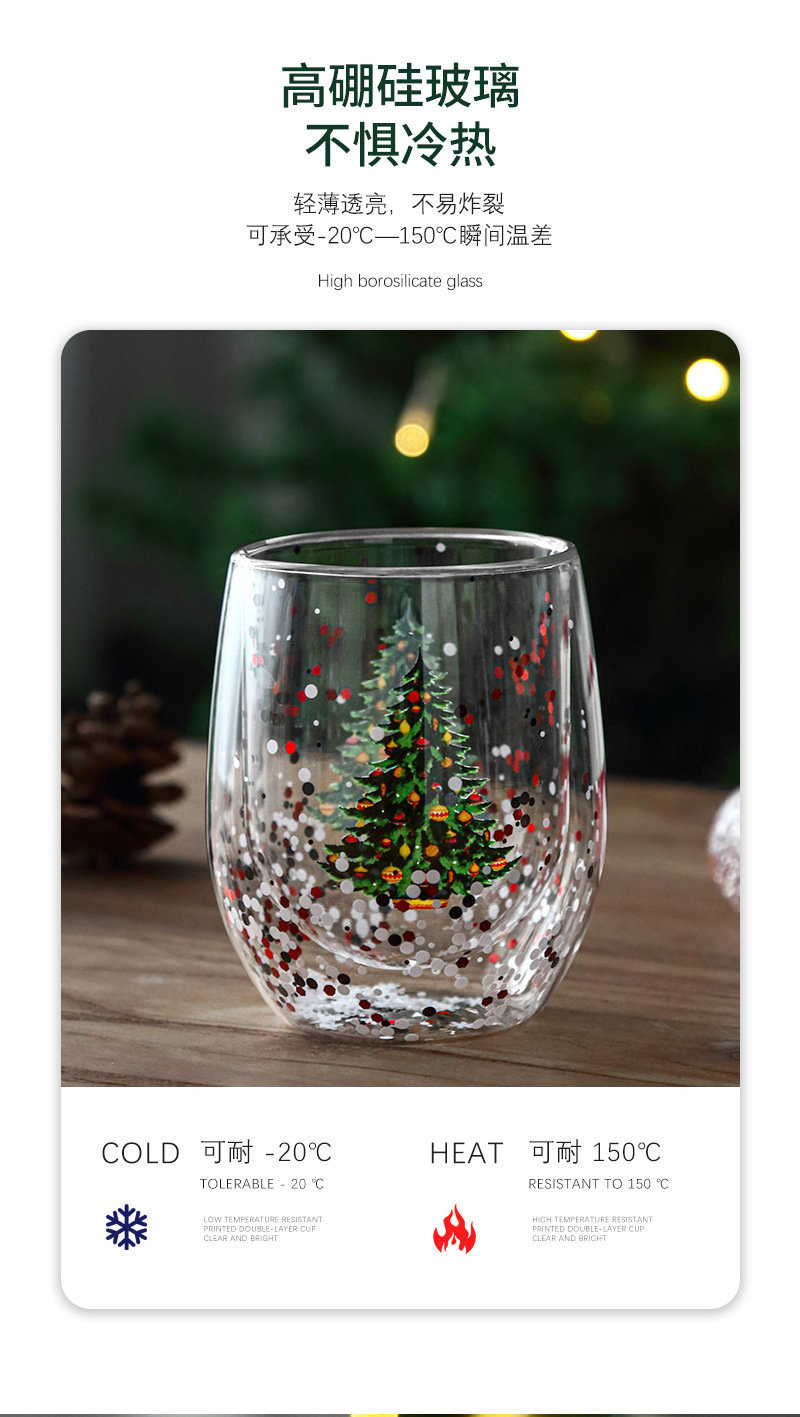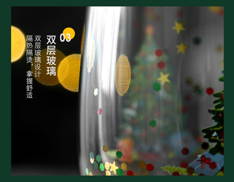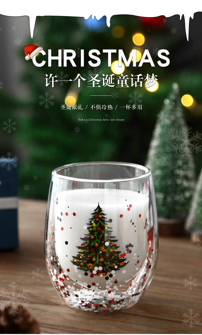 玻璃杯流动亮片双层圣诞树人工吹制玻璃杯耐高温高硼硅咖啡杯