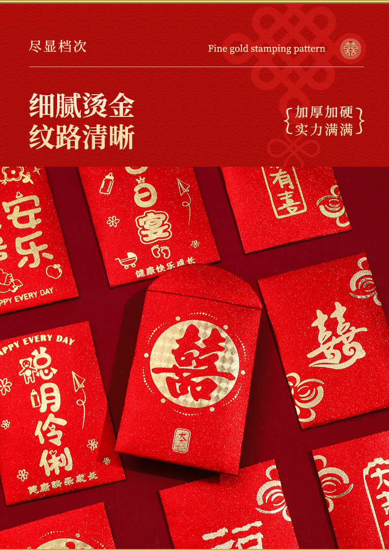 结婚生日乔迁金葱迷你红包喜字小红包金葱利是封婚礼堵门红包批发