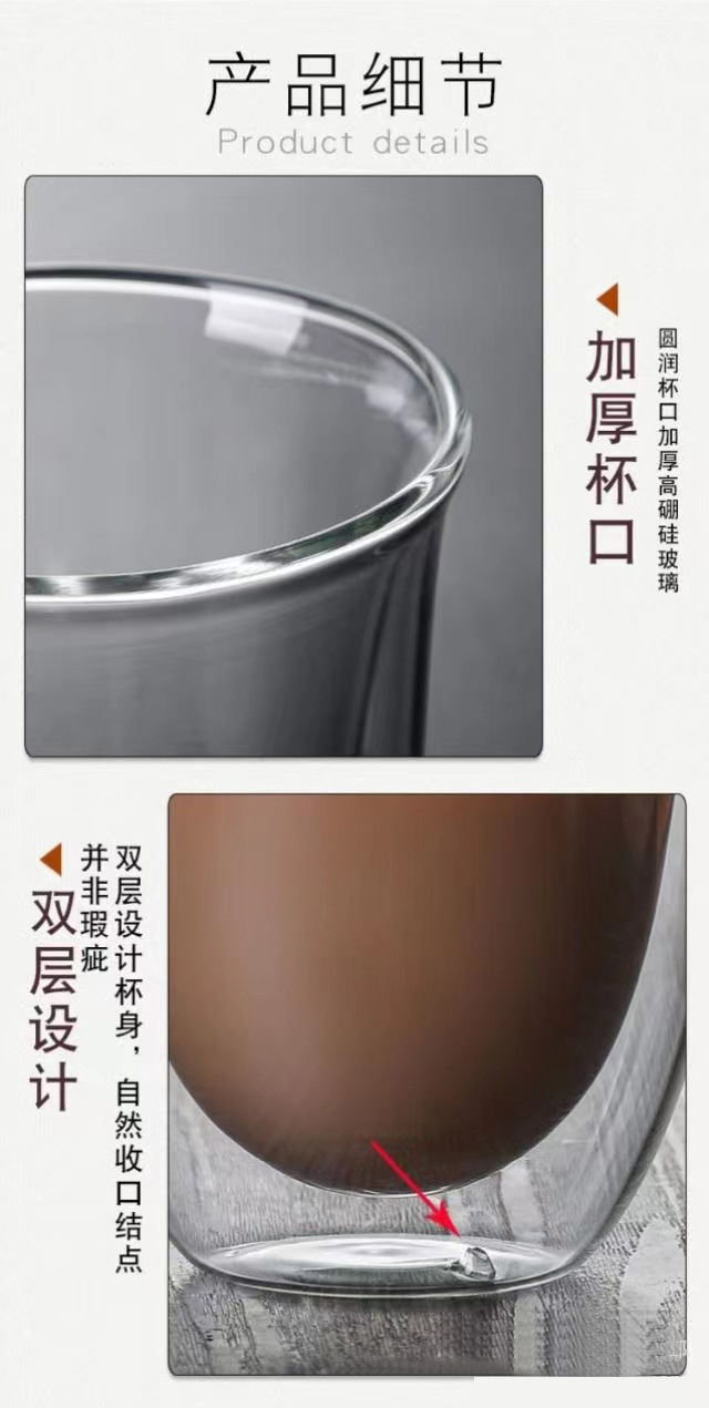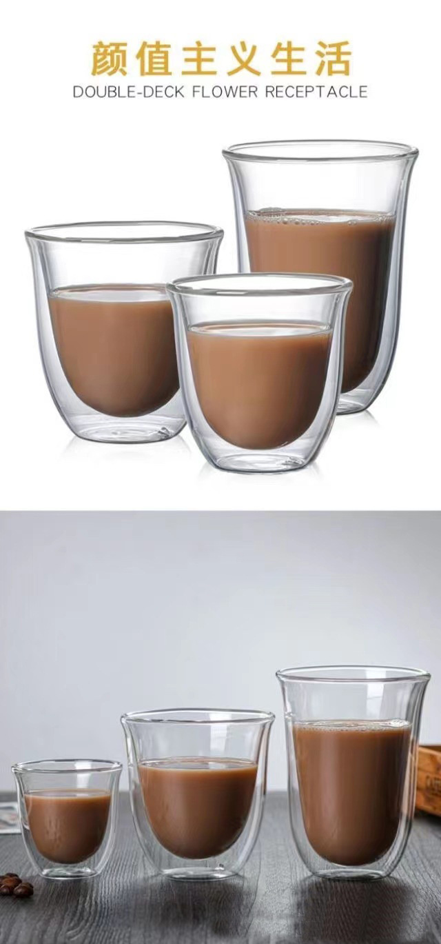 玻璃杯双层耐热咖啡杯隔热家用办公室牛奶杯果汁早餐杯水杯批发