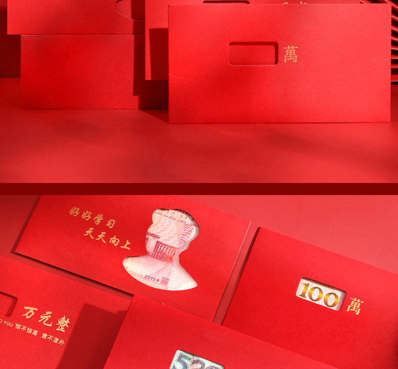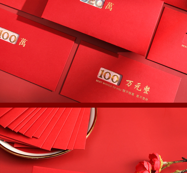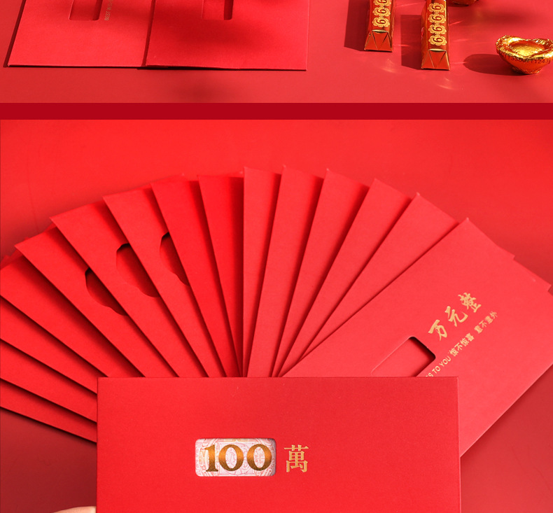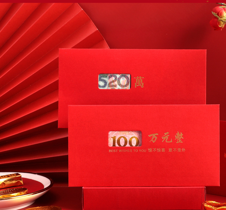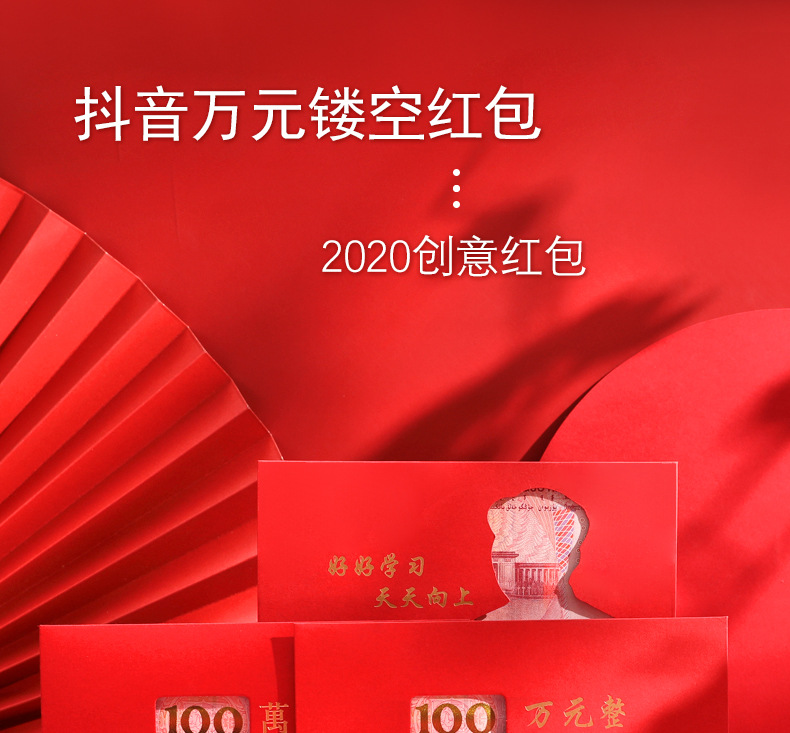 过新牛年2020公司福利恶搞镂空万字创意100万春节堵门红包利是封