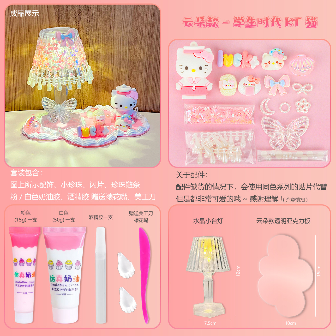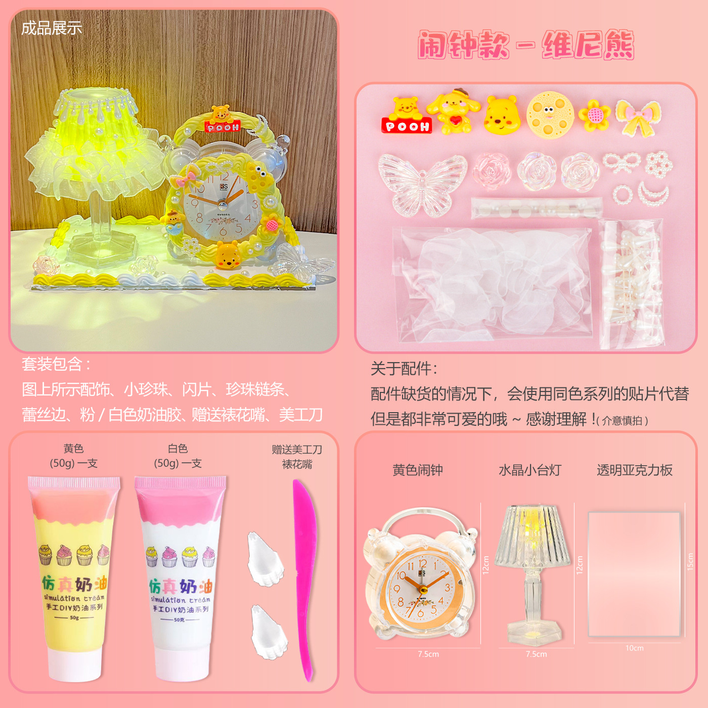 儿童手工奶油胶diy水晶闹钟学生台灯炫彩小夜灯摆件益智玩具全套