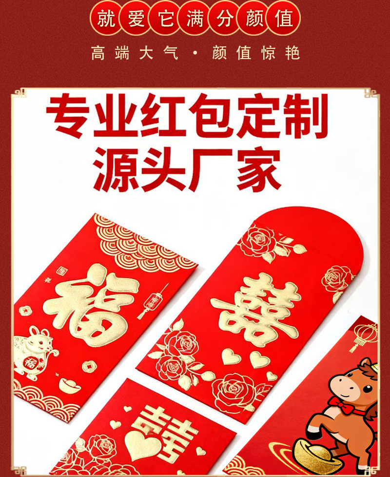 2026马年红包利是封定制公司logo印字高级浮雕烫金来图封面名字