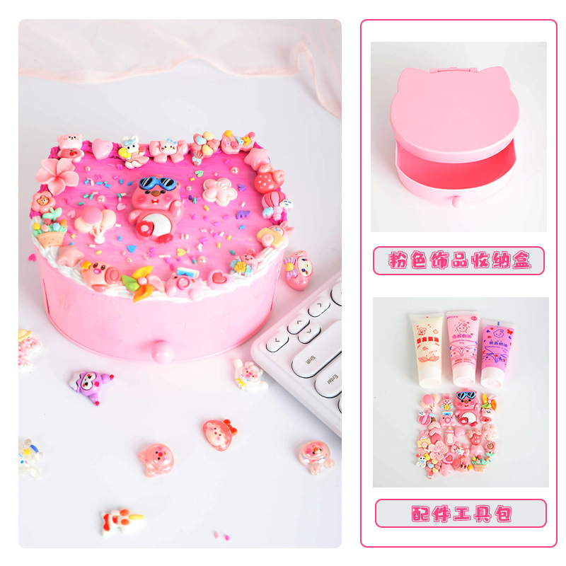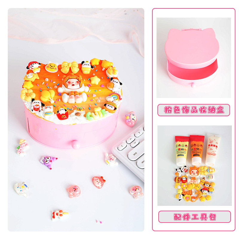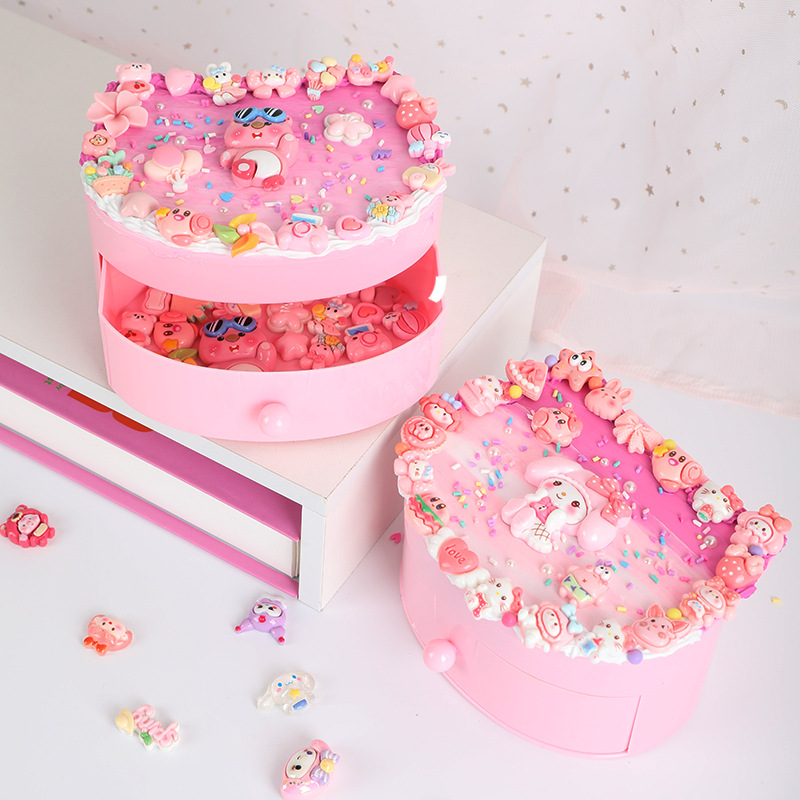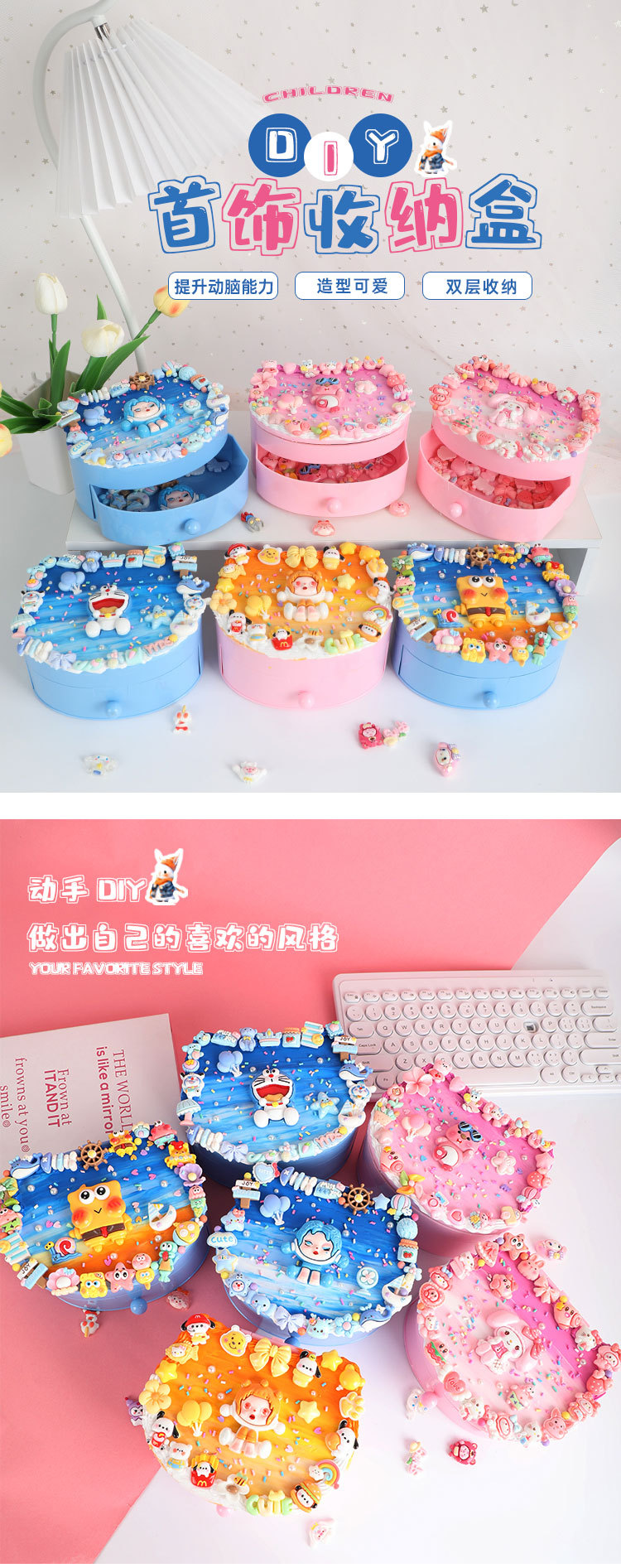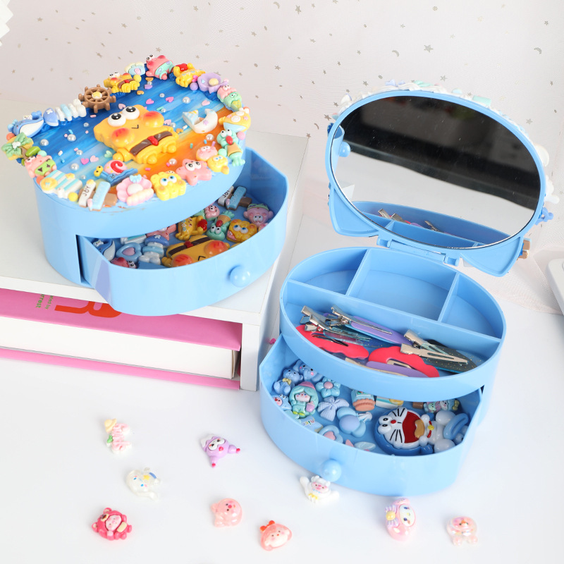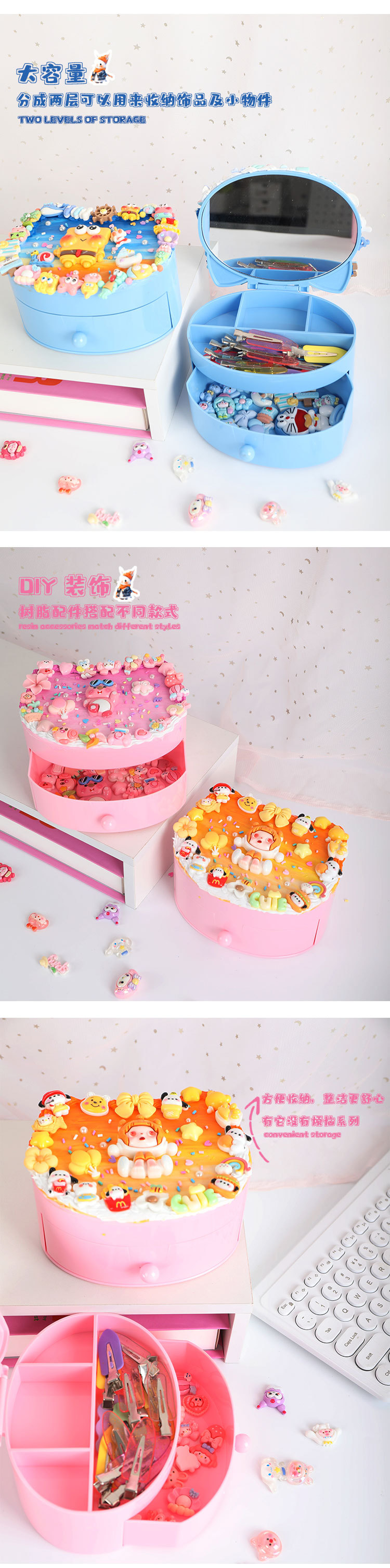 手工diy奶油胶饰品抽屉整理收纳盒 带盖子女孩涂鸦双层盒儿童玩具
