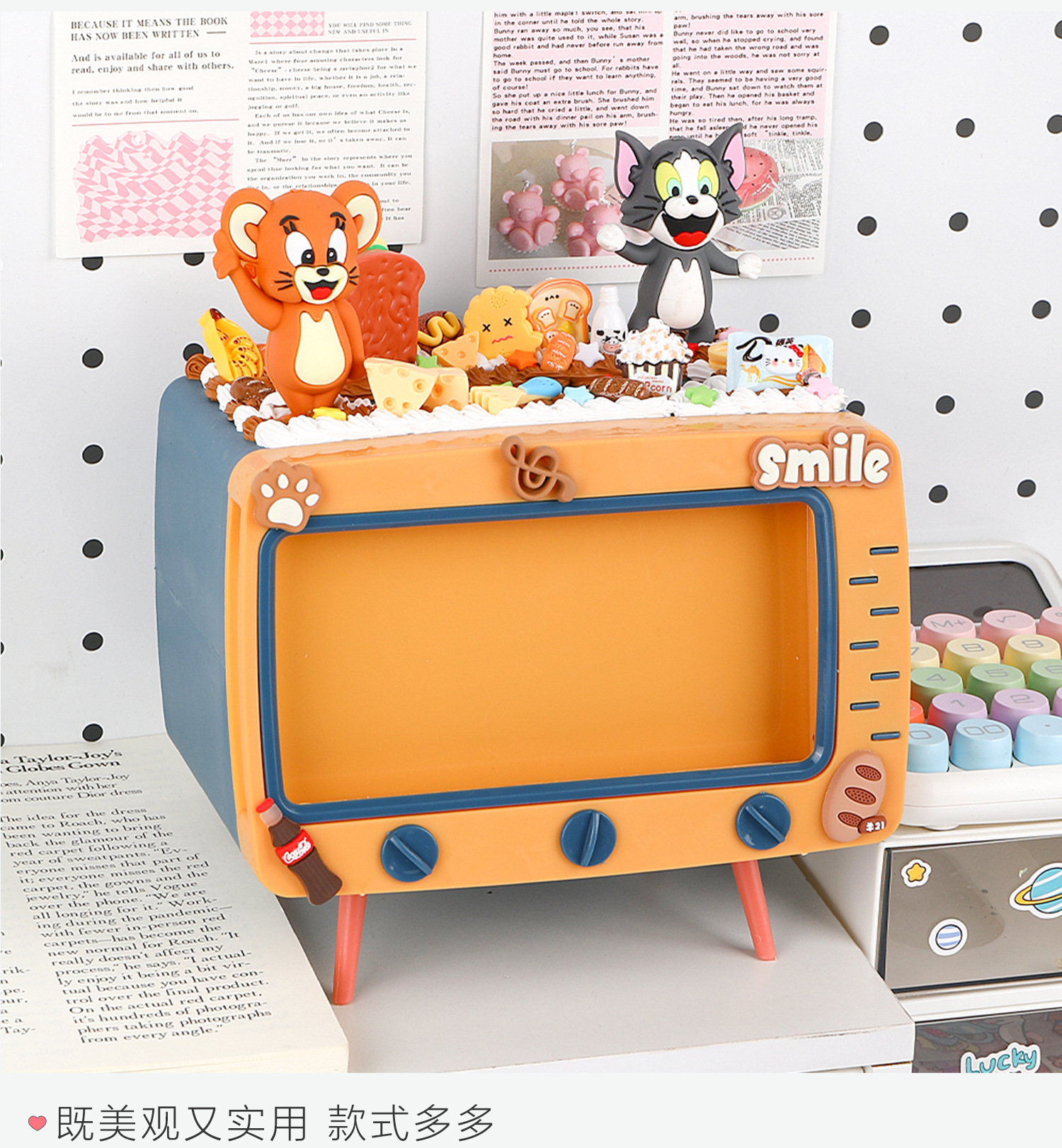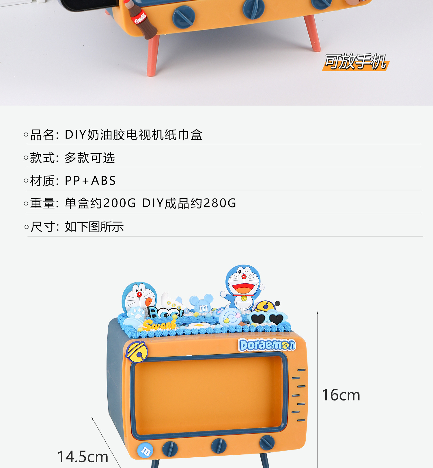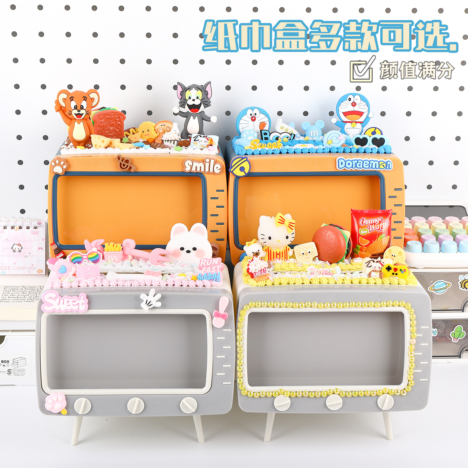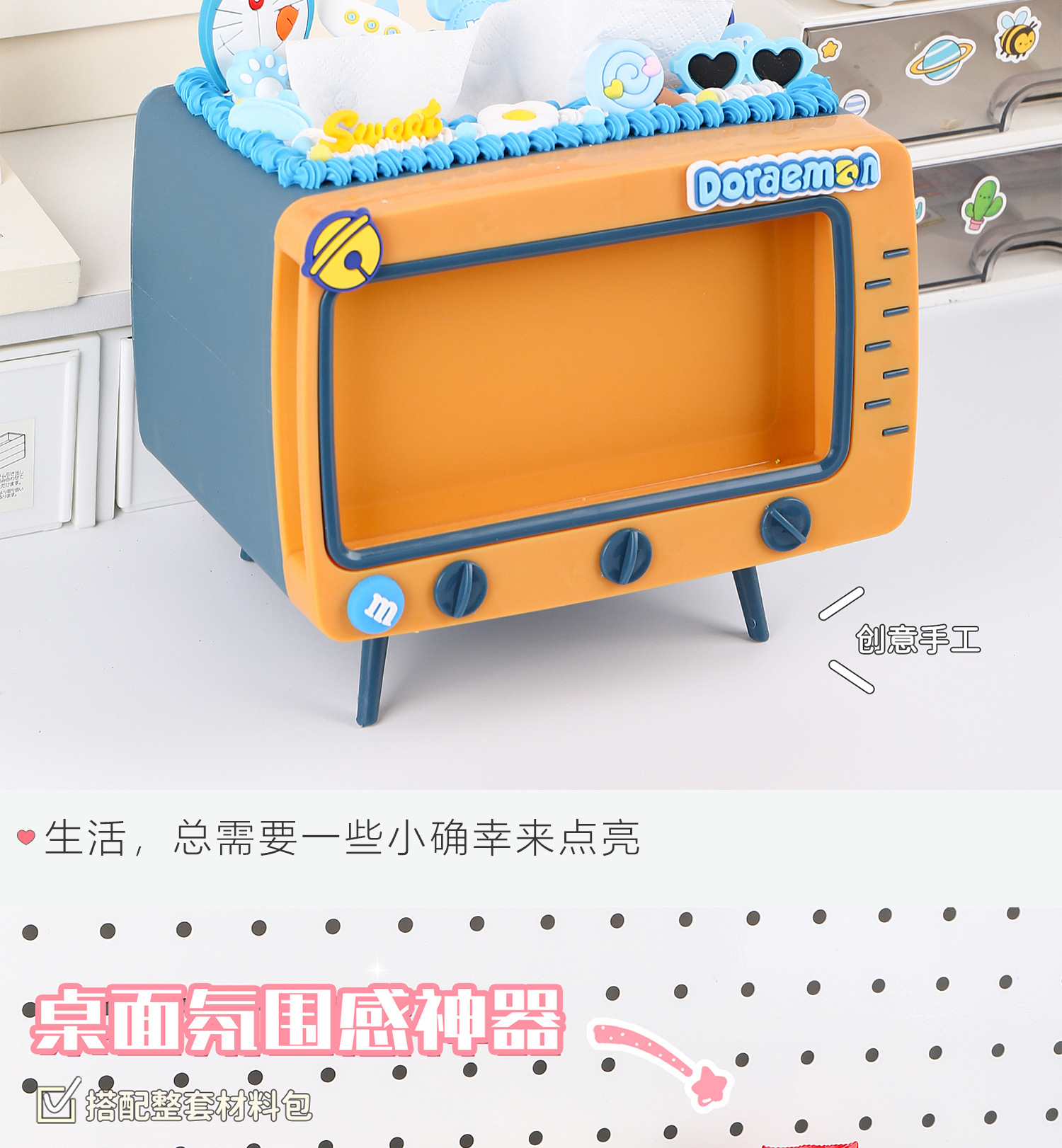 电视机创意多功能纸巾收纳盒儿童手工奶油胶diy家用客厅手机支架