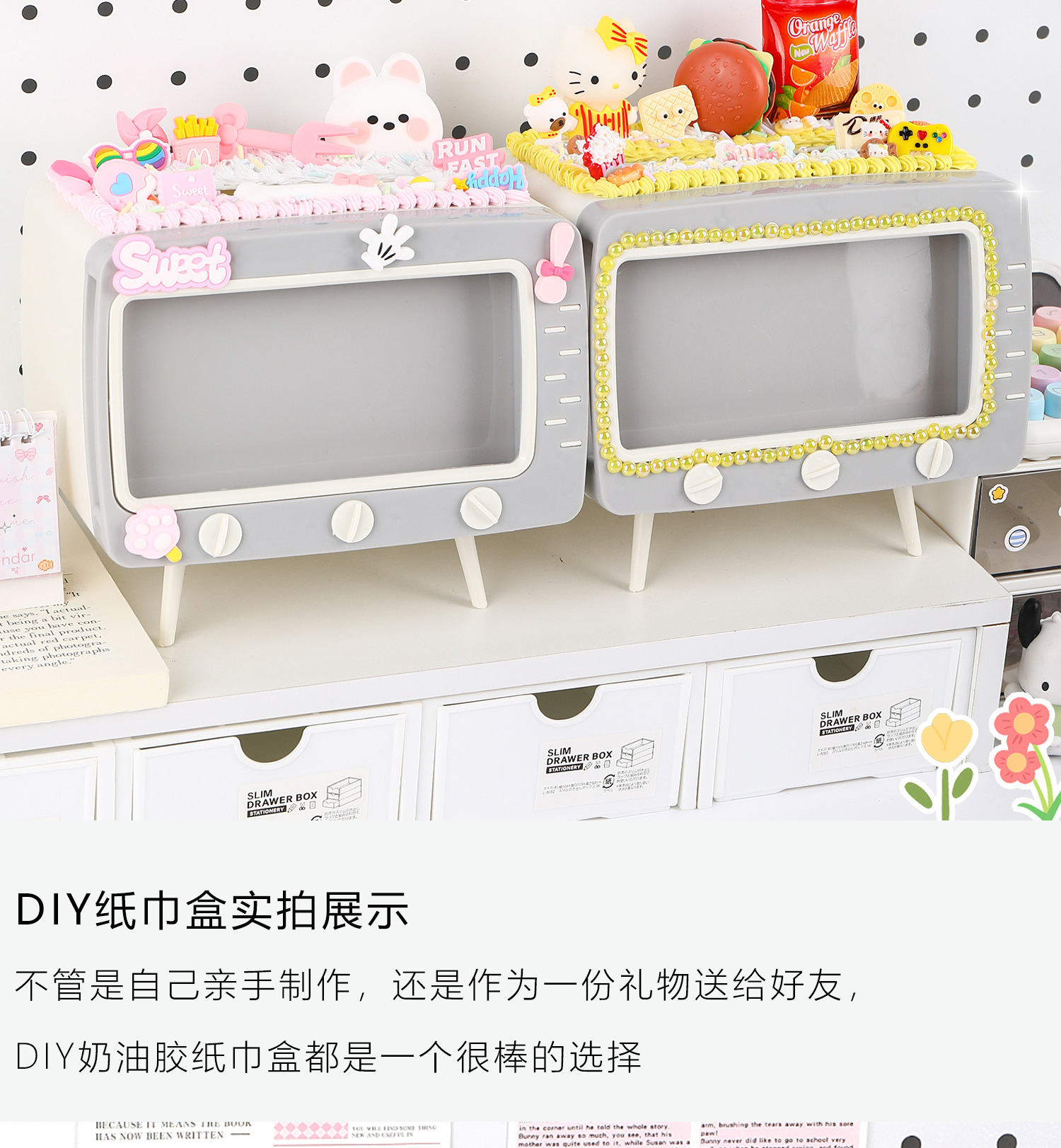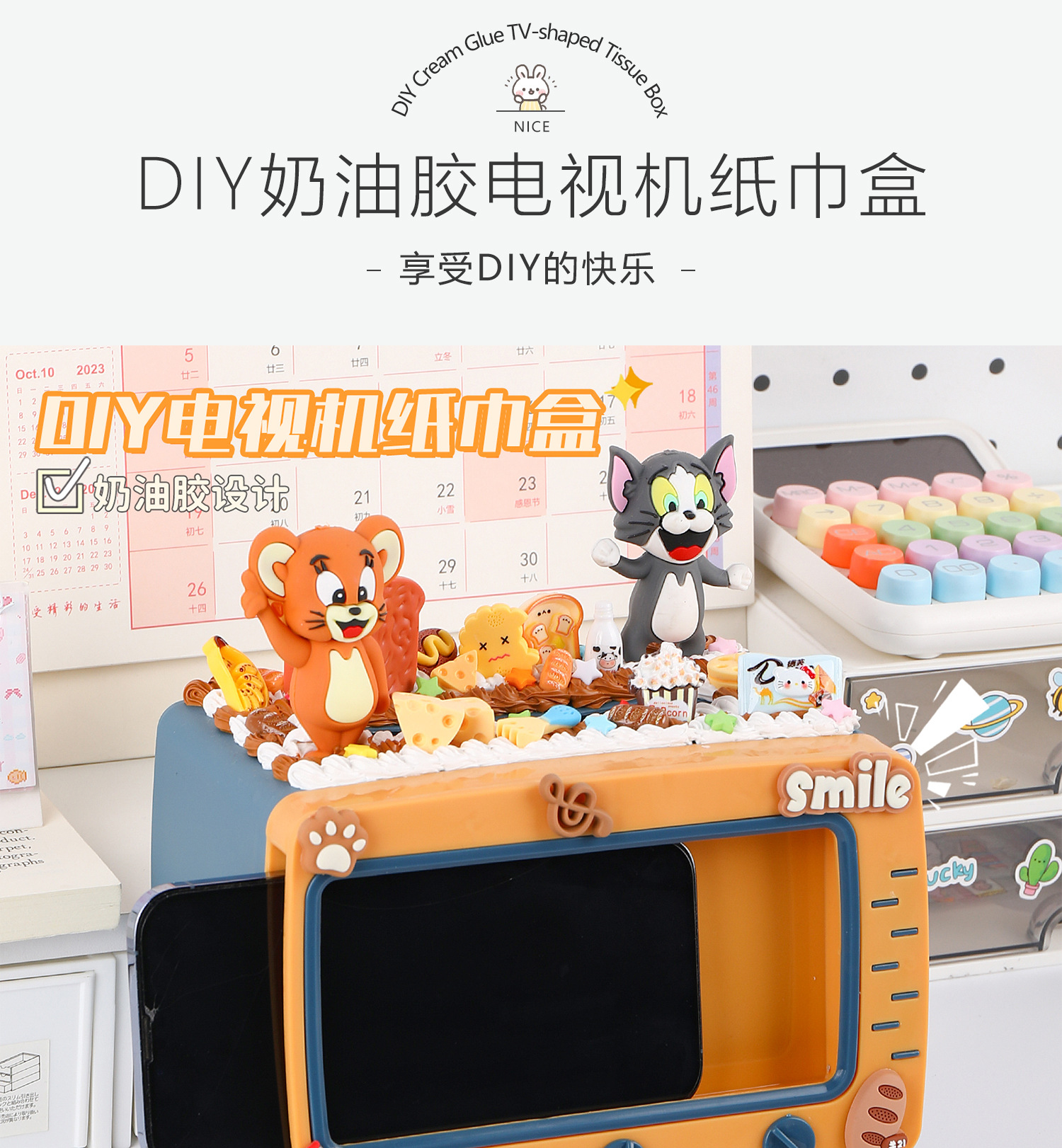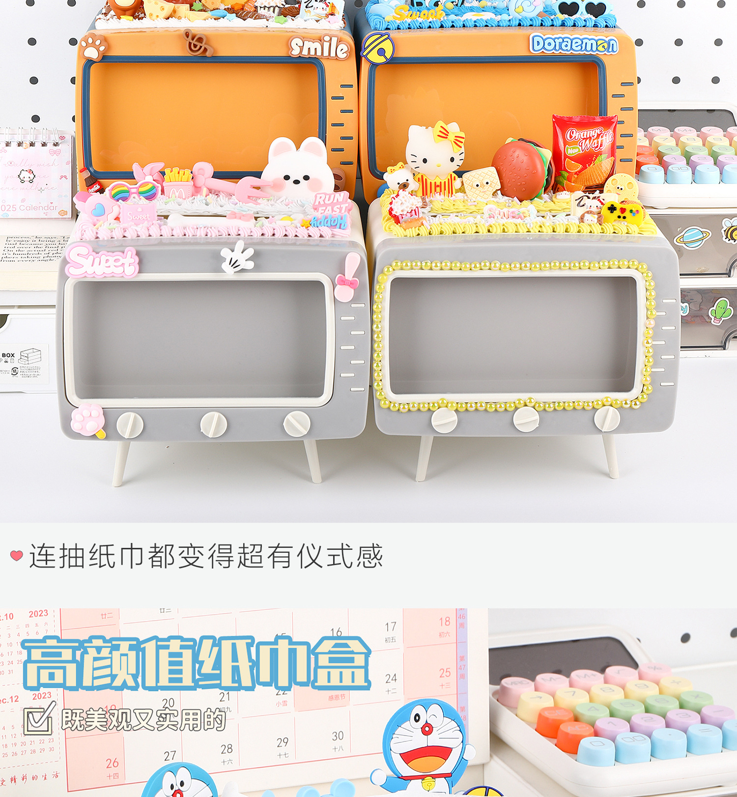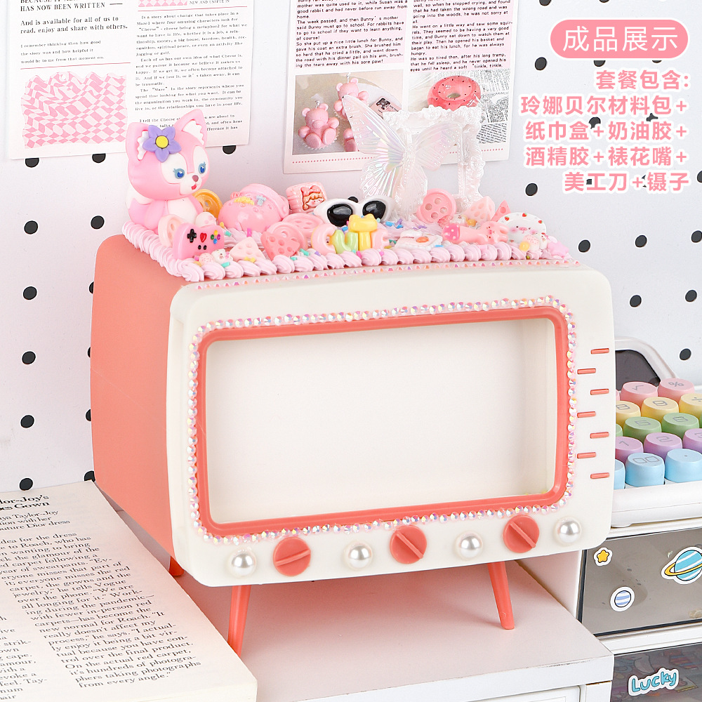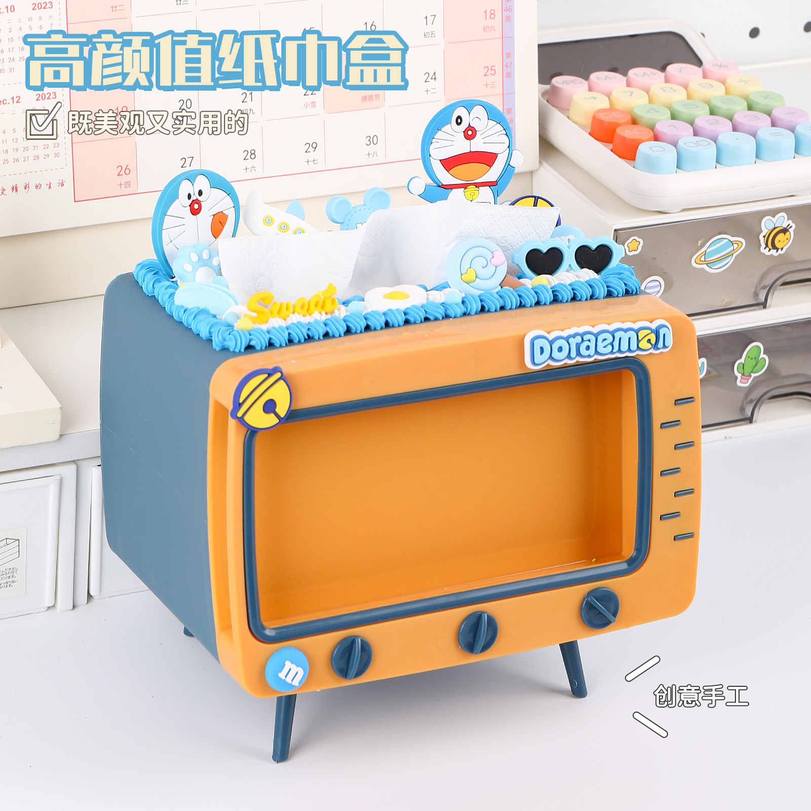 电视机创意多功能纸巾收纳盒儿童手工奶油胶diy家用客厅手机支架