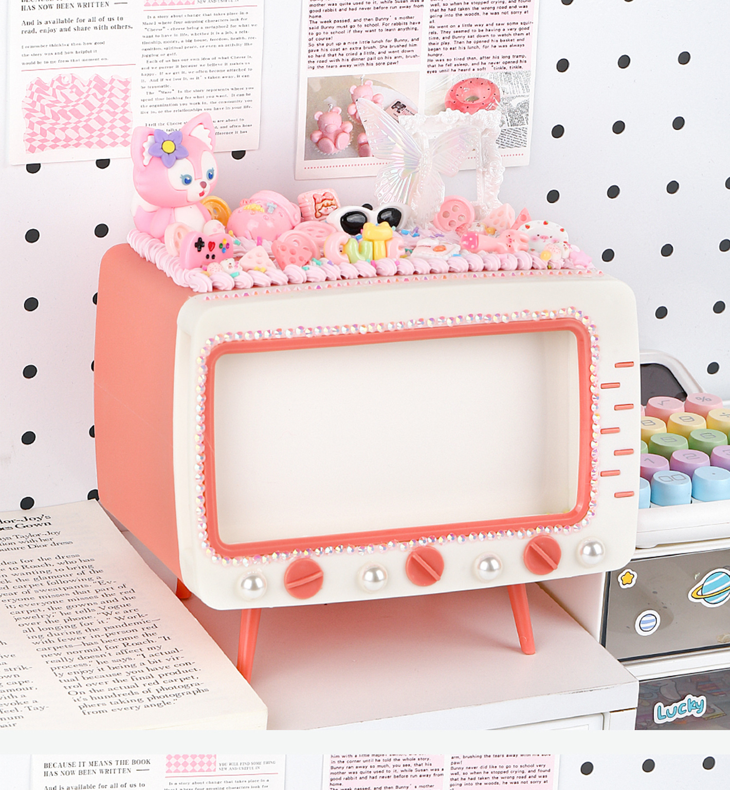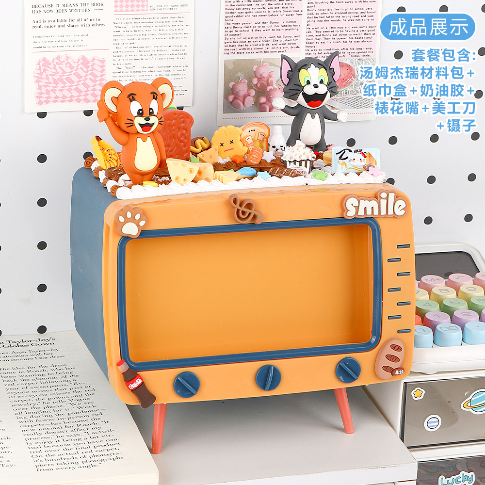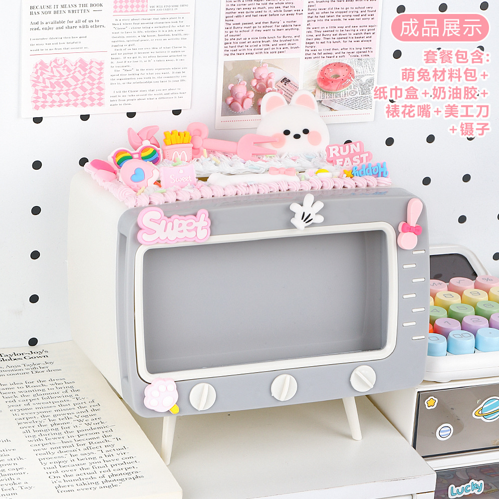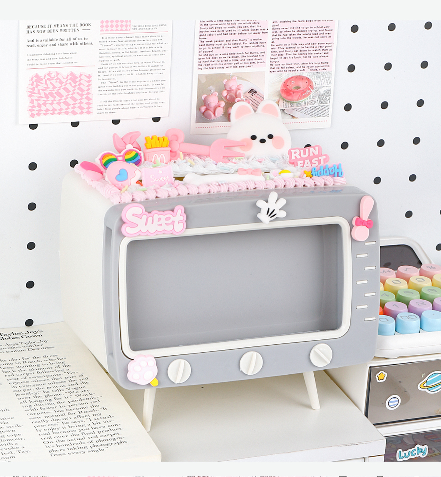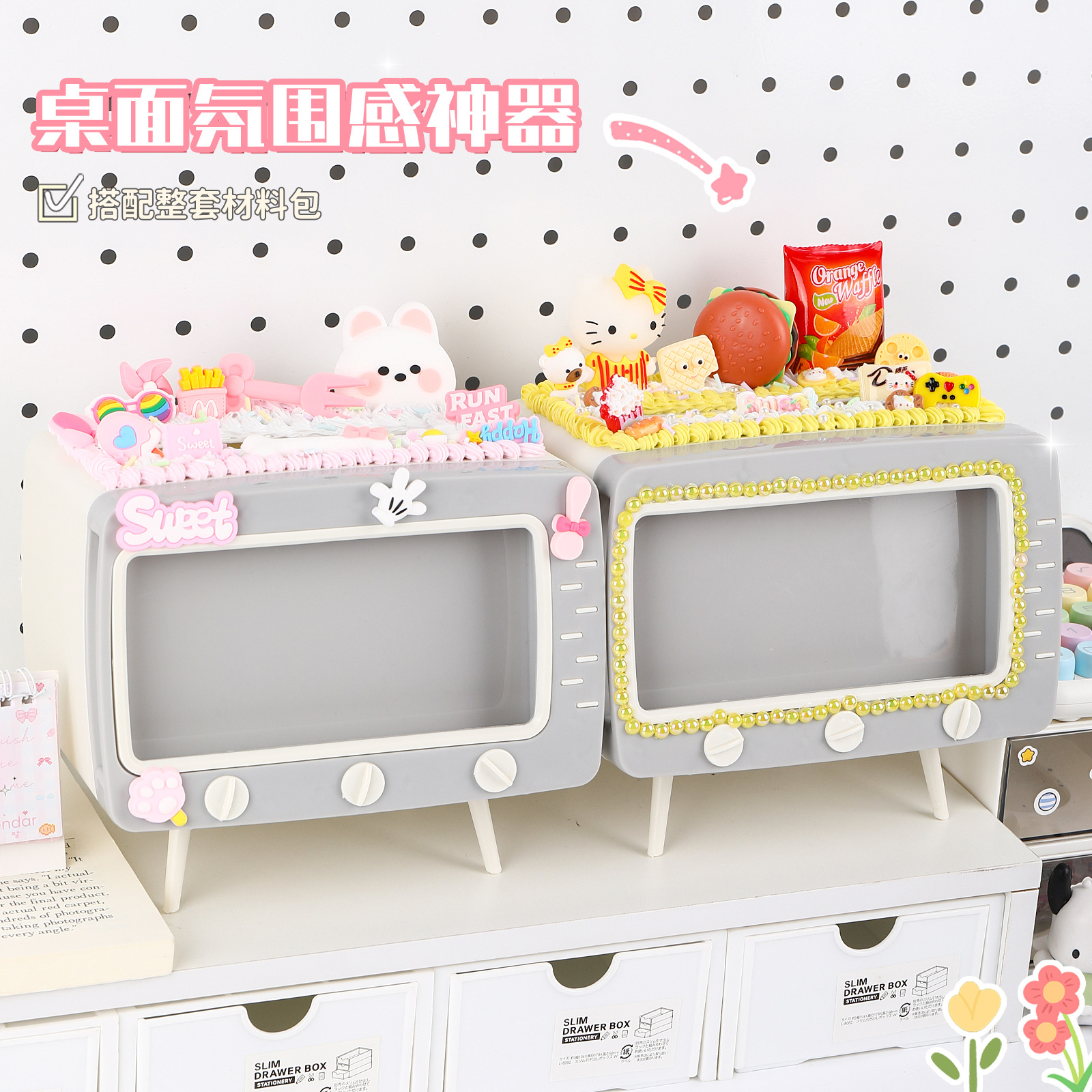 电视机创意多功能纸巾收纳盒儿童手工奶油胶diy家用客厅手机支架