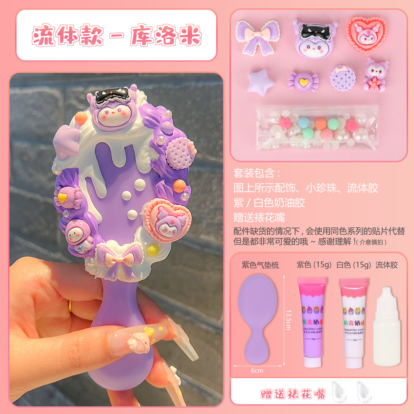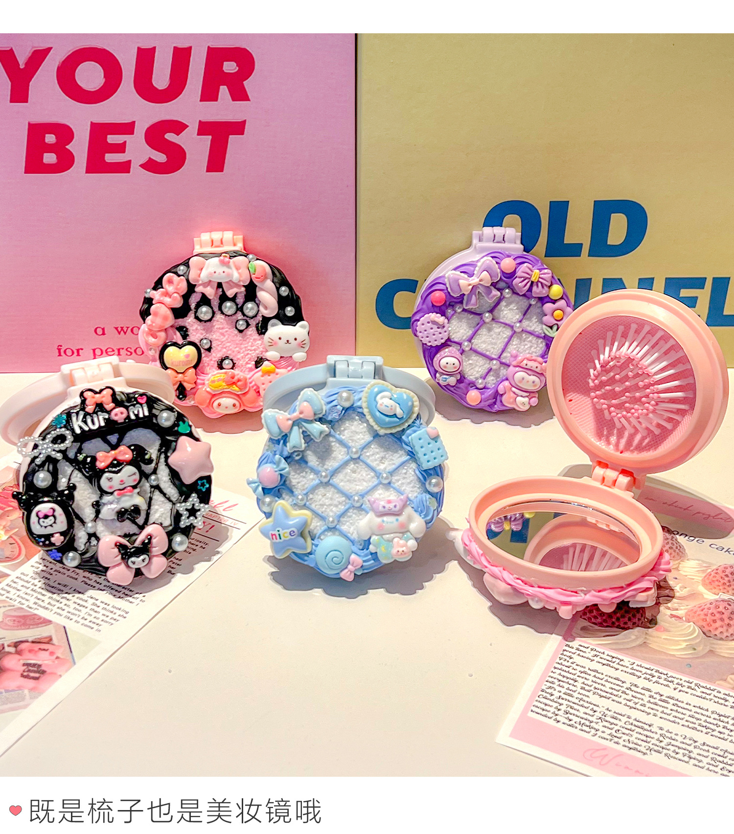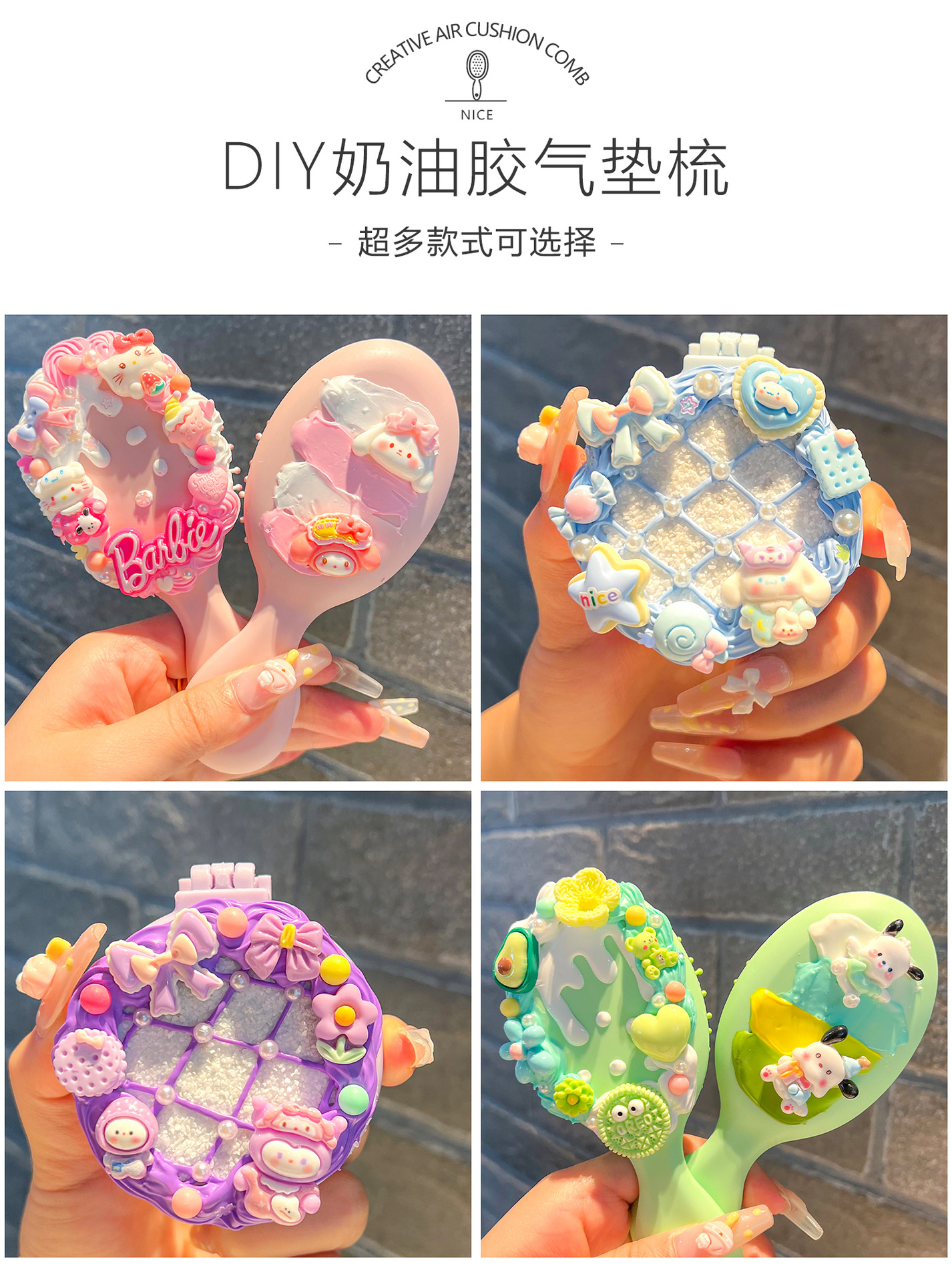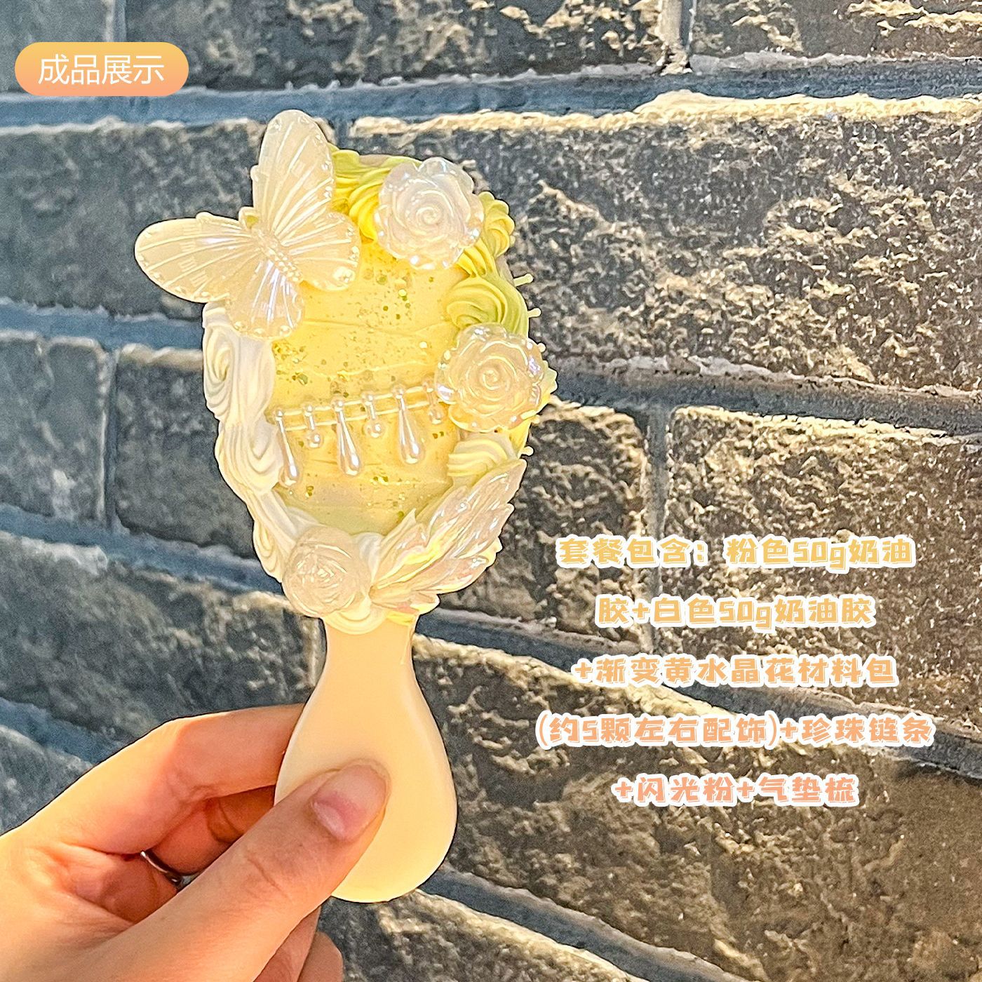 奶油胶儿童手工diy材料包自己做气垫梳 女生美发手做折叠镜梳玩具