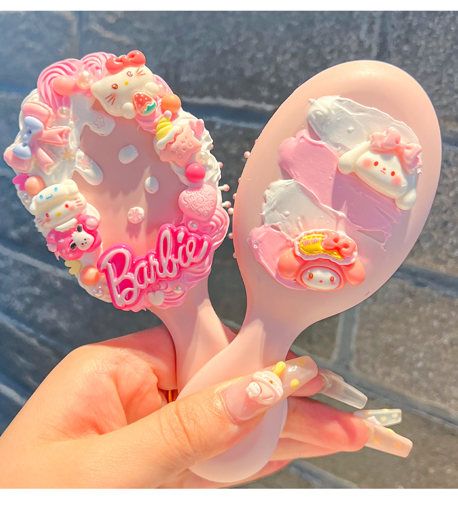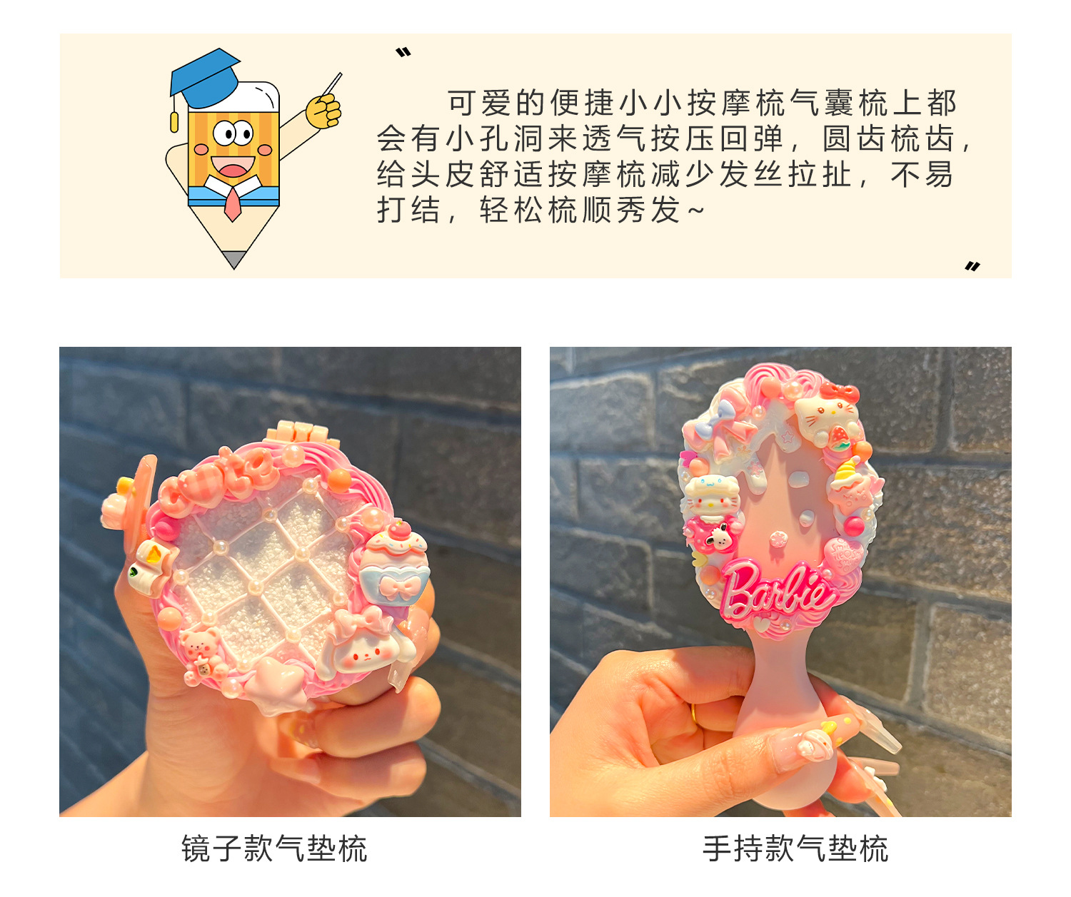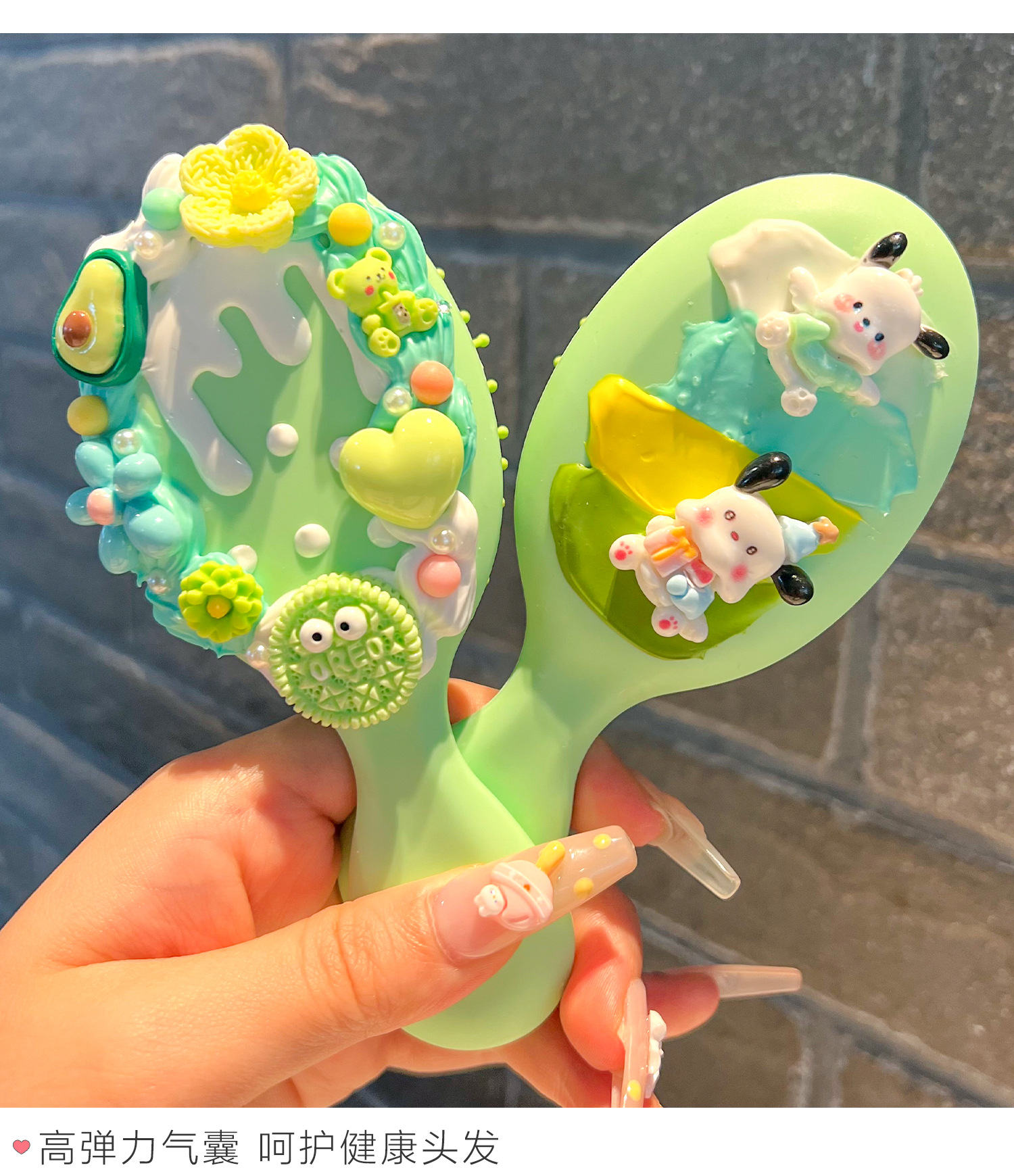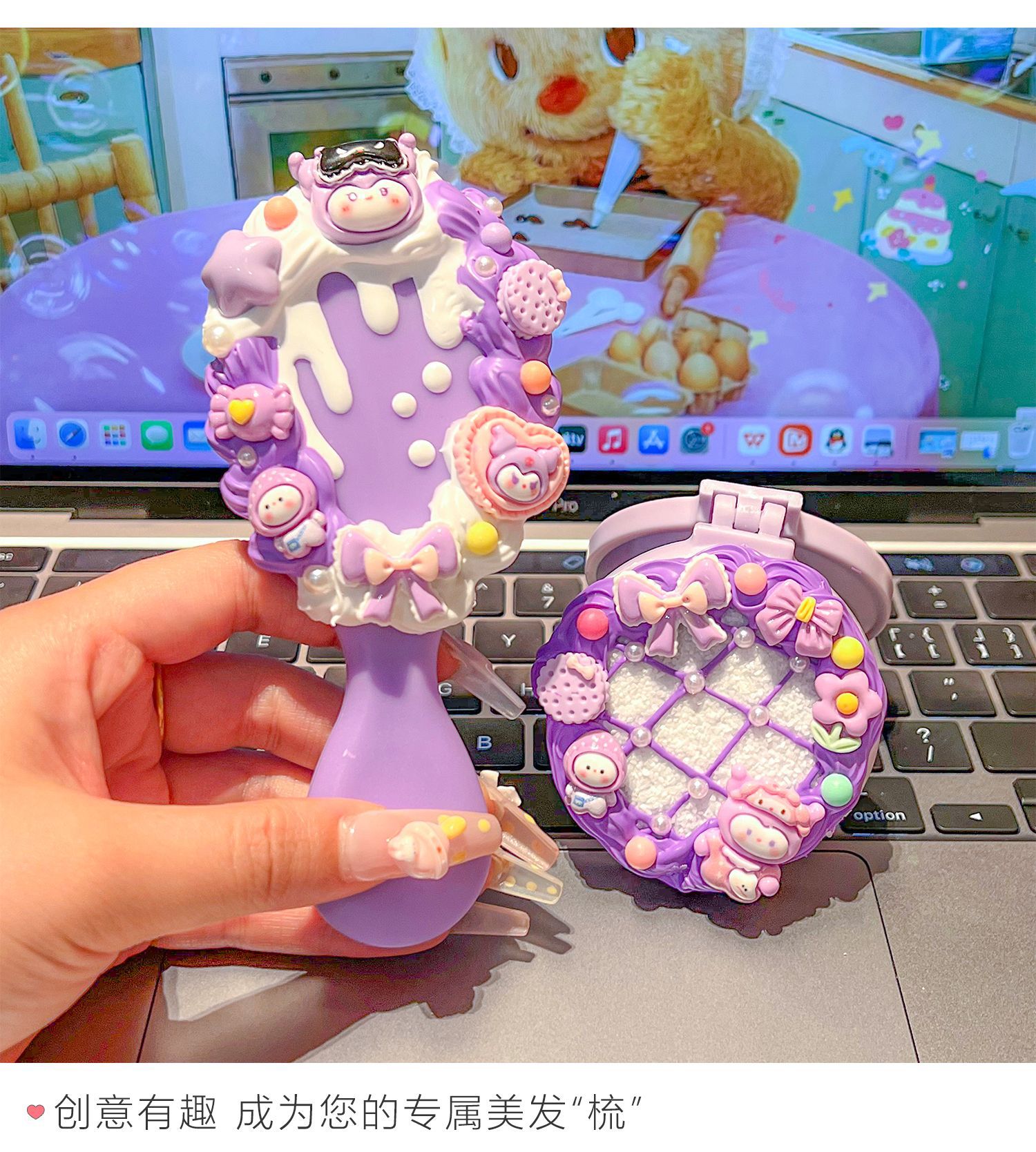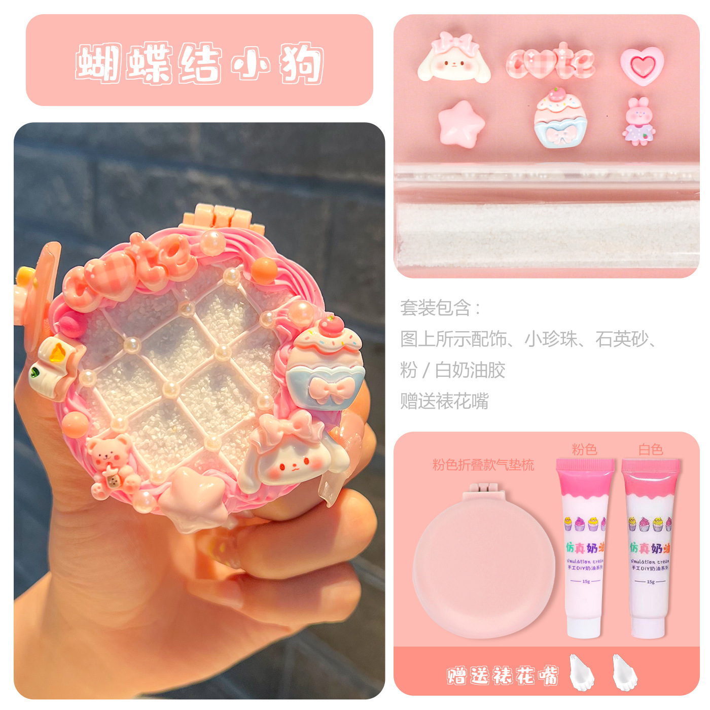 奶油胶儿童手工diy材料包自己做气垫梳 女生美发手做折叠镜梳玩具