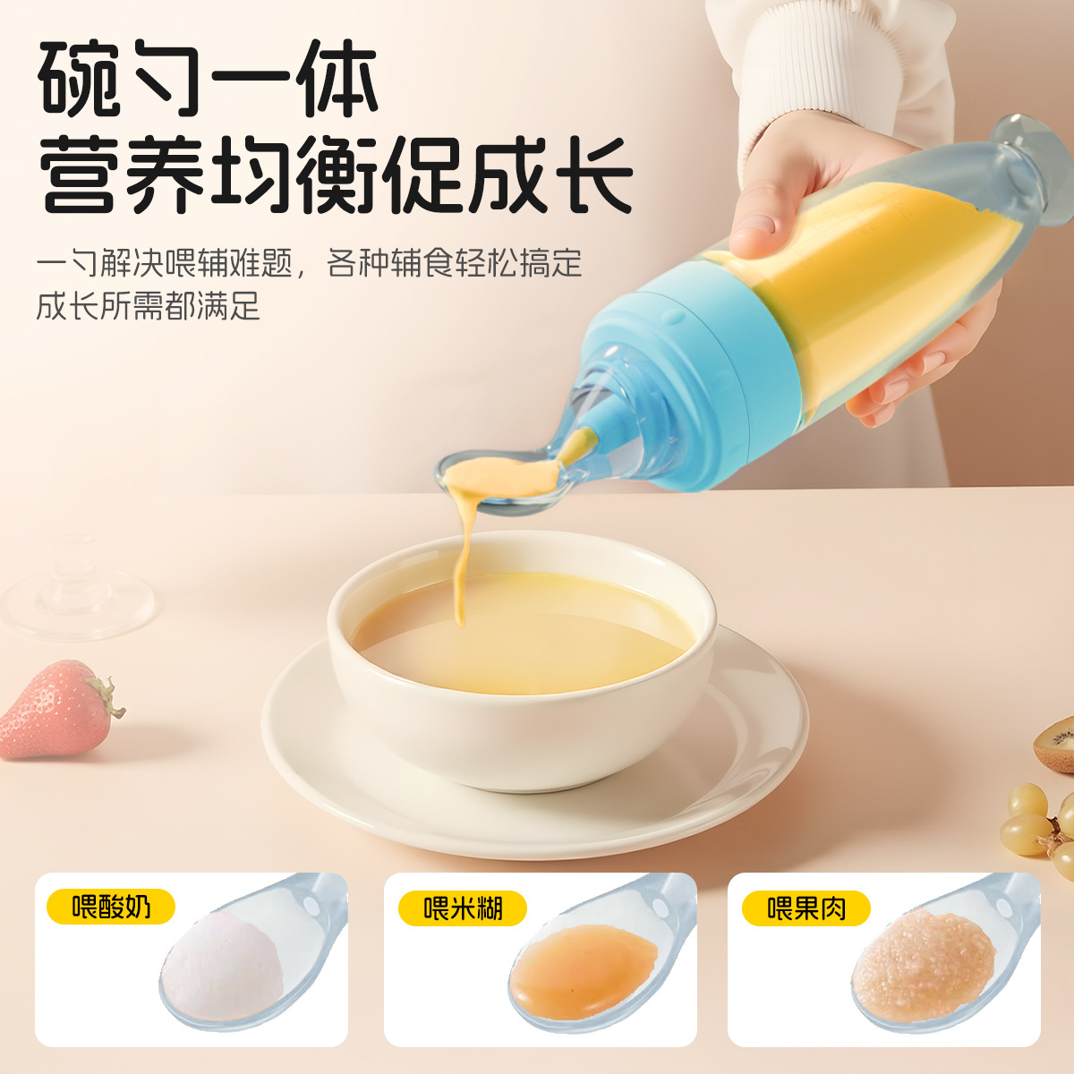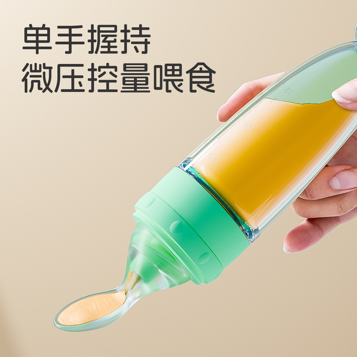 婴幼儿米糊瓶150ML硅胶软勺挤压式果汁瓶辅食勺吸盘硅胶米粉奶瓶