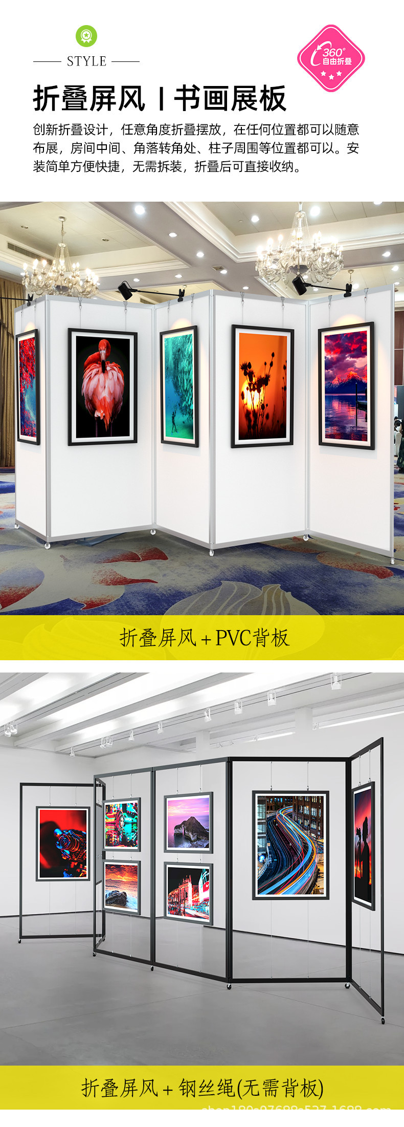 折叠书画展板幼儿园学校美术作品展书法摄影宣传展示架屏风展览板