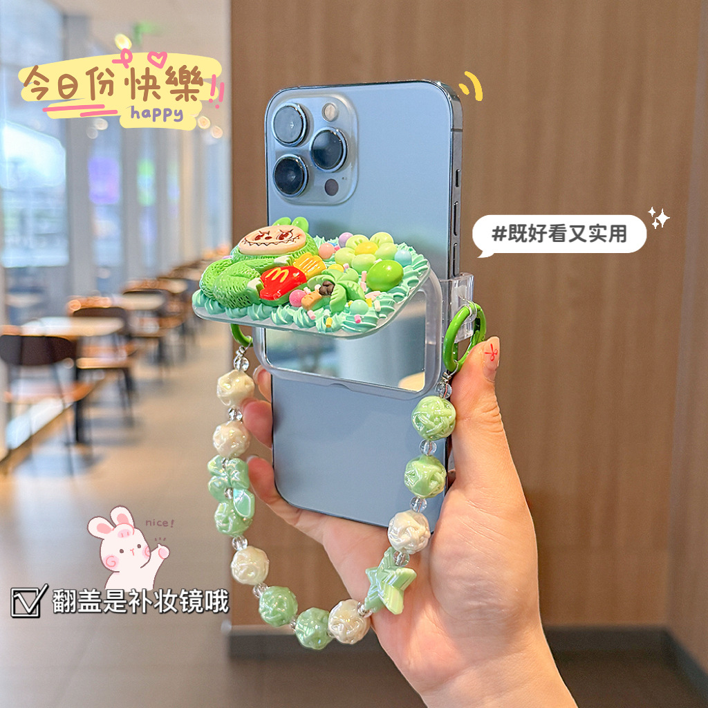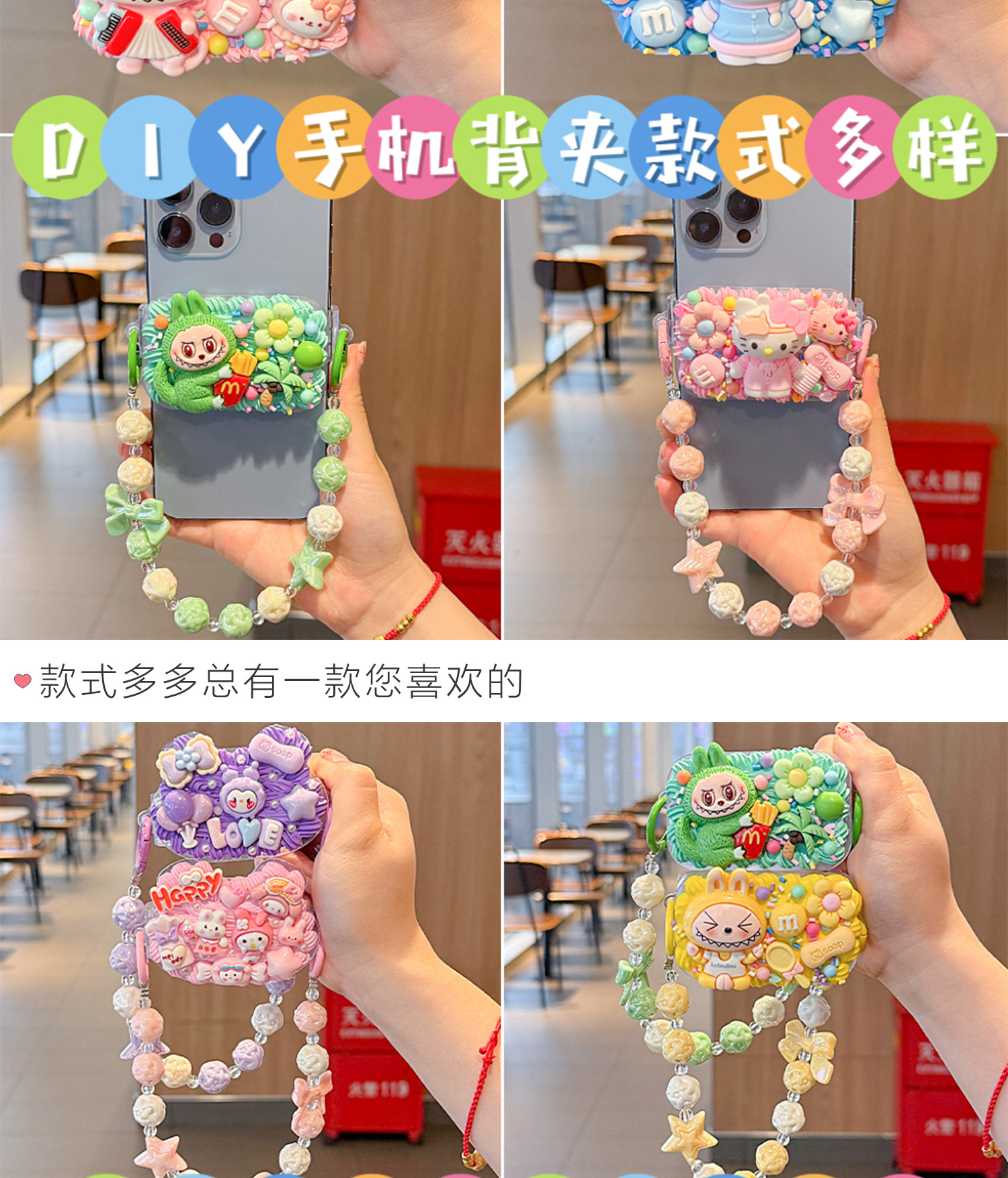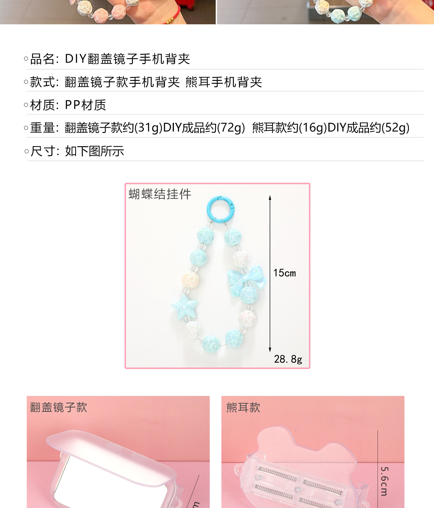 新款手工diy翻盖镜子手机背夹卡扣挂绳拉布布奶油胶材料包补妆镜