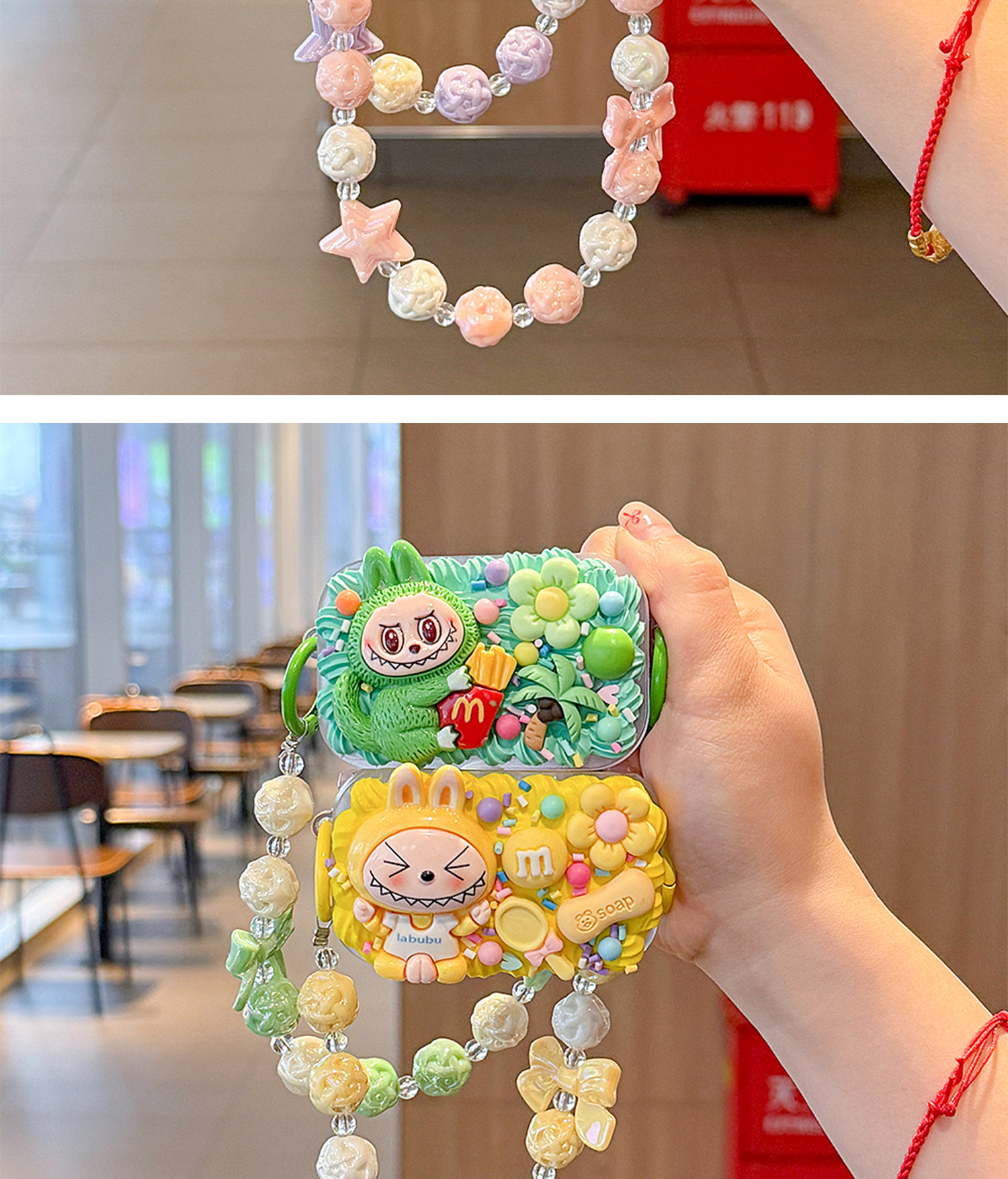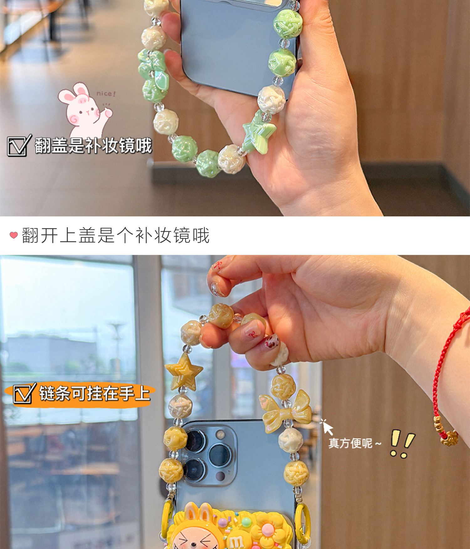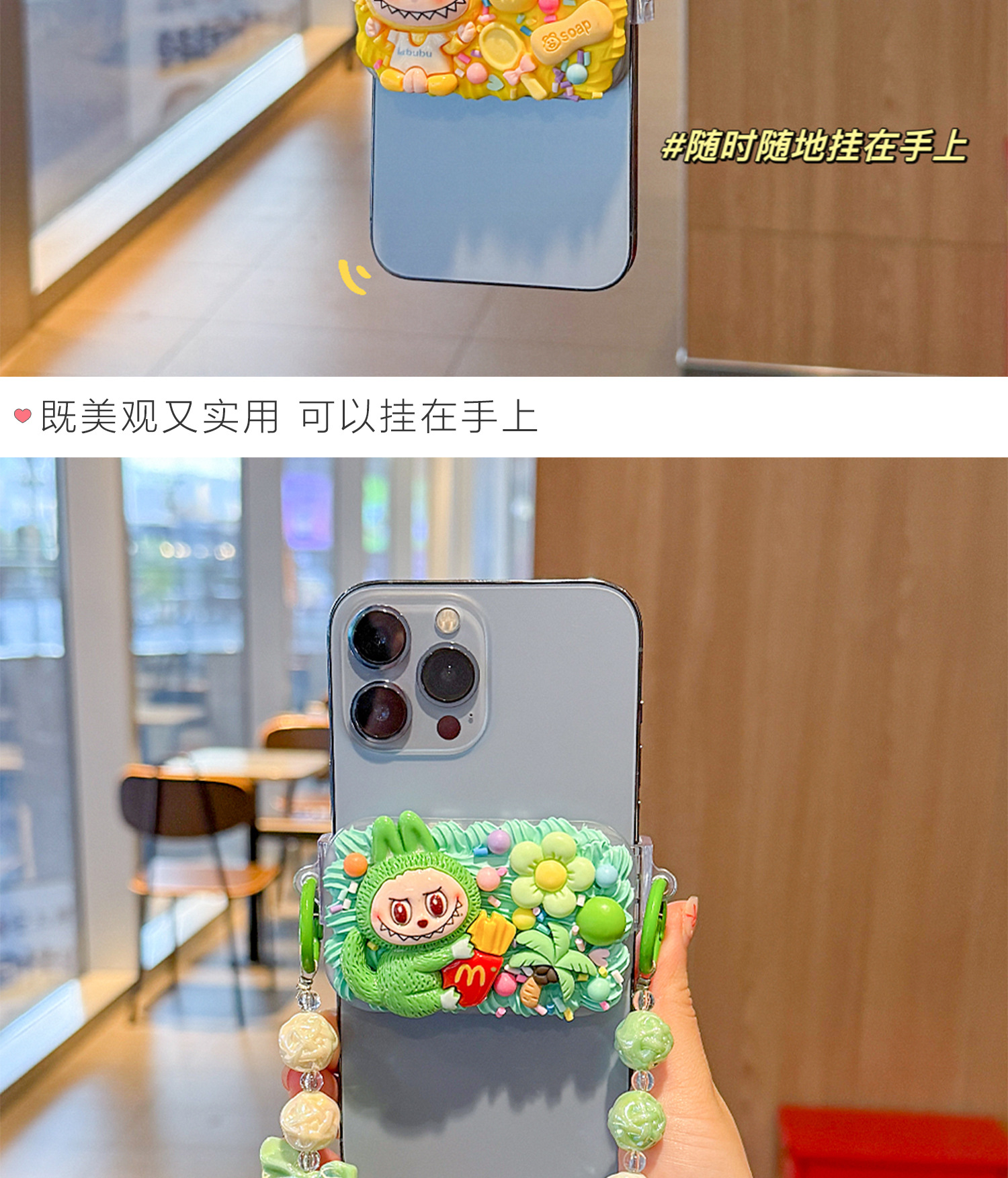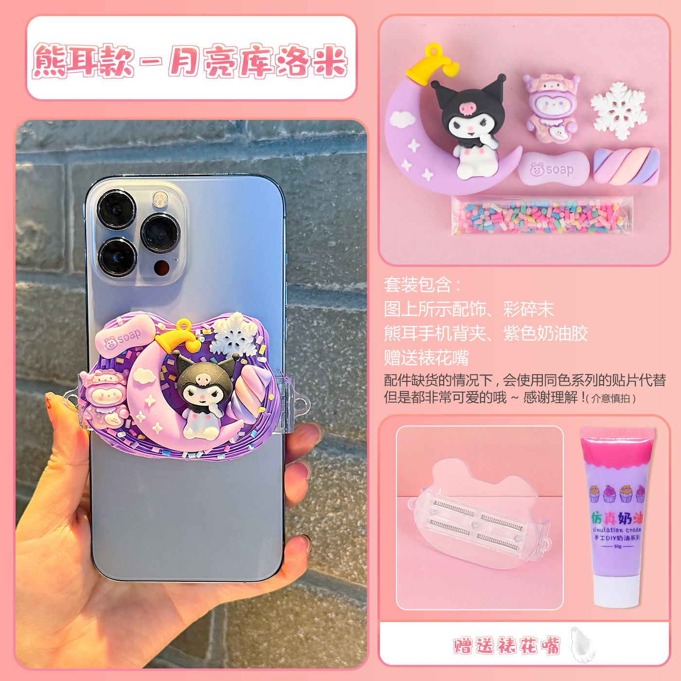新款手工diy翻盖镜子手机背夹卡扣挂绳拉布布奶油胶材料包补妆镜