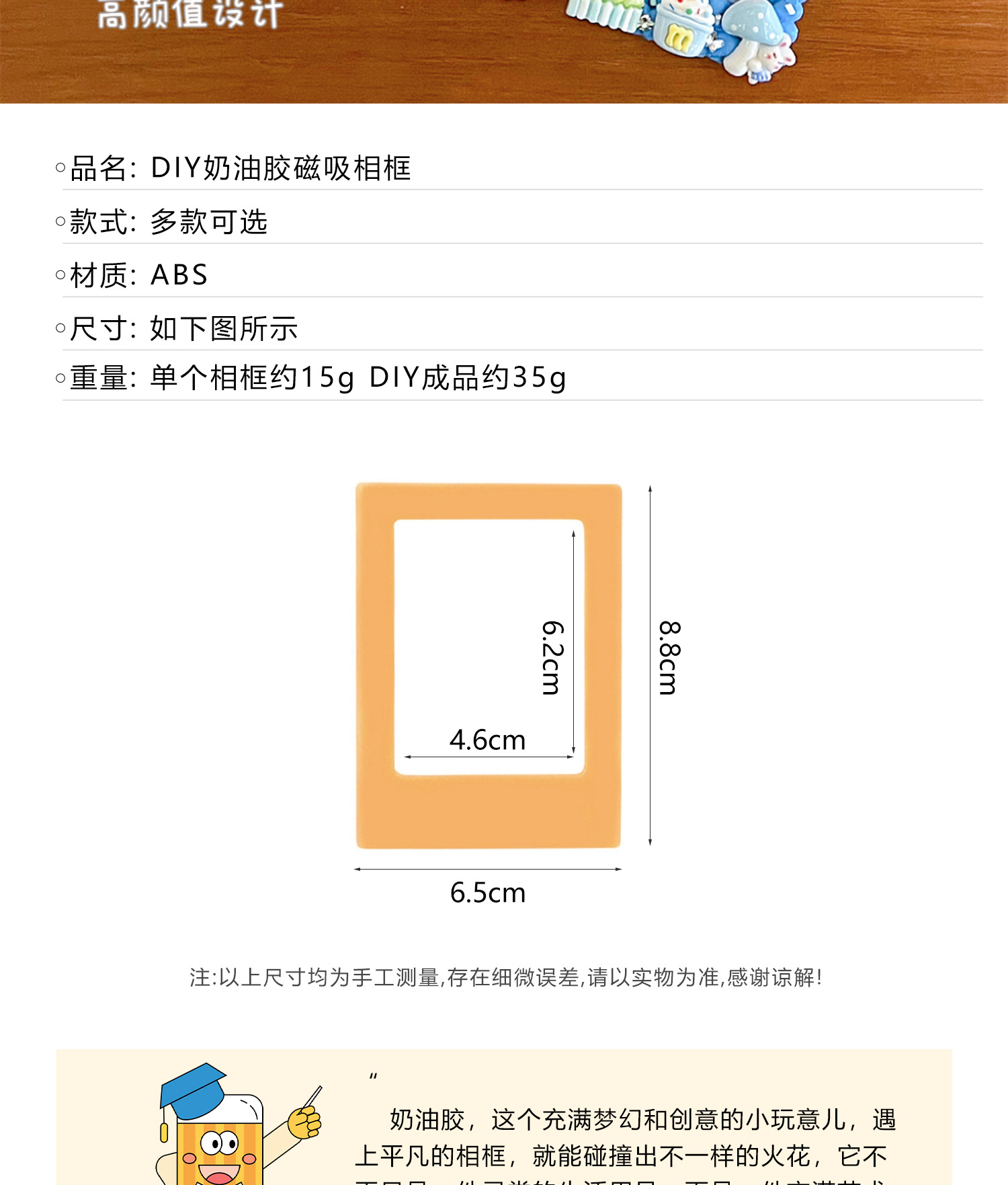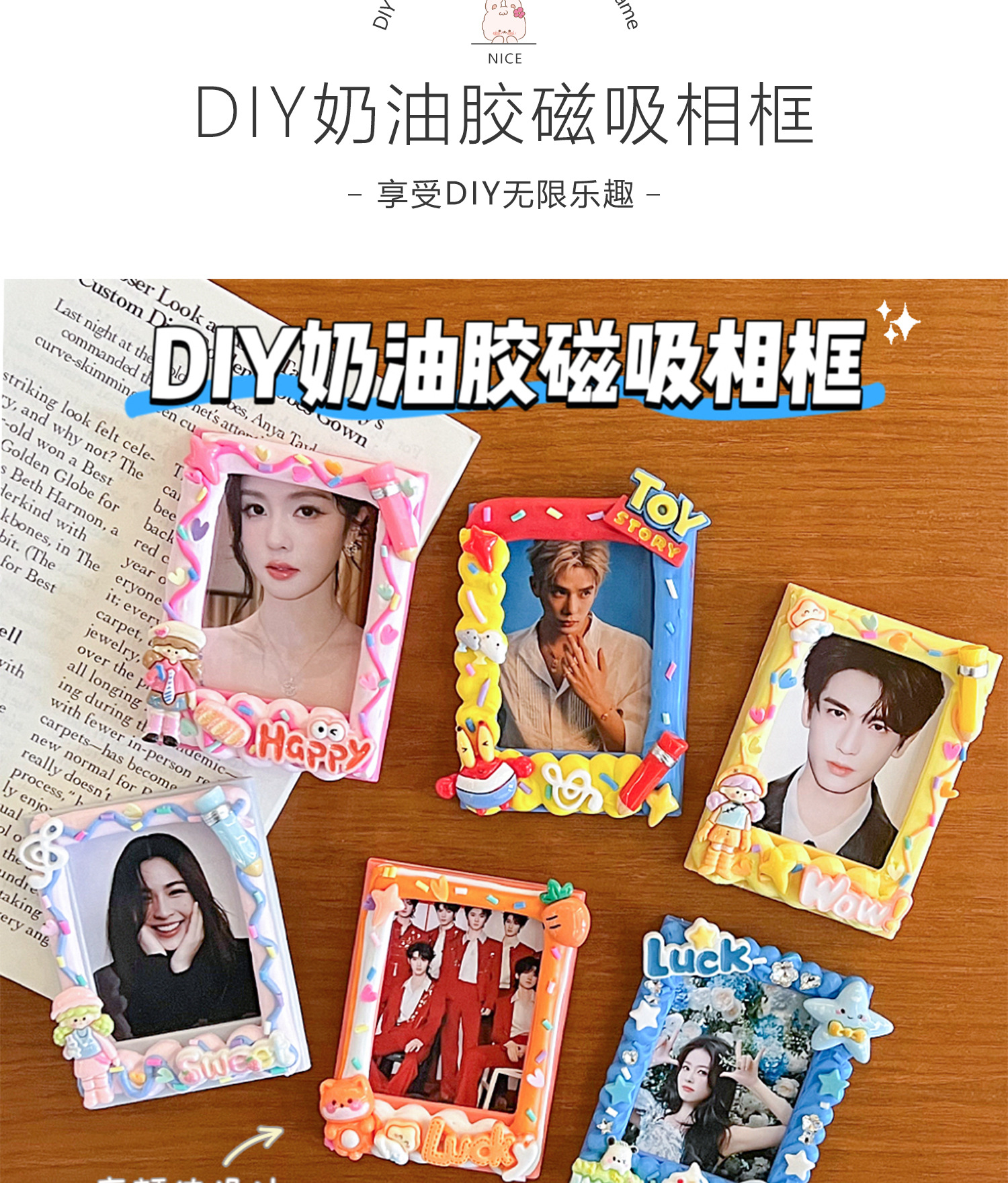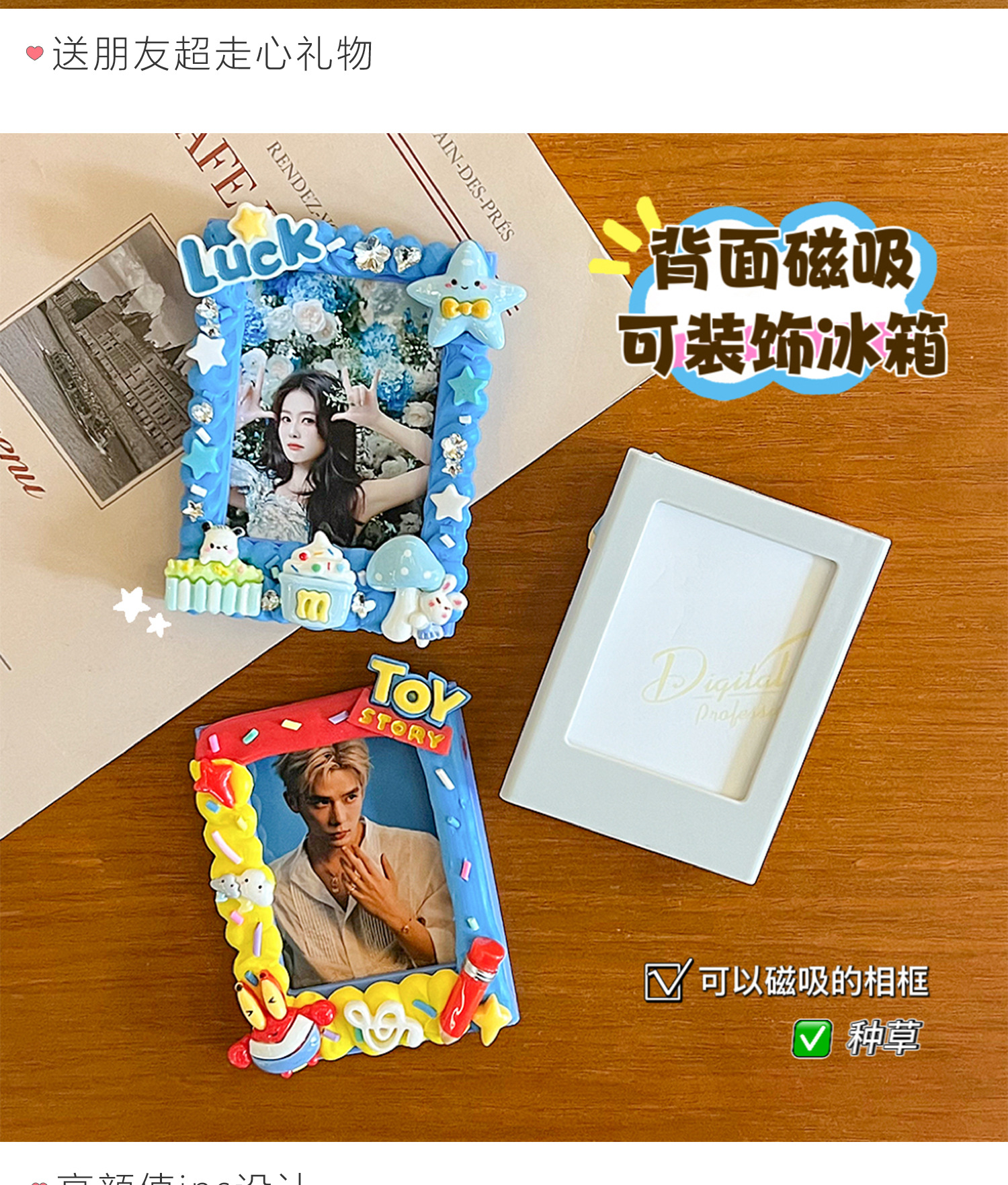 高颜值磁吸小相框摆台框架奶油胶diy材料包手工新款卡通简约玩具