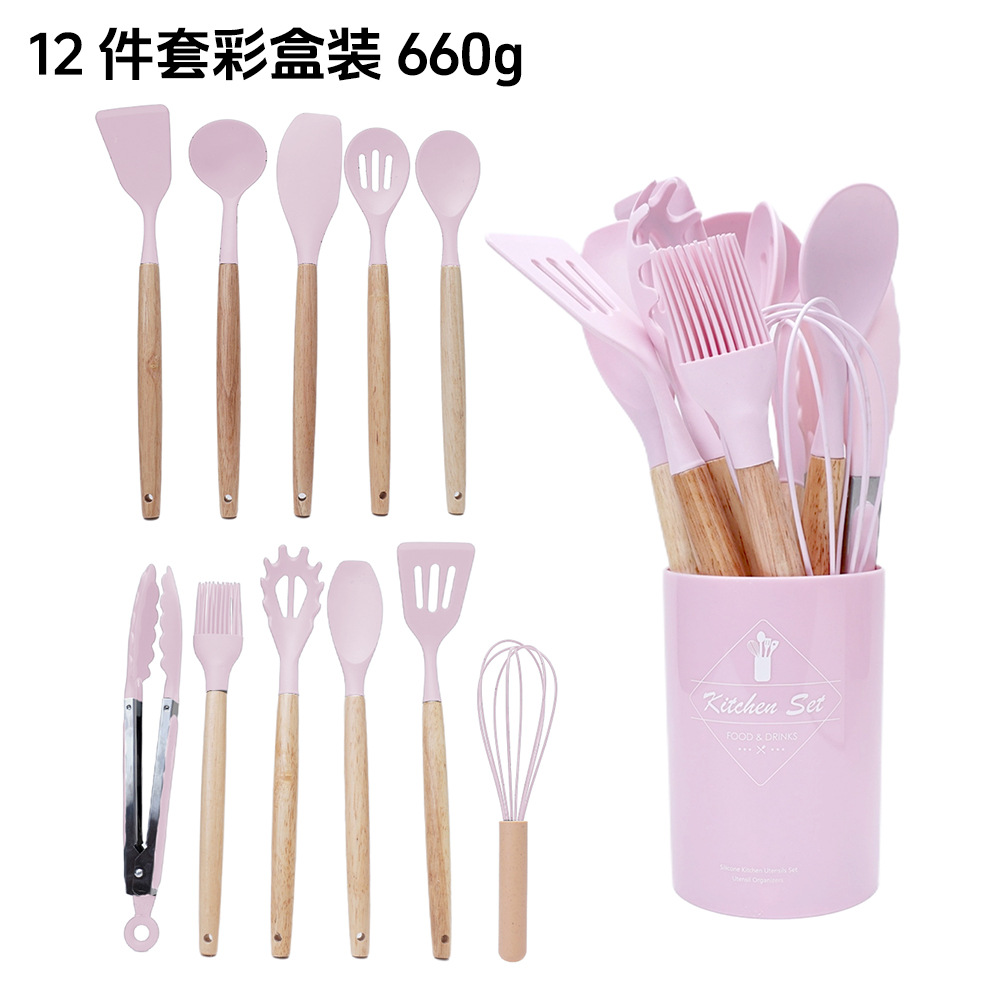 轻版750g硅胶厨具套装木柄十四件套厨房工具烹饪铲勺套装14件套