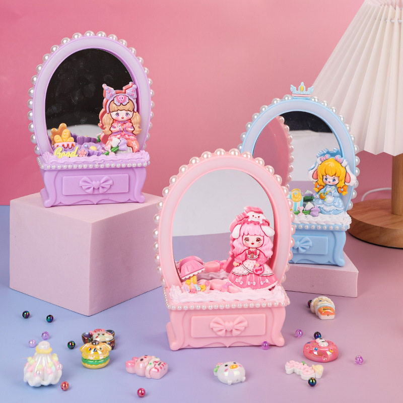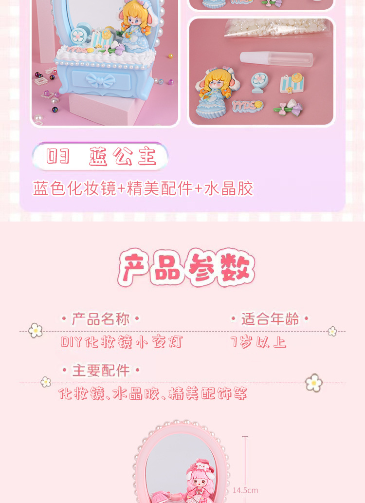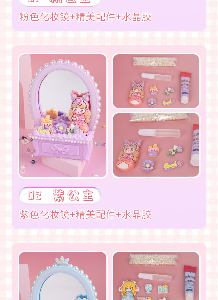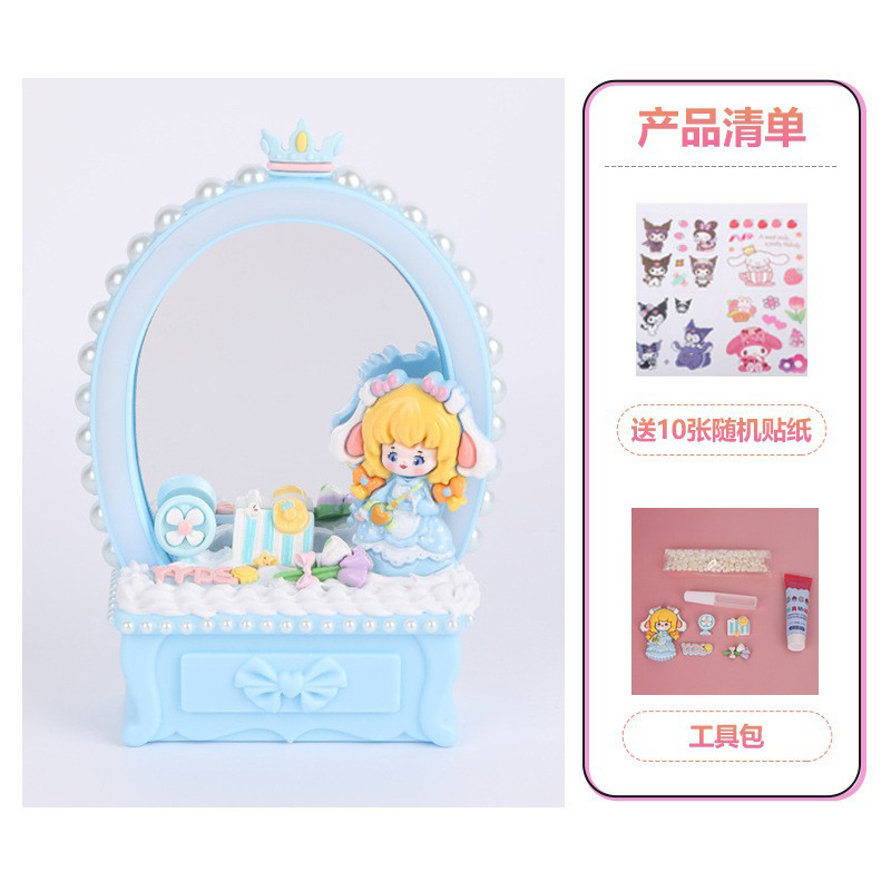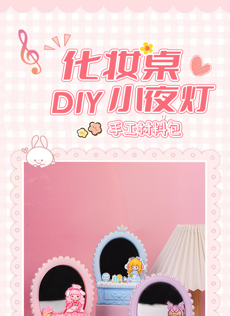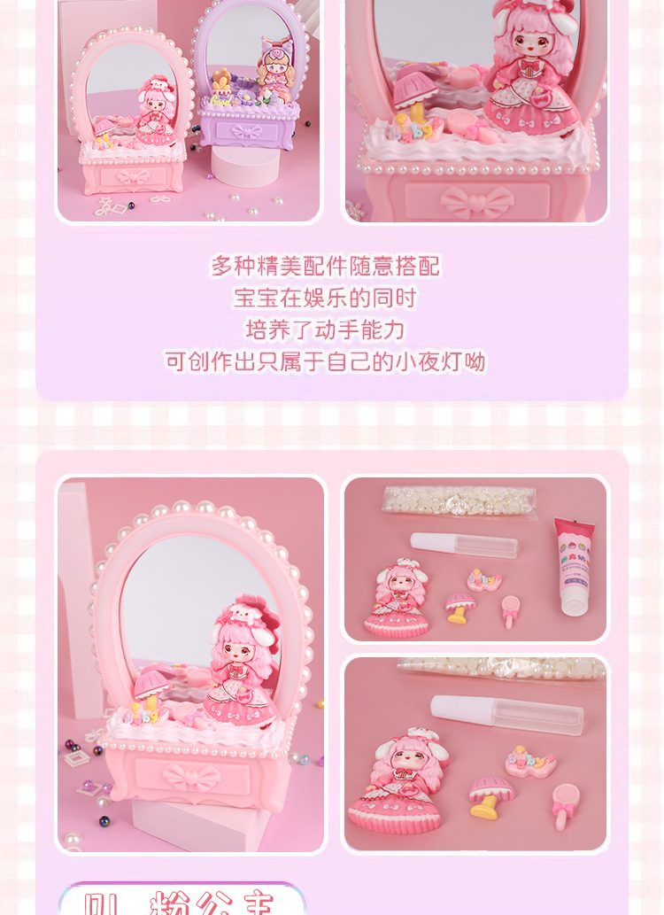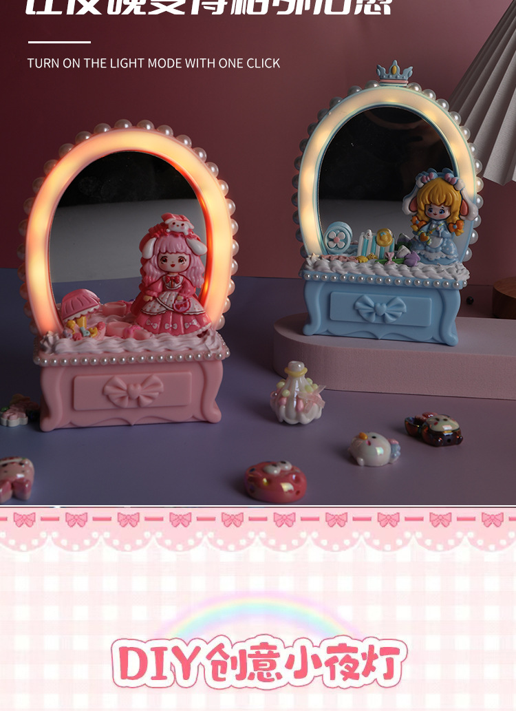 儿童diy公主梳妆镜材料包 手工化妆镜童趣小夜灯女孩发光玩具批发