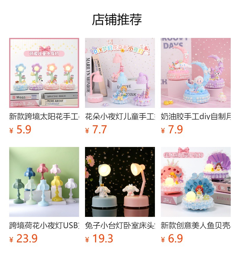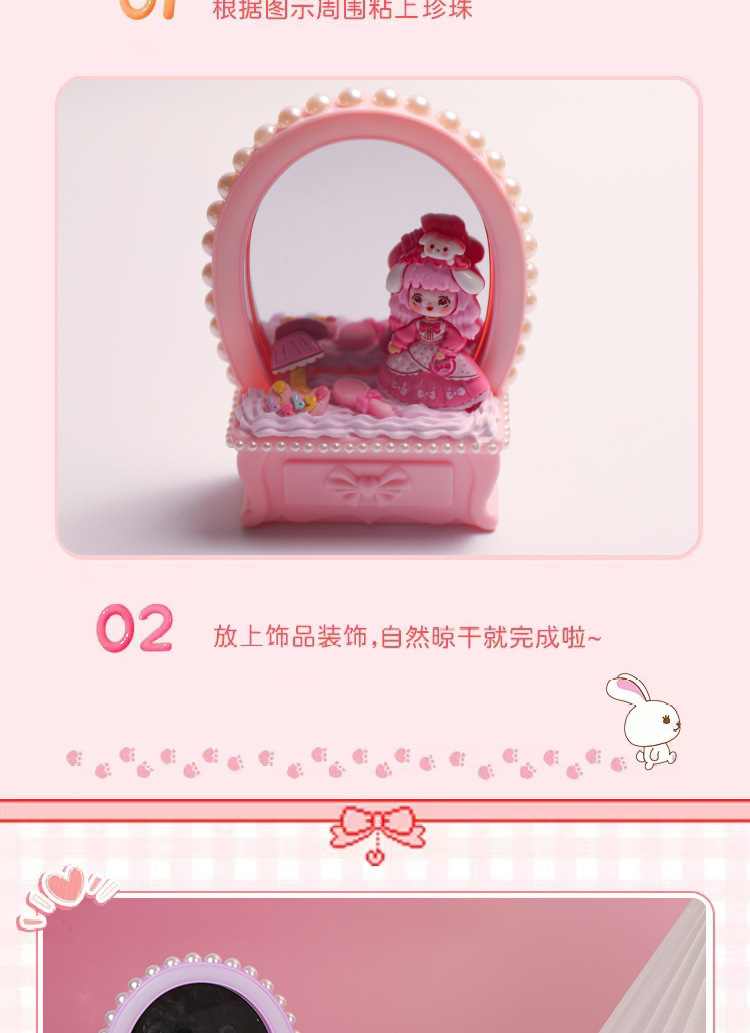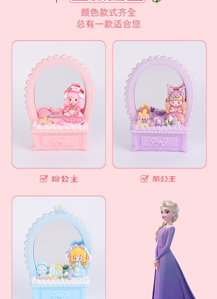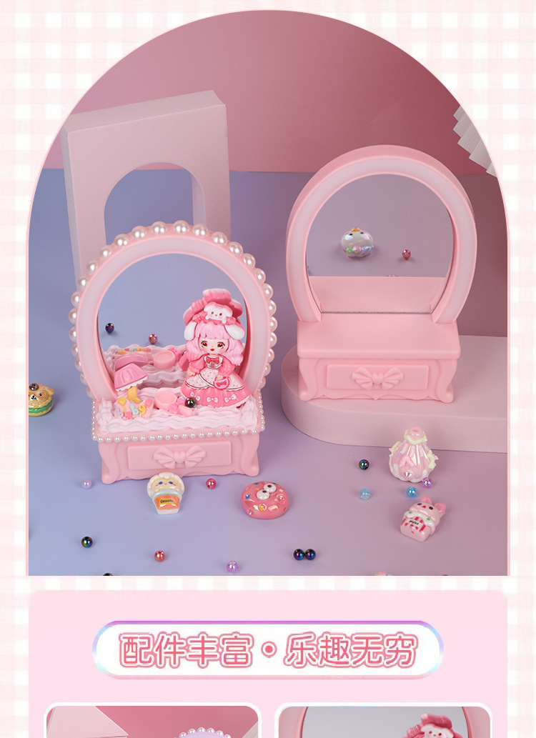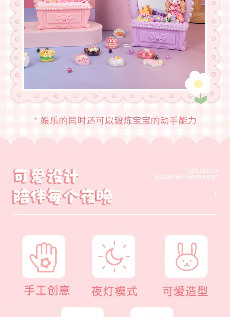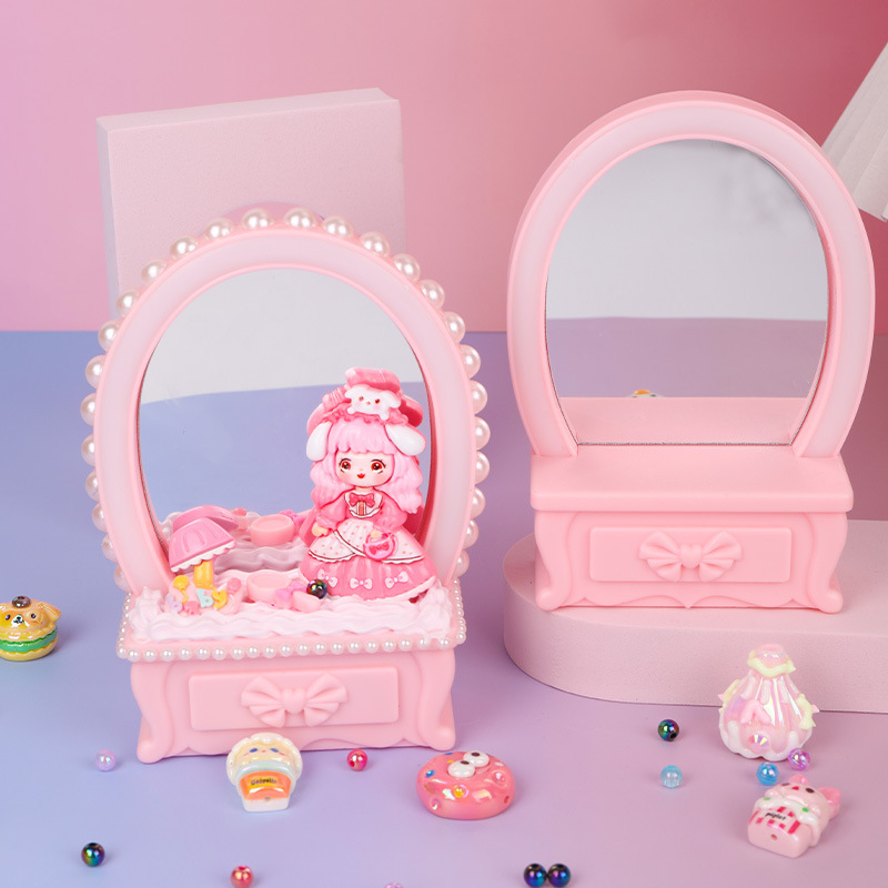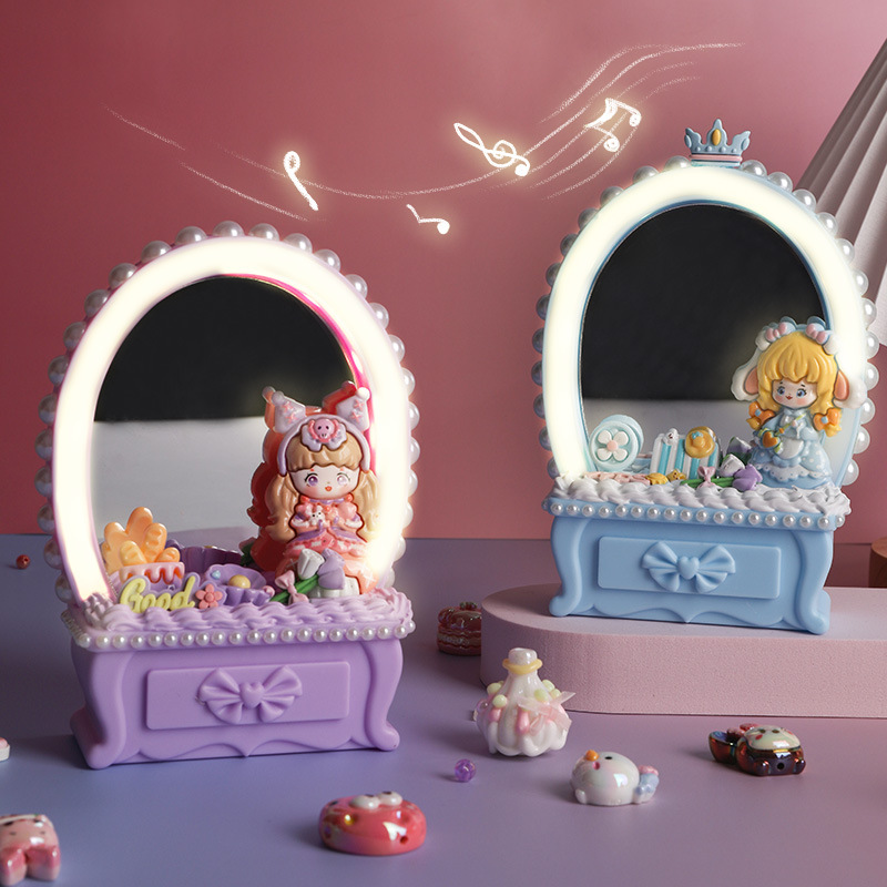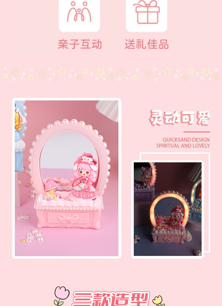 儿童diy公主梳妆镜材料包 手工化妆镜童趣小夜灯女孩发光玩具批发