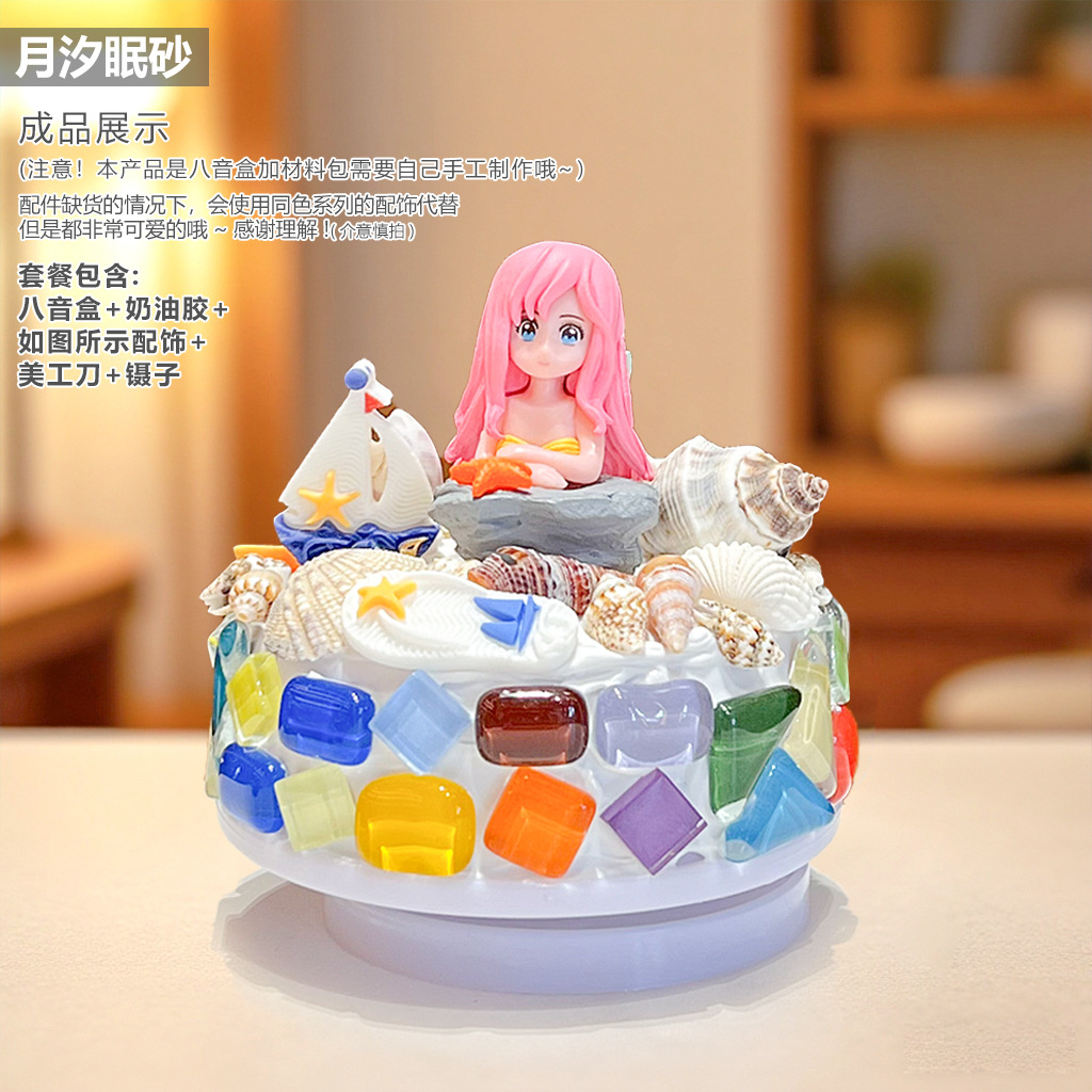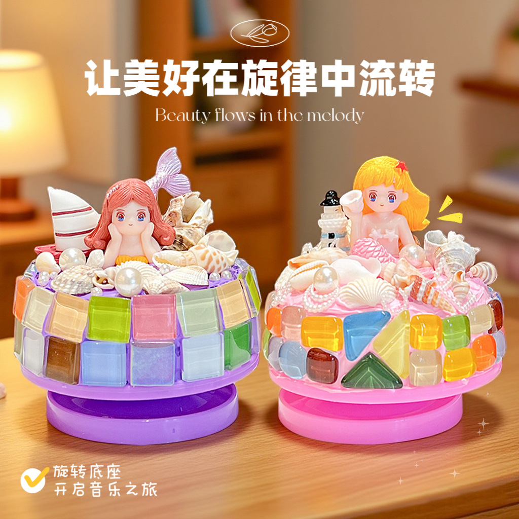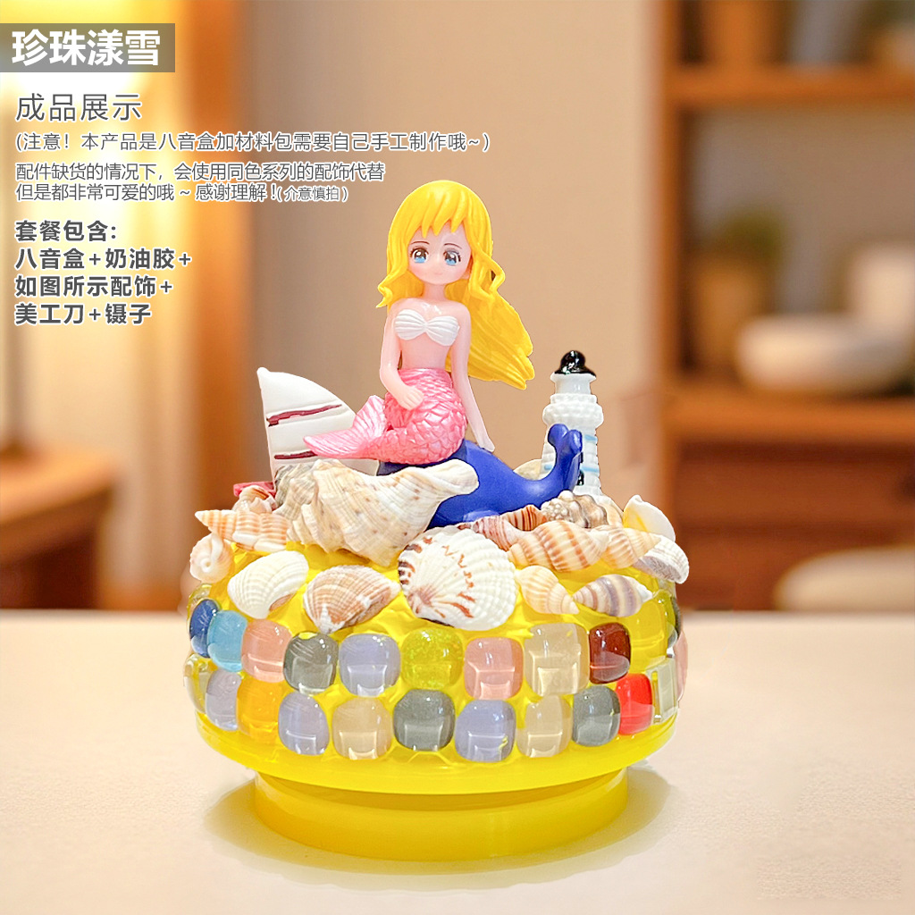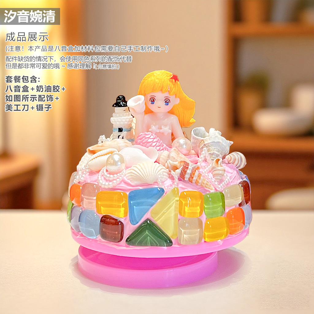 美人鱼娃娃奶油胶底座旋转音乐盒儿童手工diy材料包八音盒玩具