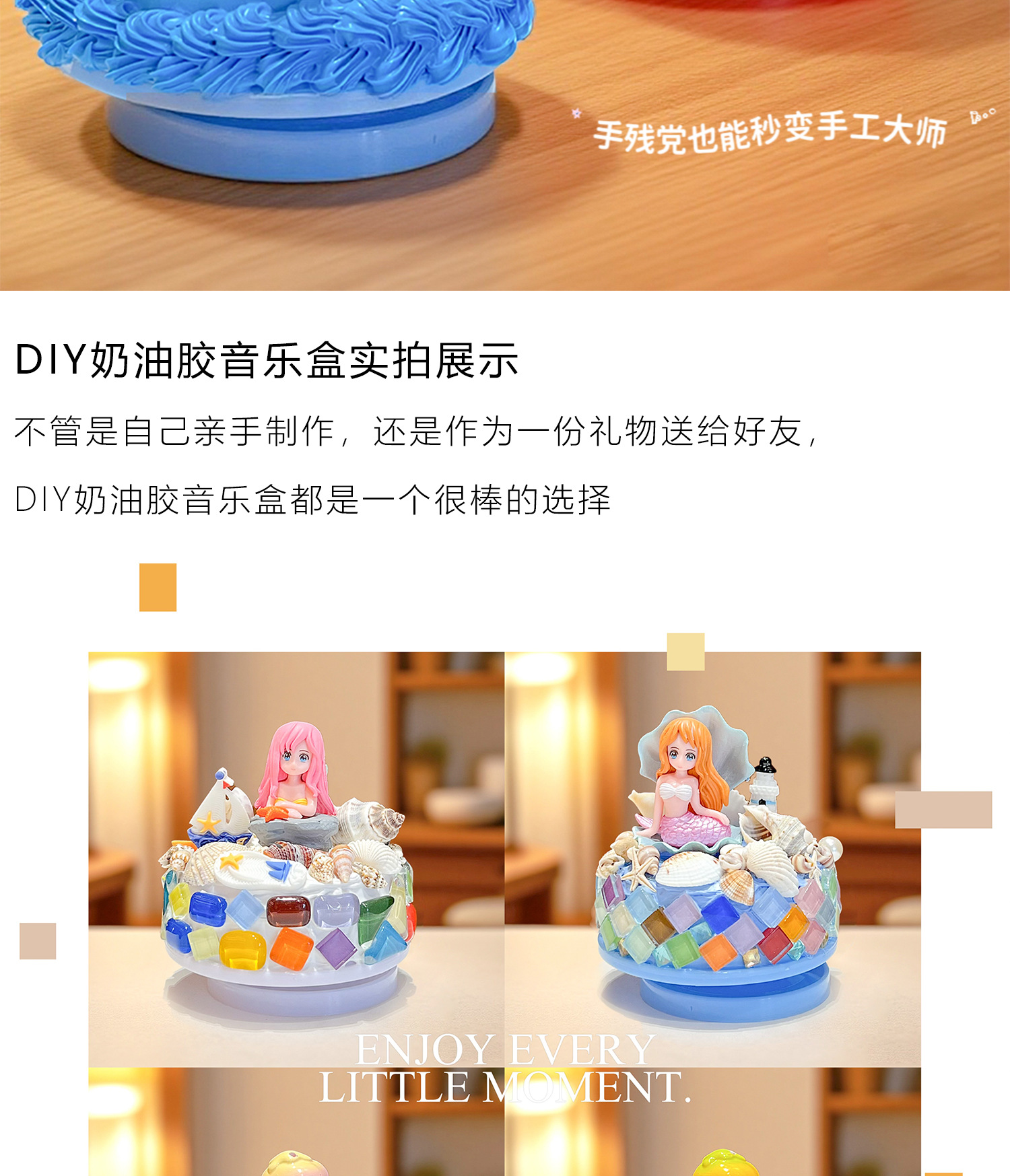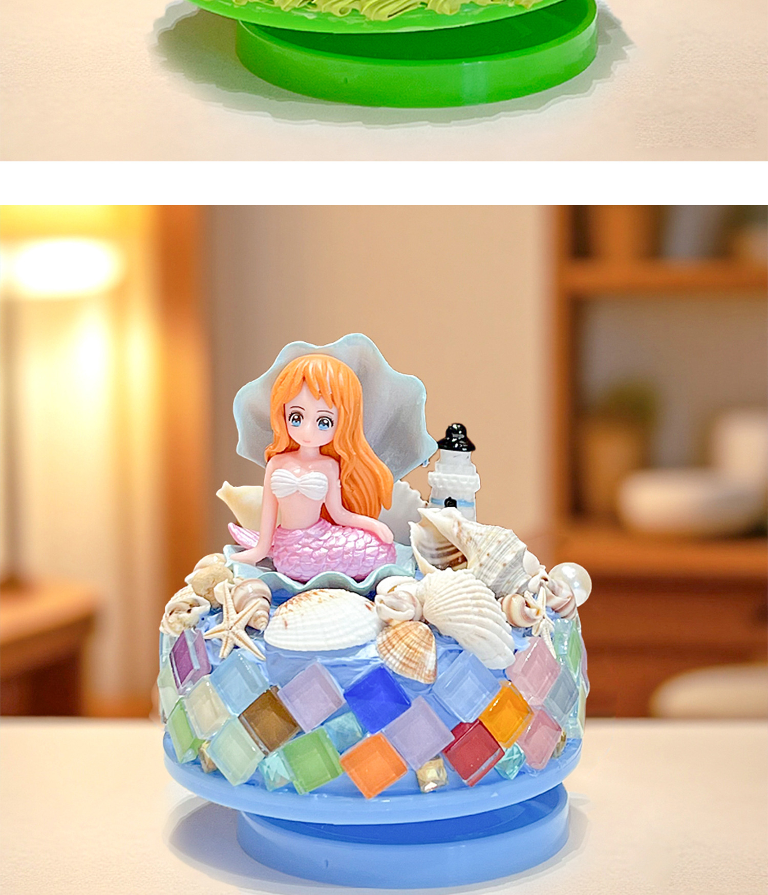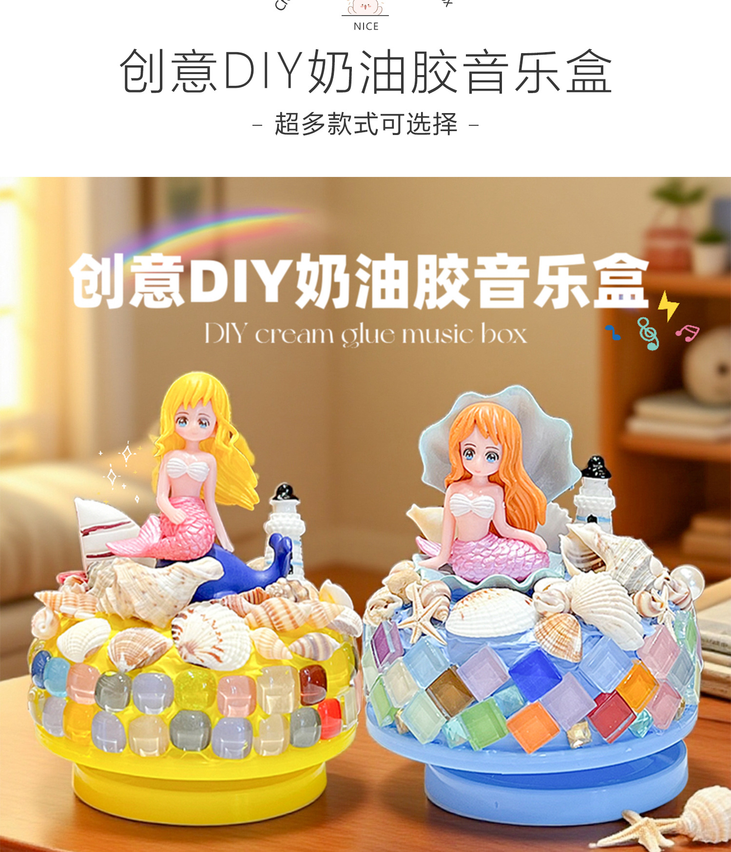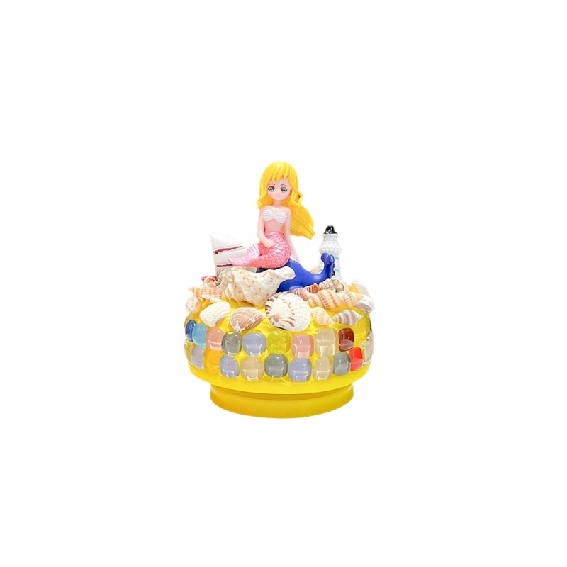 美人鱼娃娃奶油胶底座旋转音乐盒儿童手工diy材料包八音盒玩具