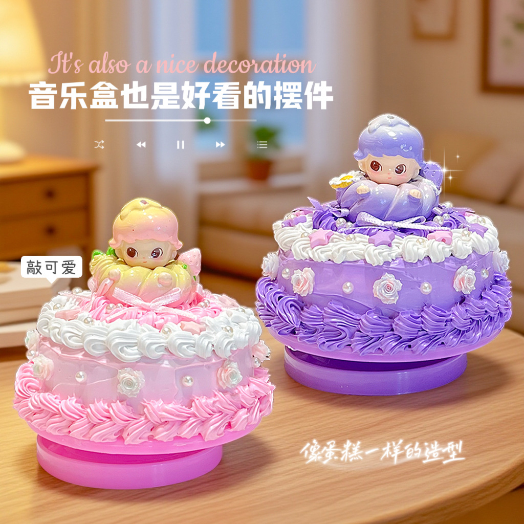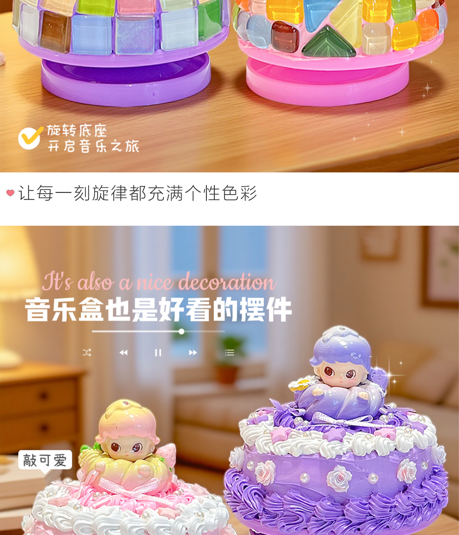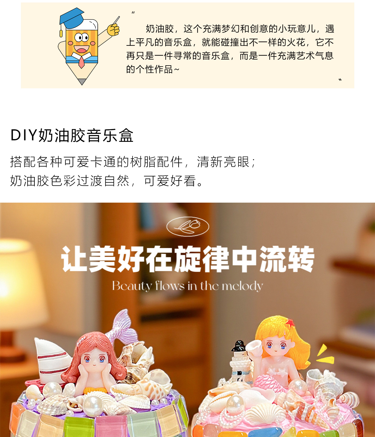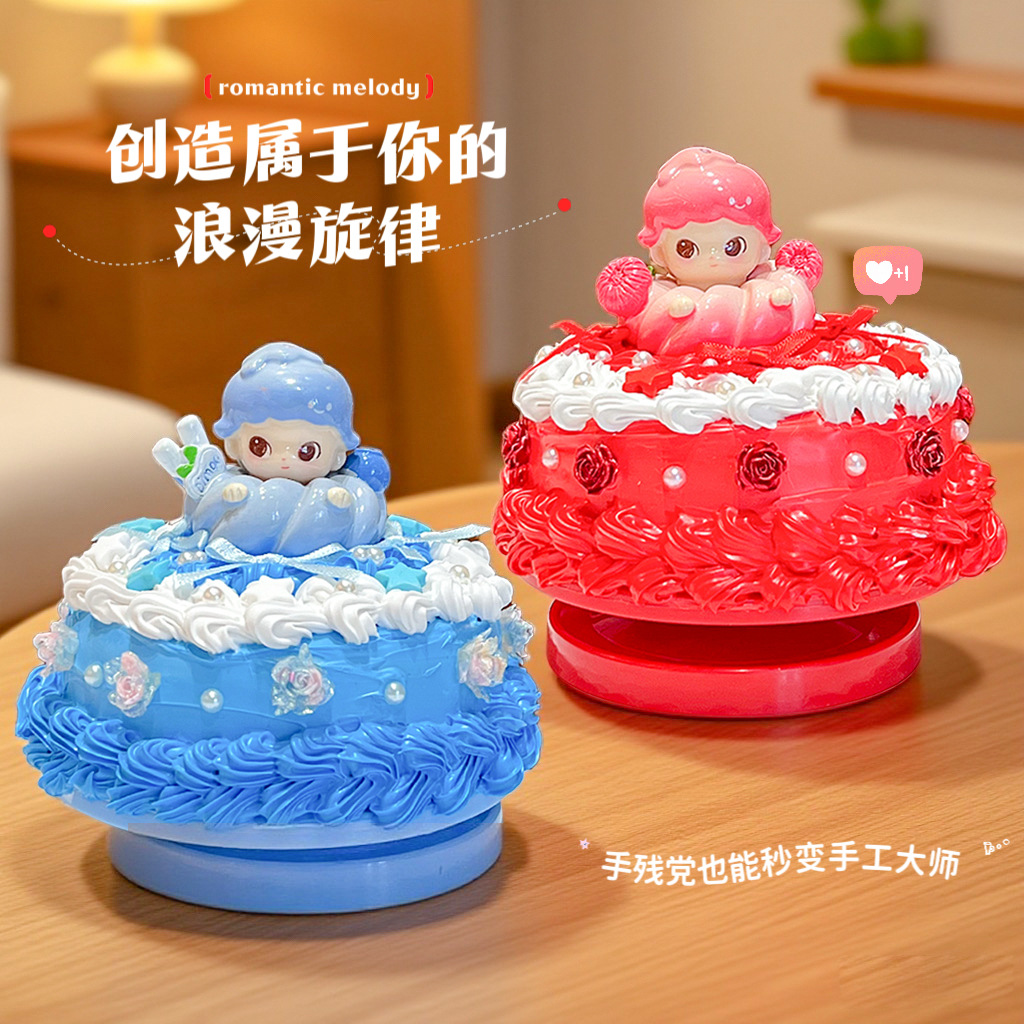 美人鱼娃娃奶油胶底座旋转音乐盒儿童手工diy材料包八音盒玩具