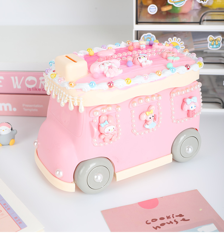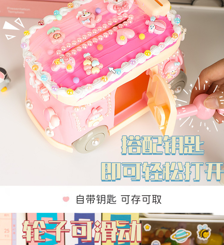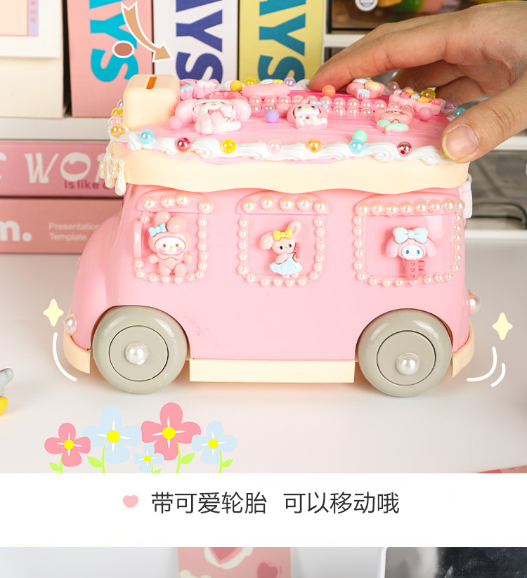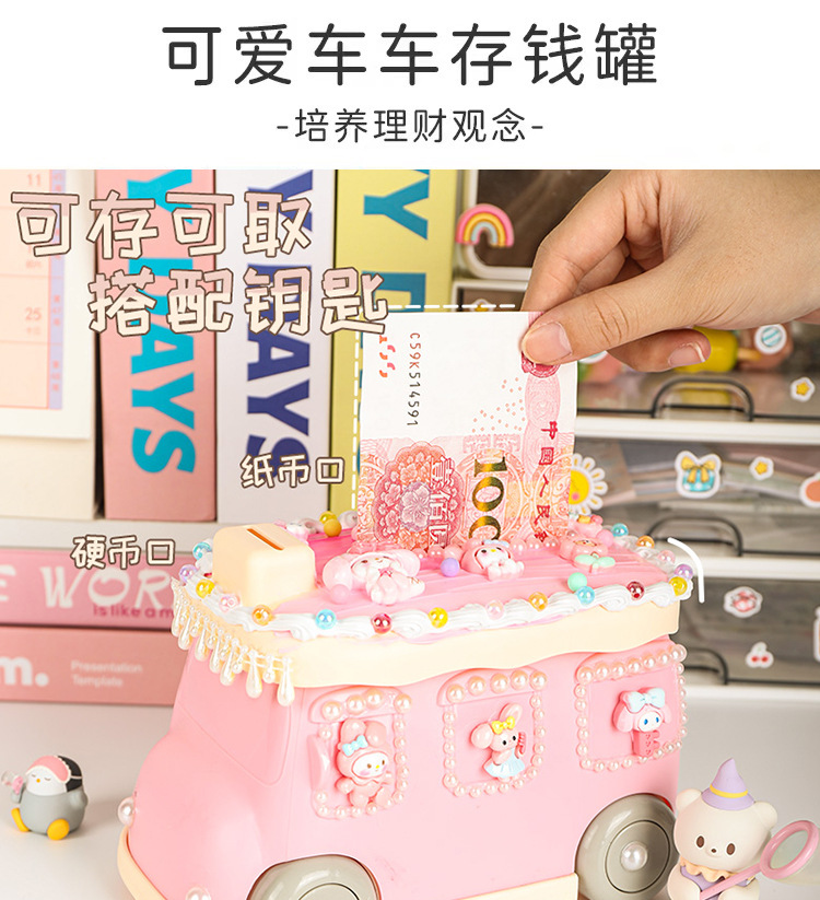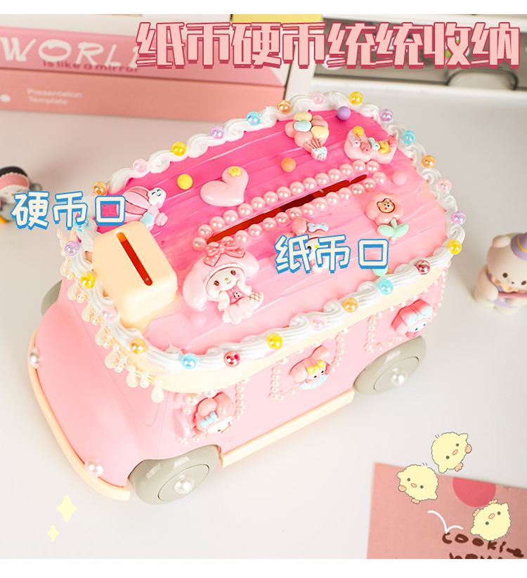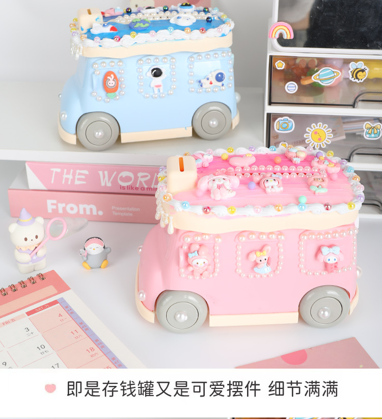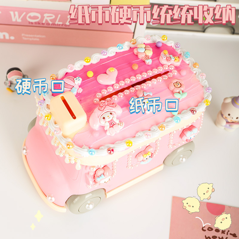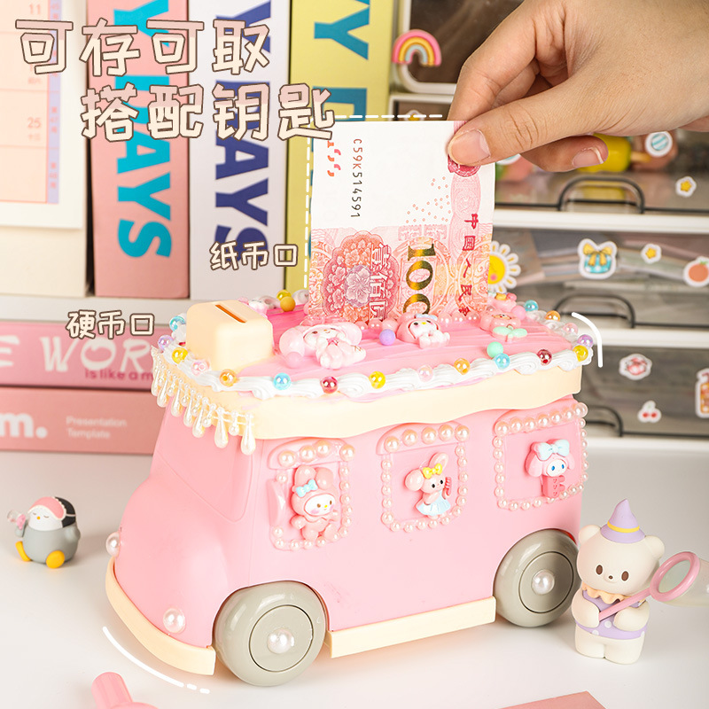 奶油胶存钱罐 儿童卡通巴士纸币储蓄罐 网红男女孩硬币储钱箱收纳