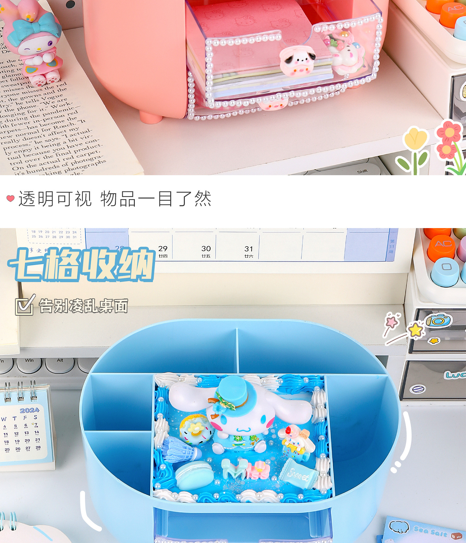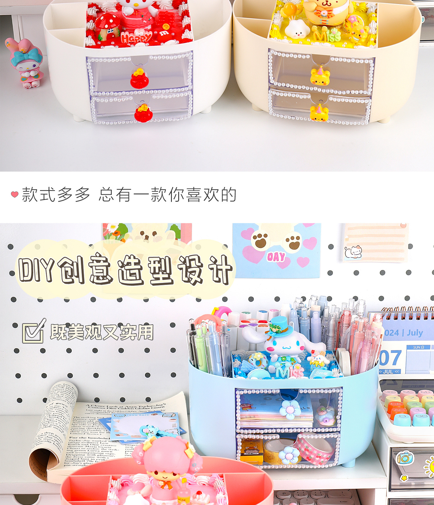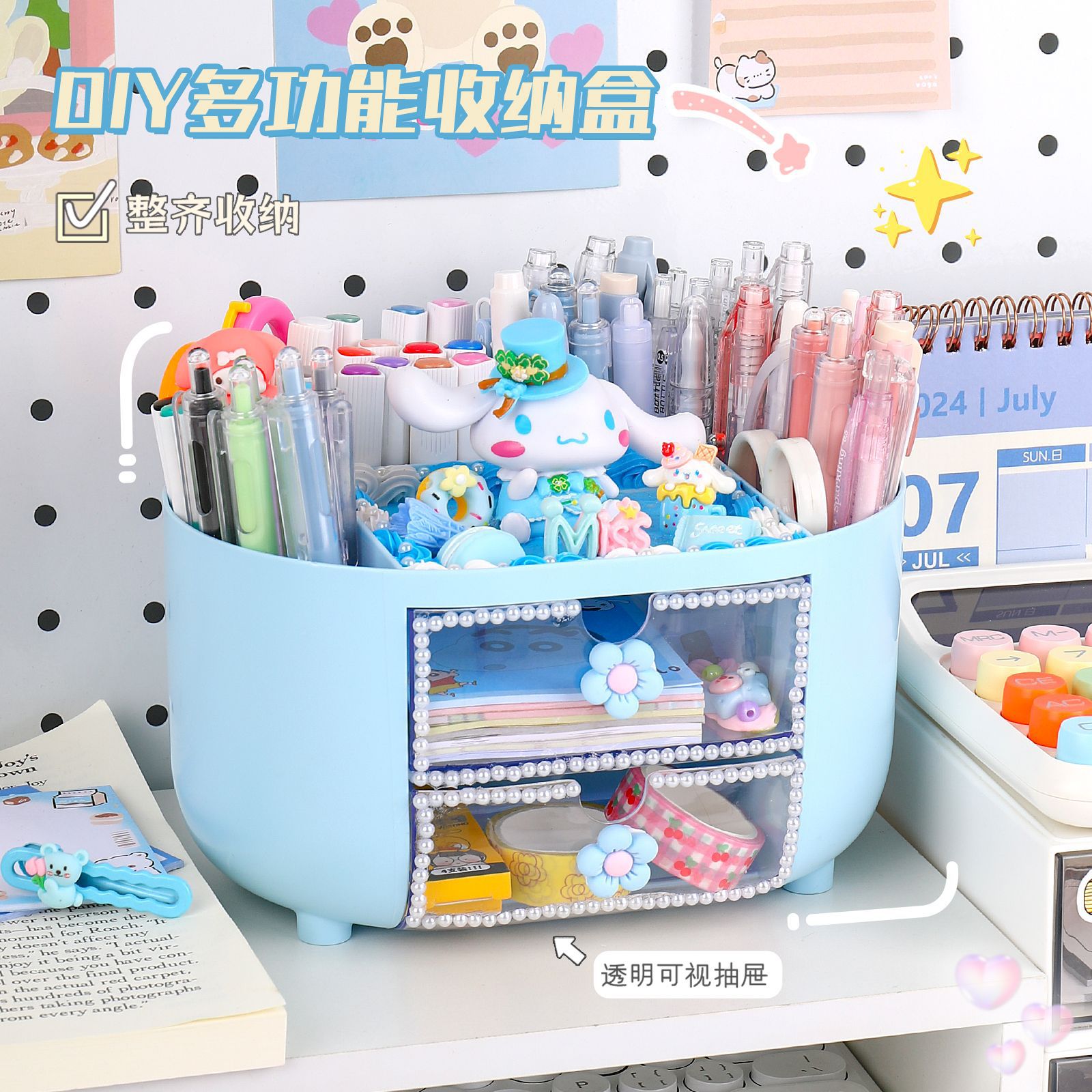 儿童手工小众diy多功能分格收纳盒家用桌面画笔收藏整理益智玩具