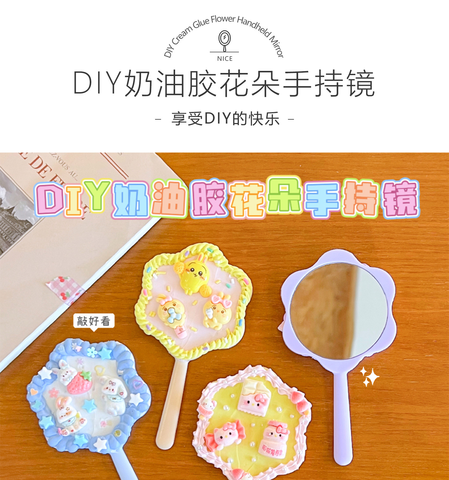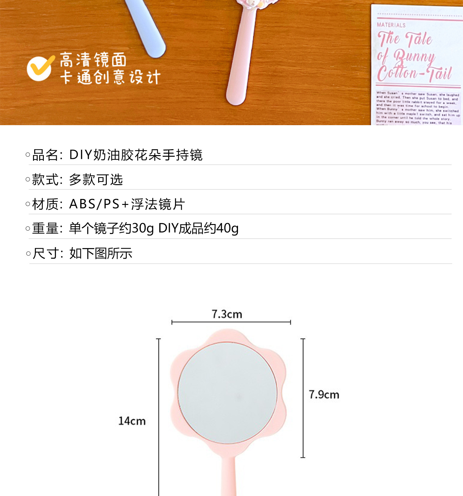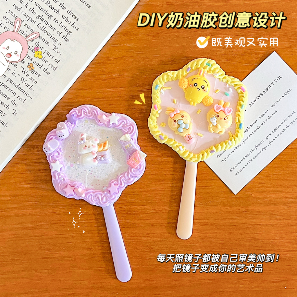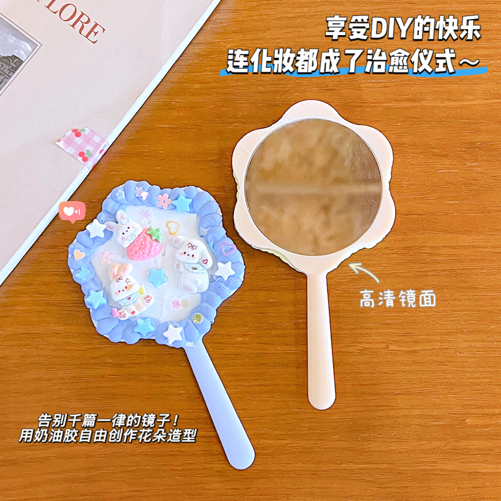 新款手工奶油胶diy手持花朵化妆镜可爱材料包少女手柄美妆小镜子
