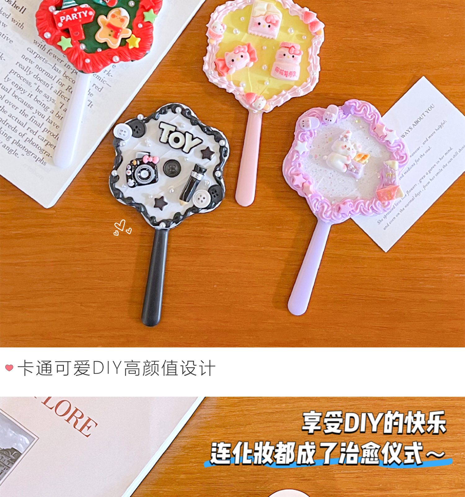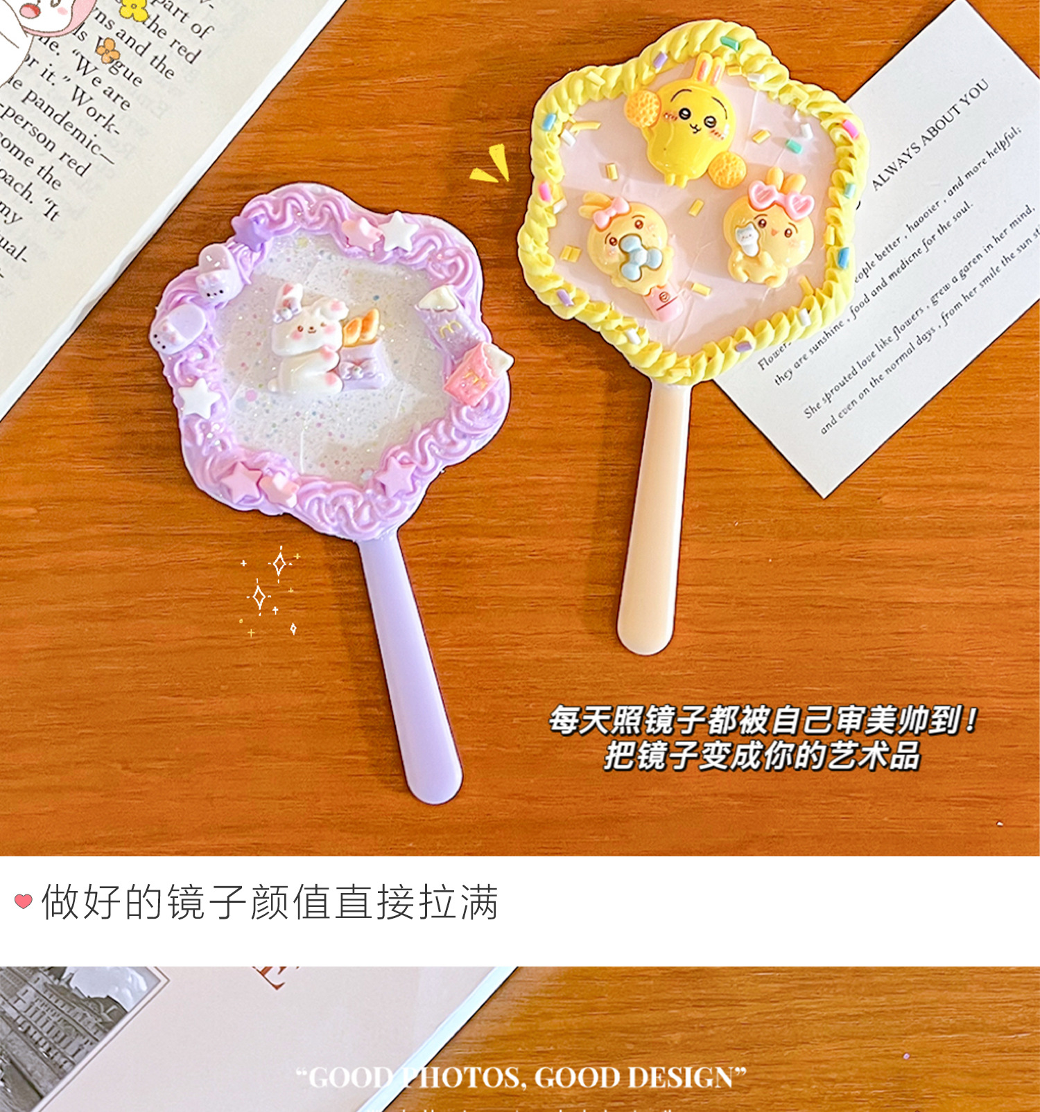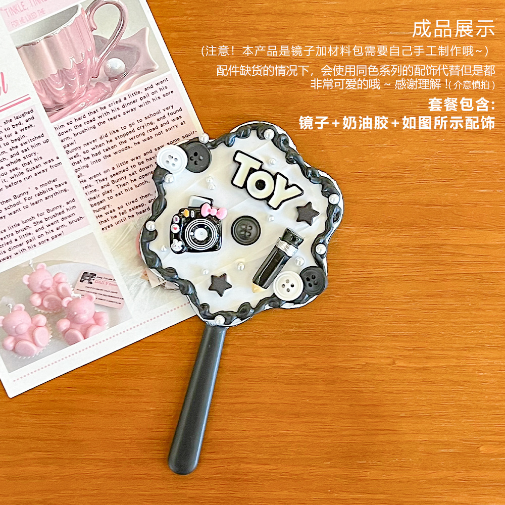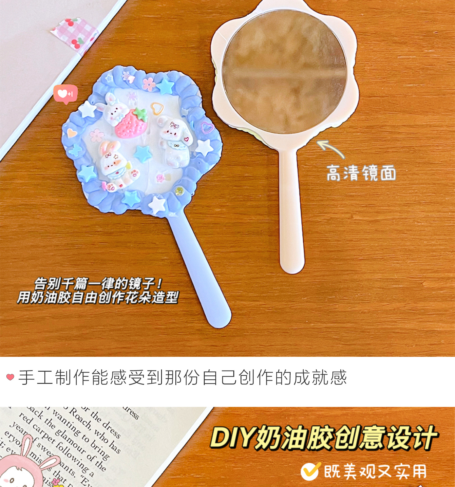 新款手工奶油胶diy手持花朵化妆镜可爱材料包少女手柄美妆小镜子