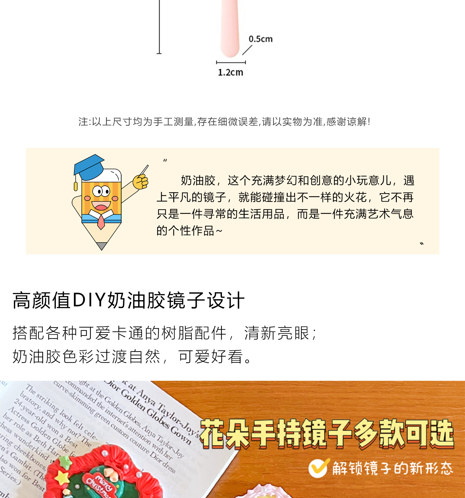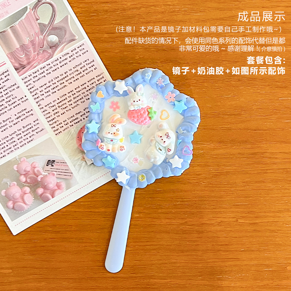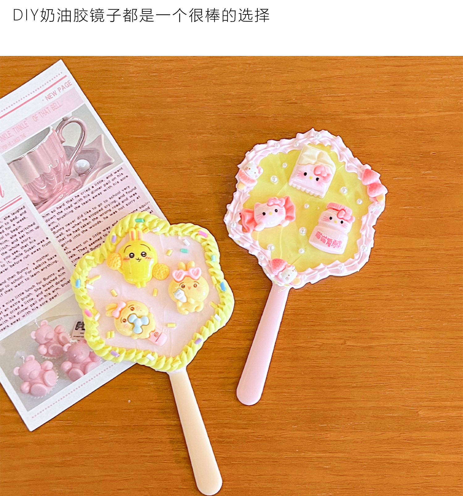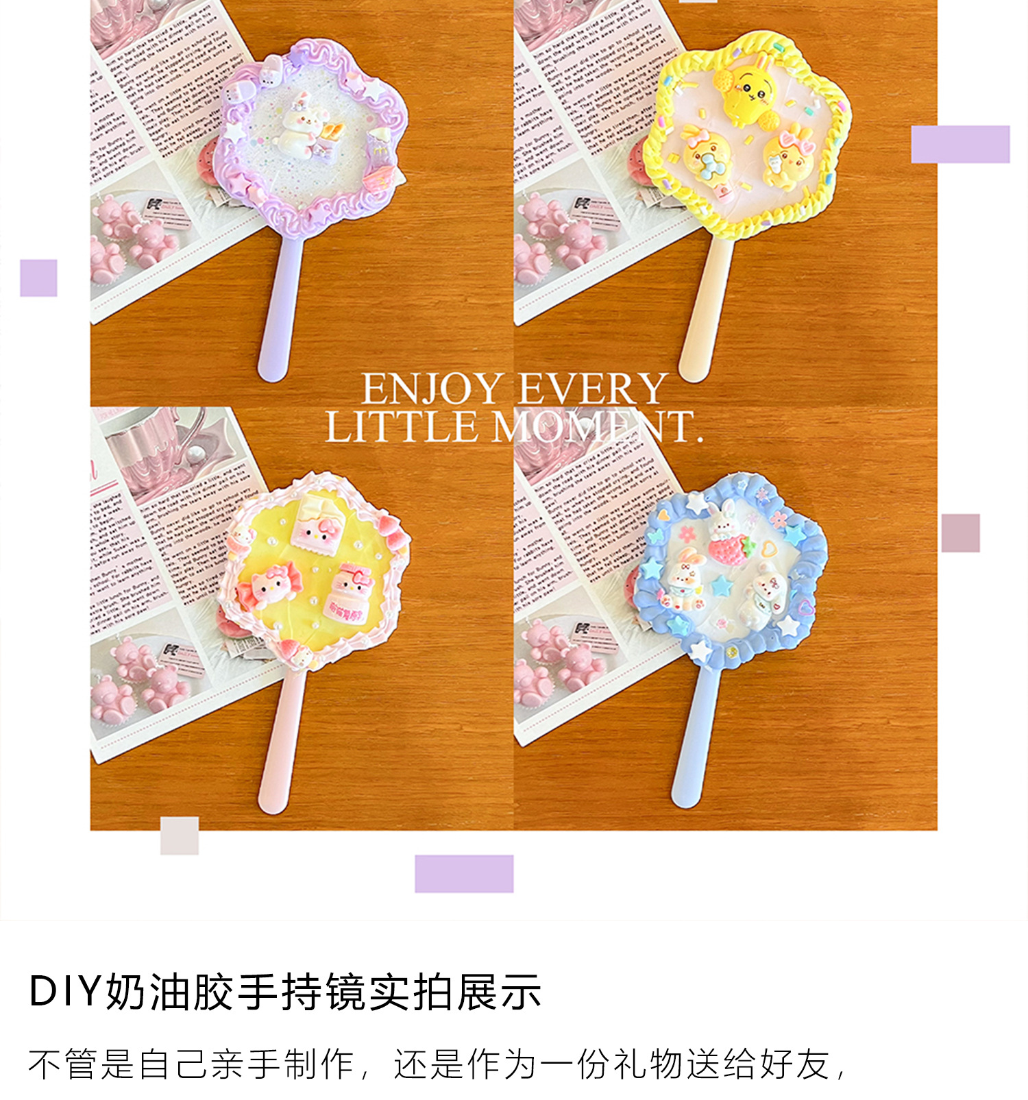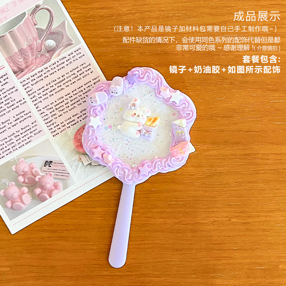 新款手工奶油胶diy手持花朵化妆镜可爱材料包少女手柄美妆小镜子