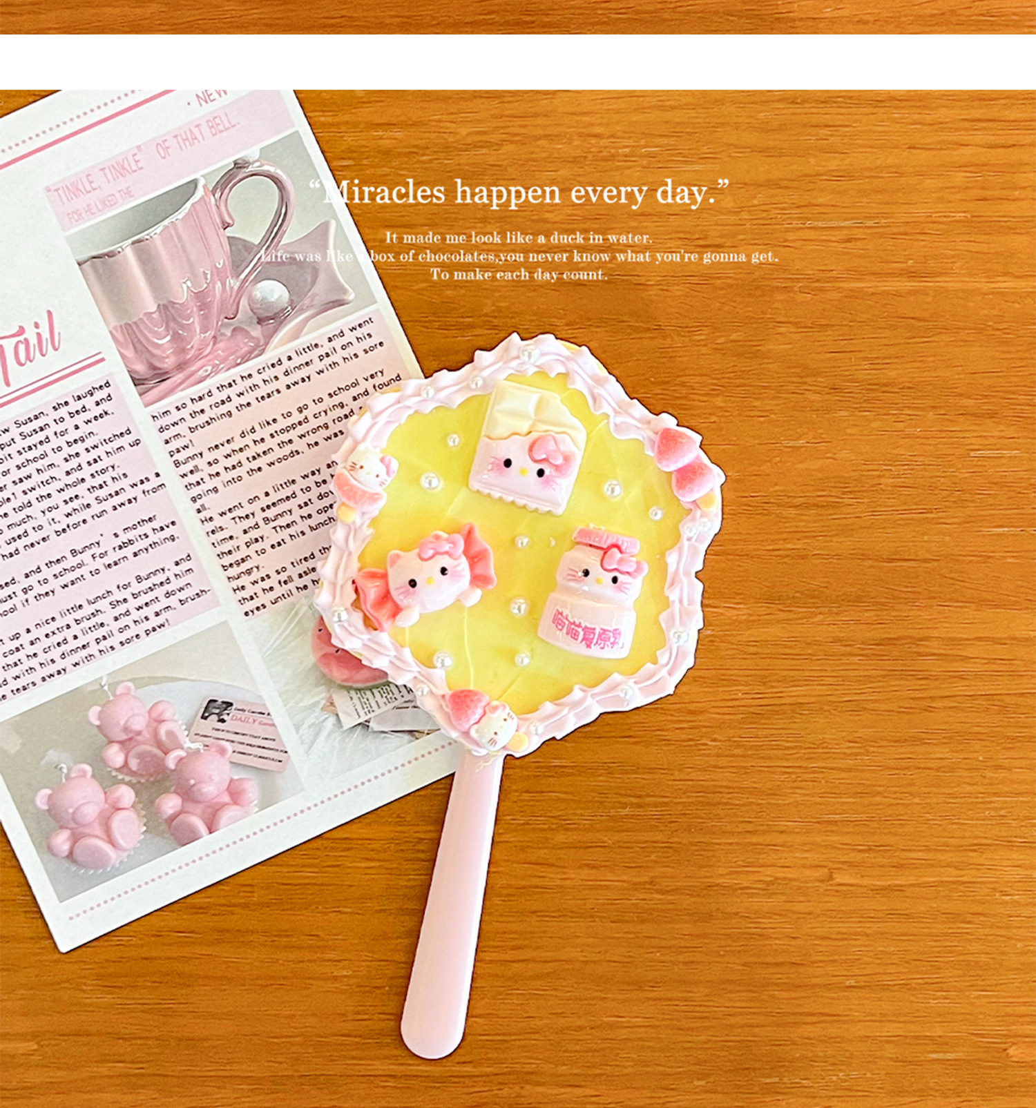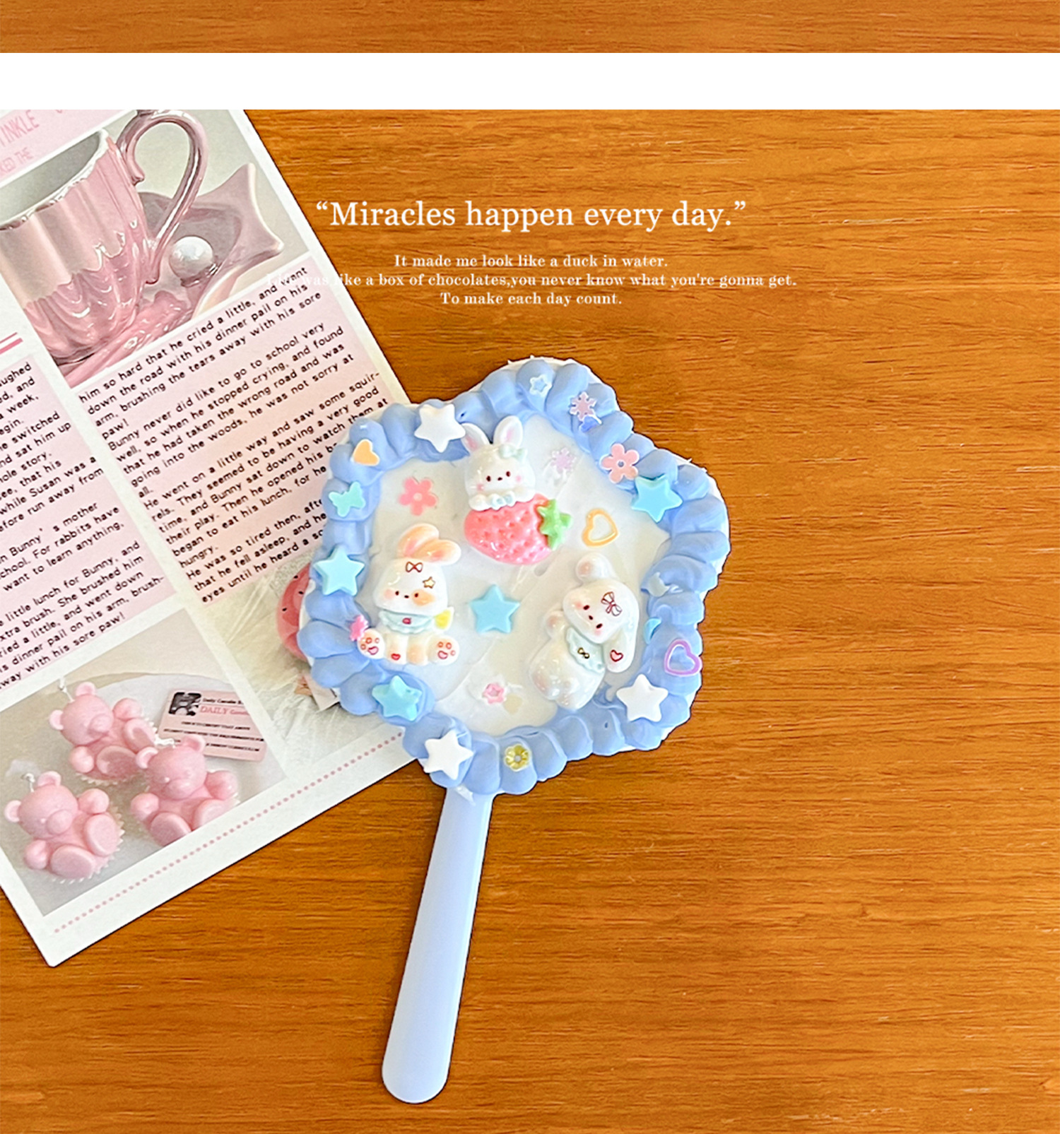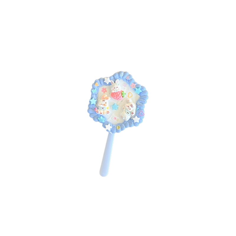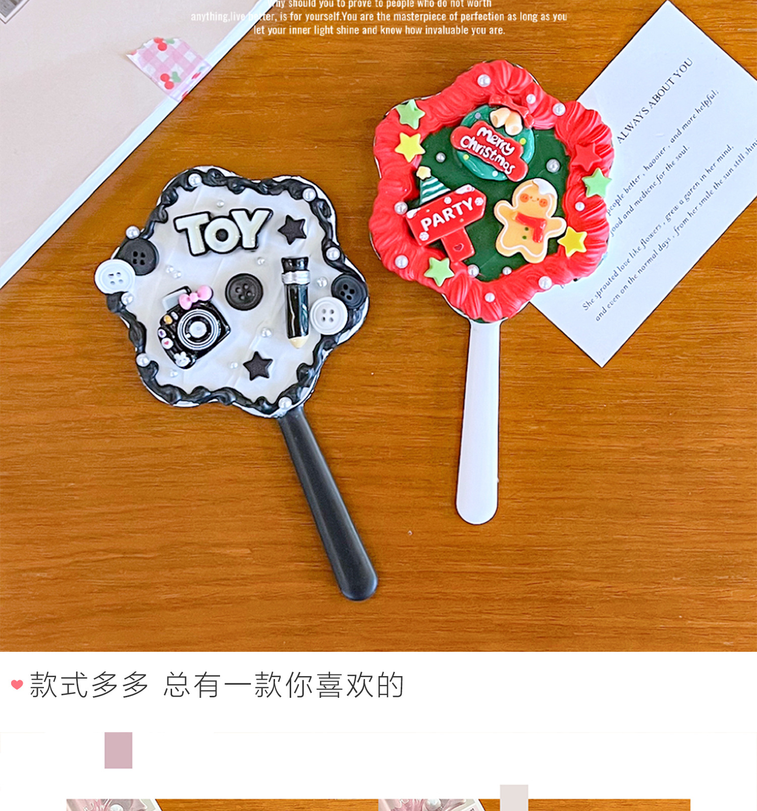 新款手工奶油胶diy手持花朵化妆镜可爱材料包少女手柄美妆小镜子