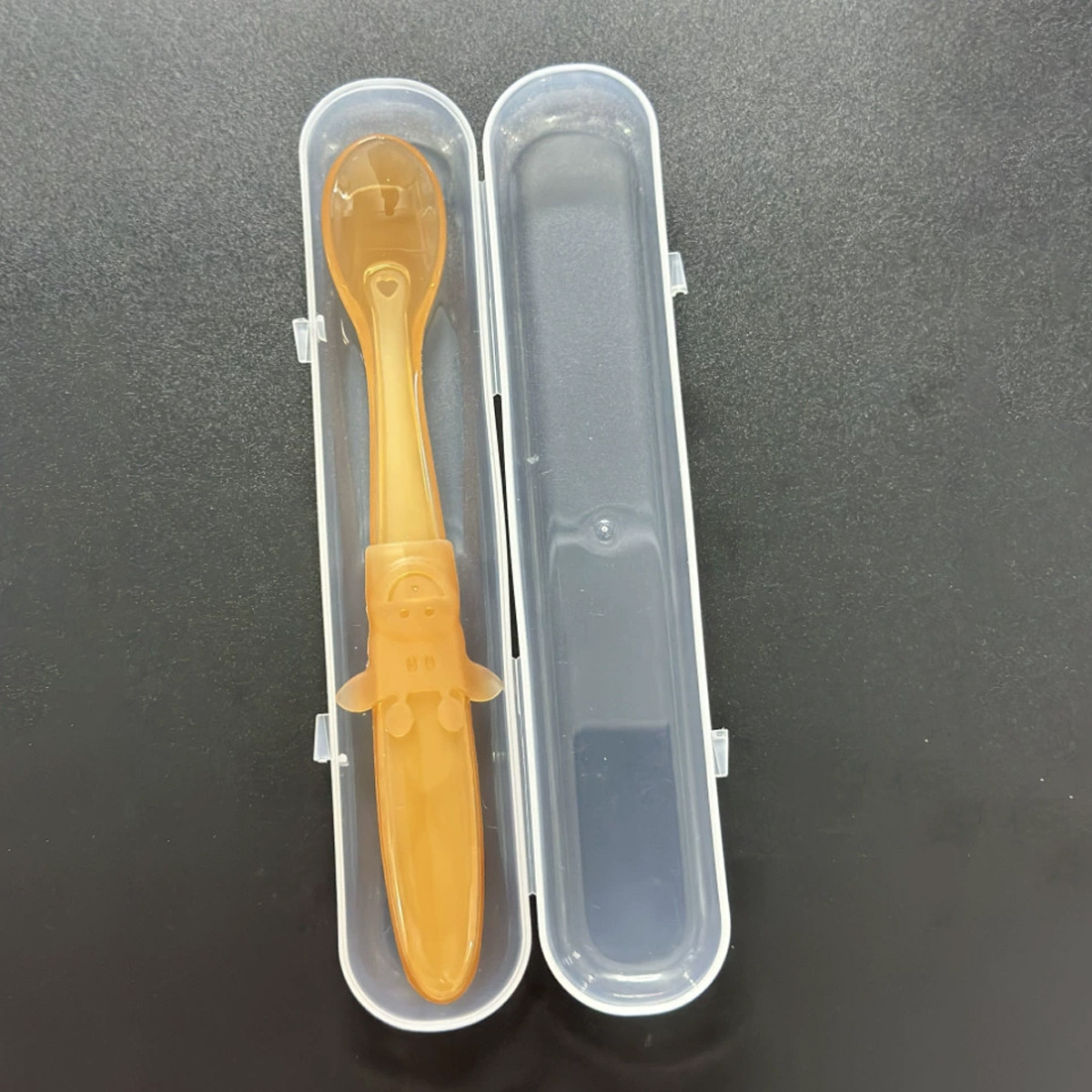 厂家直供 盒装 婴儿硅胶勺子儿童训练勺 全硅胶软匙婴儿童硅胶勺