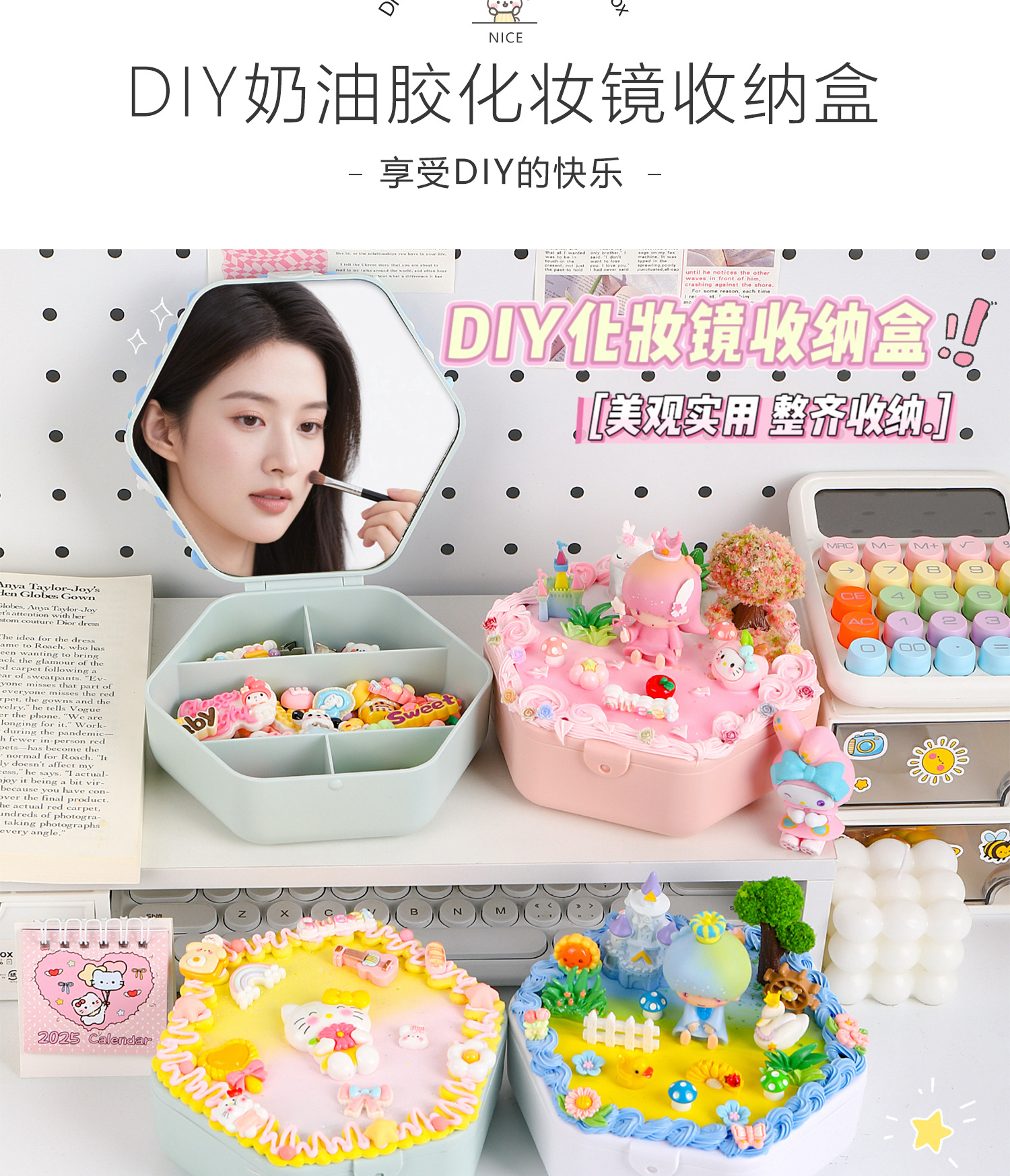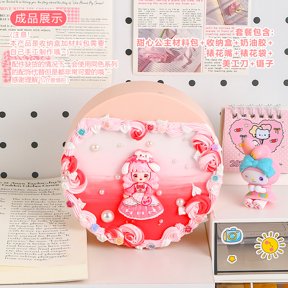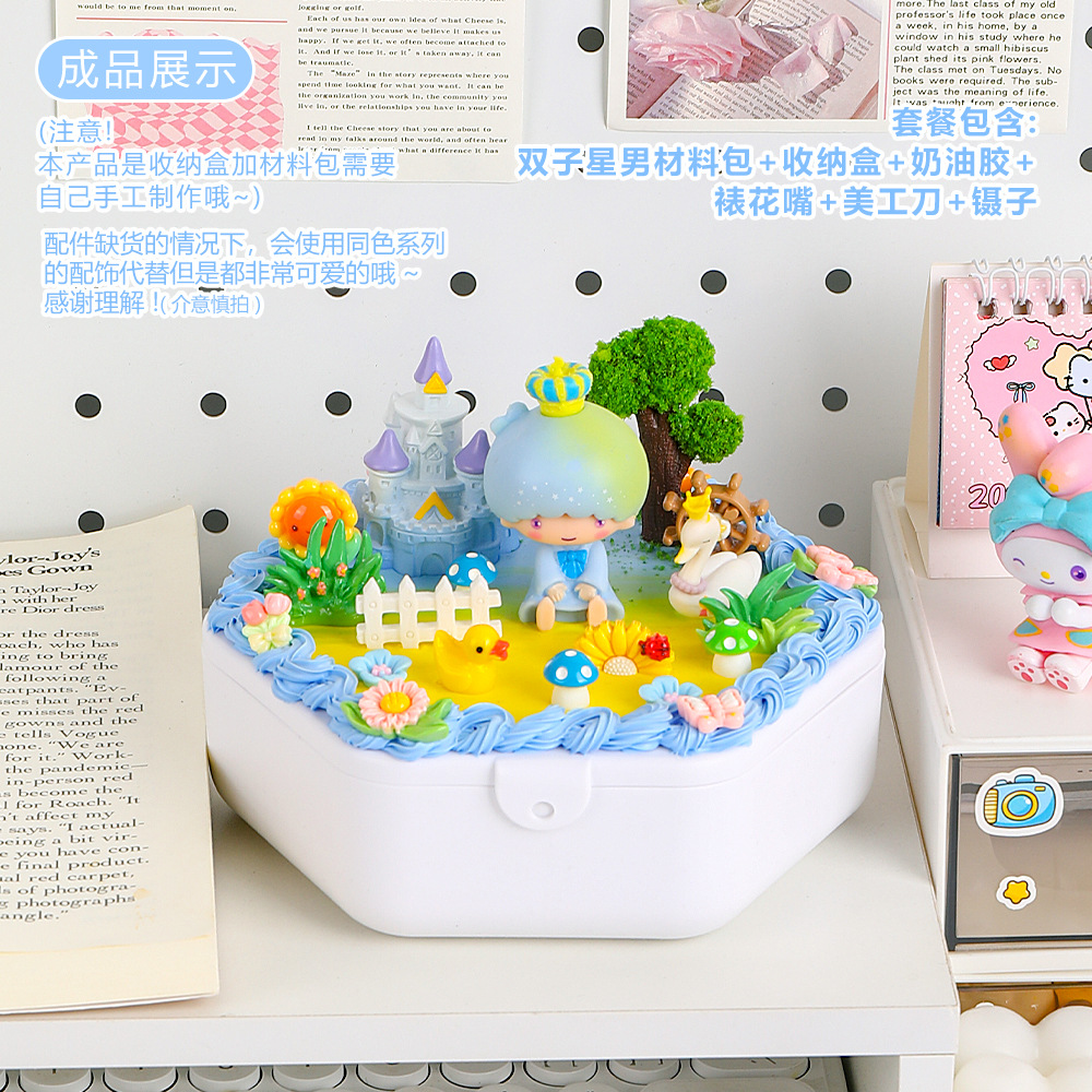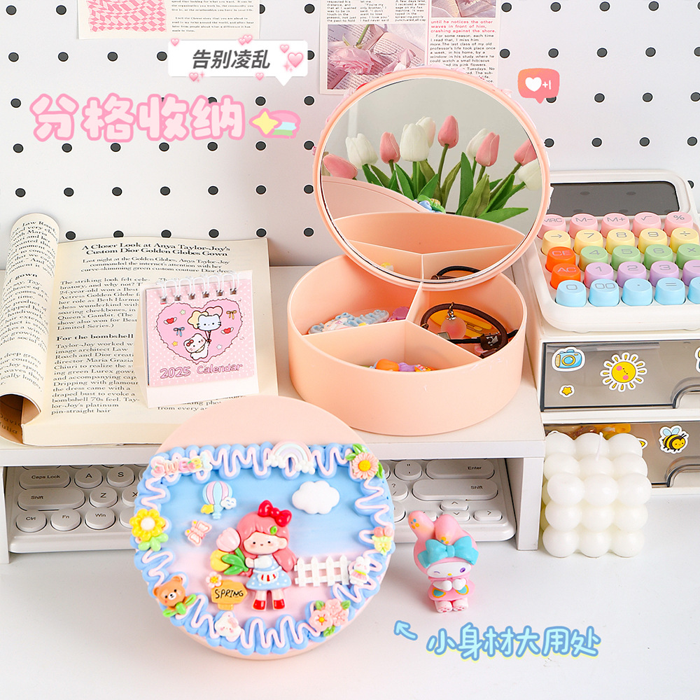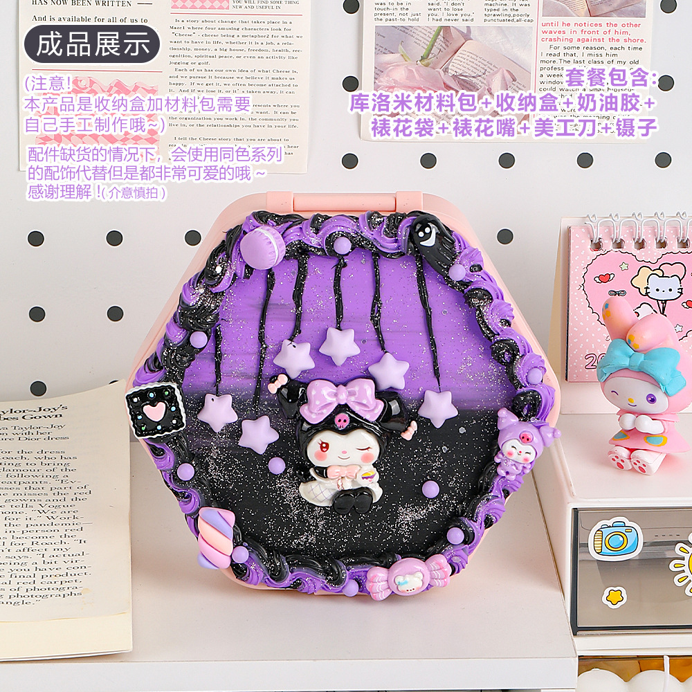手工diy奶油胶化妆镜收纳盒女生卡通kt猫材料包饰品首饰盒小玩具