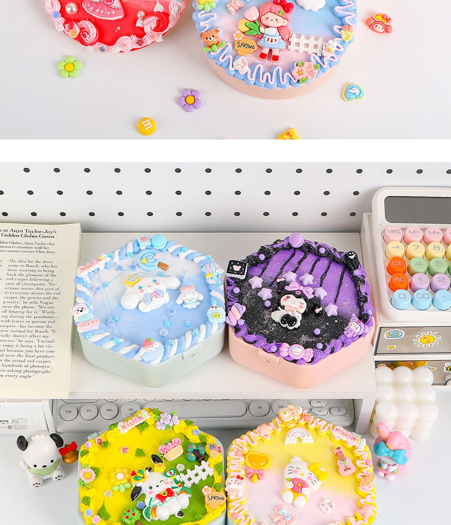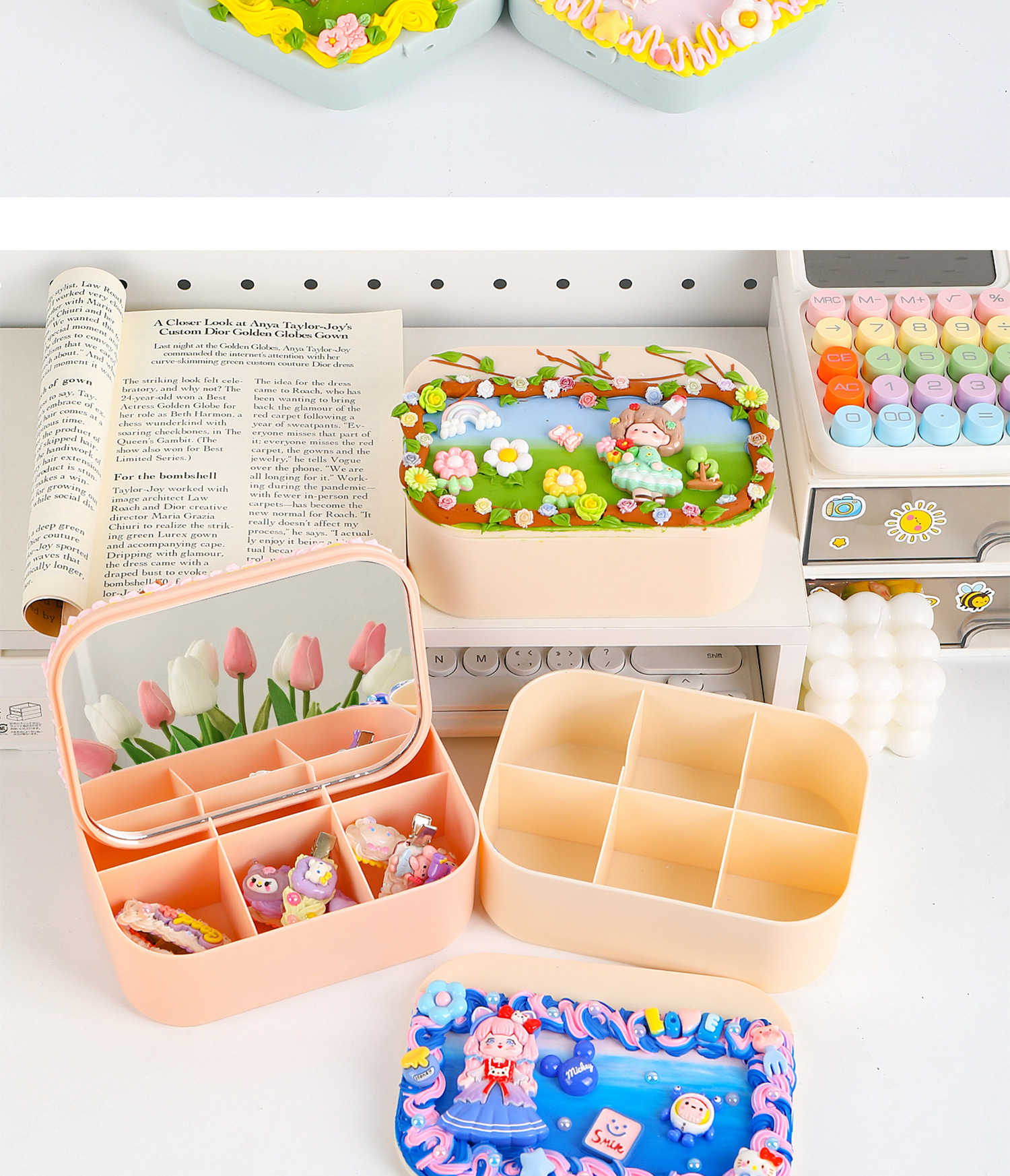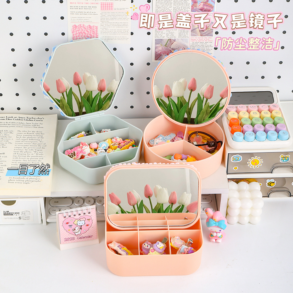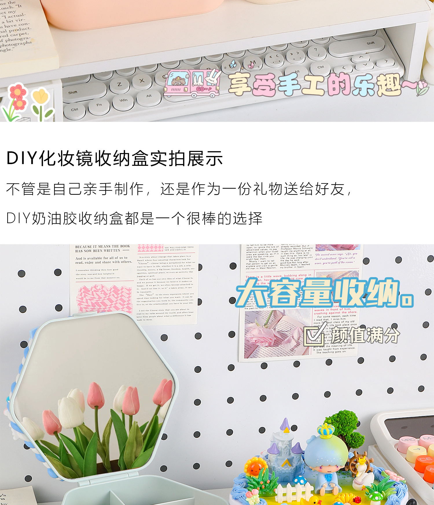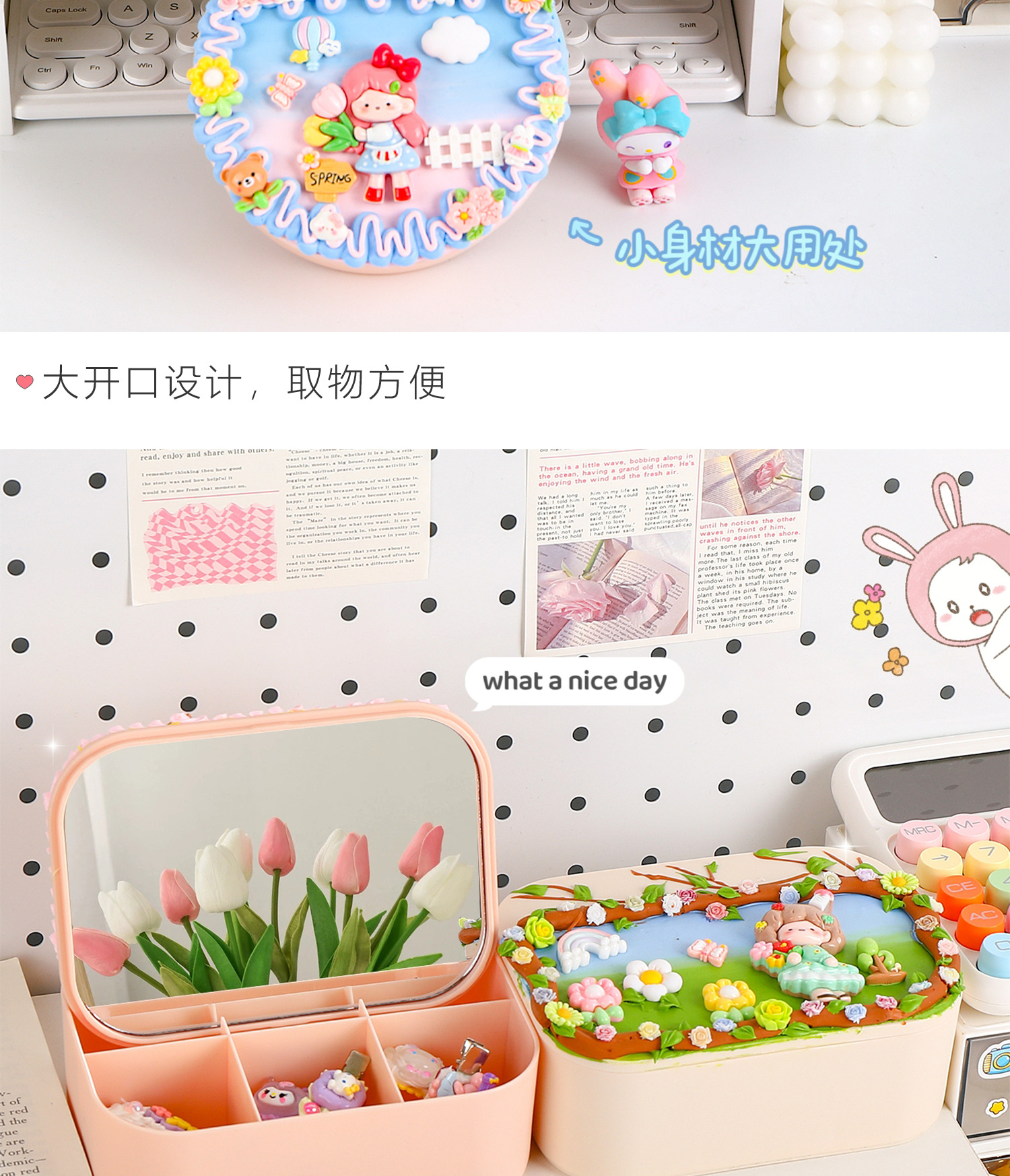 手工diy奶油胶化妆镜收纳盒女生卡通kt猫材料包饰品首饰盒小玩具