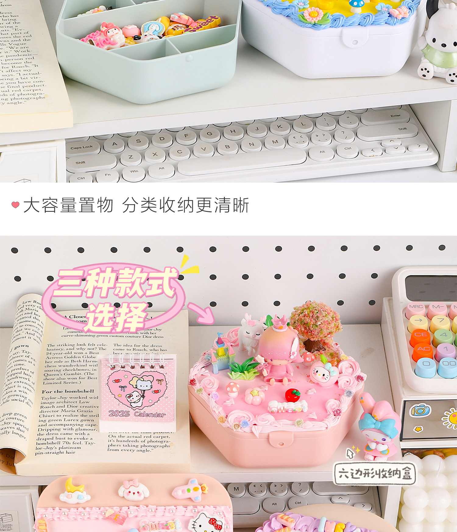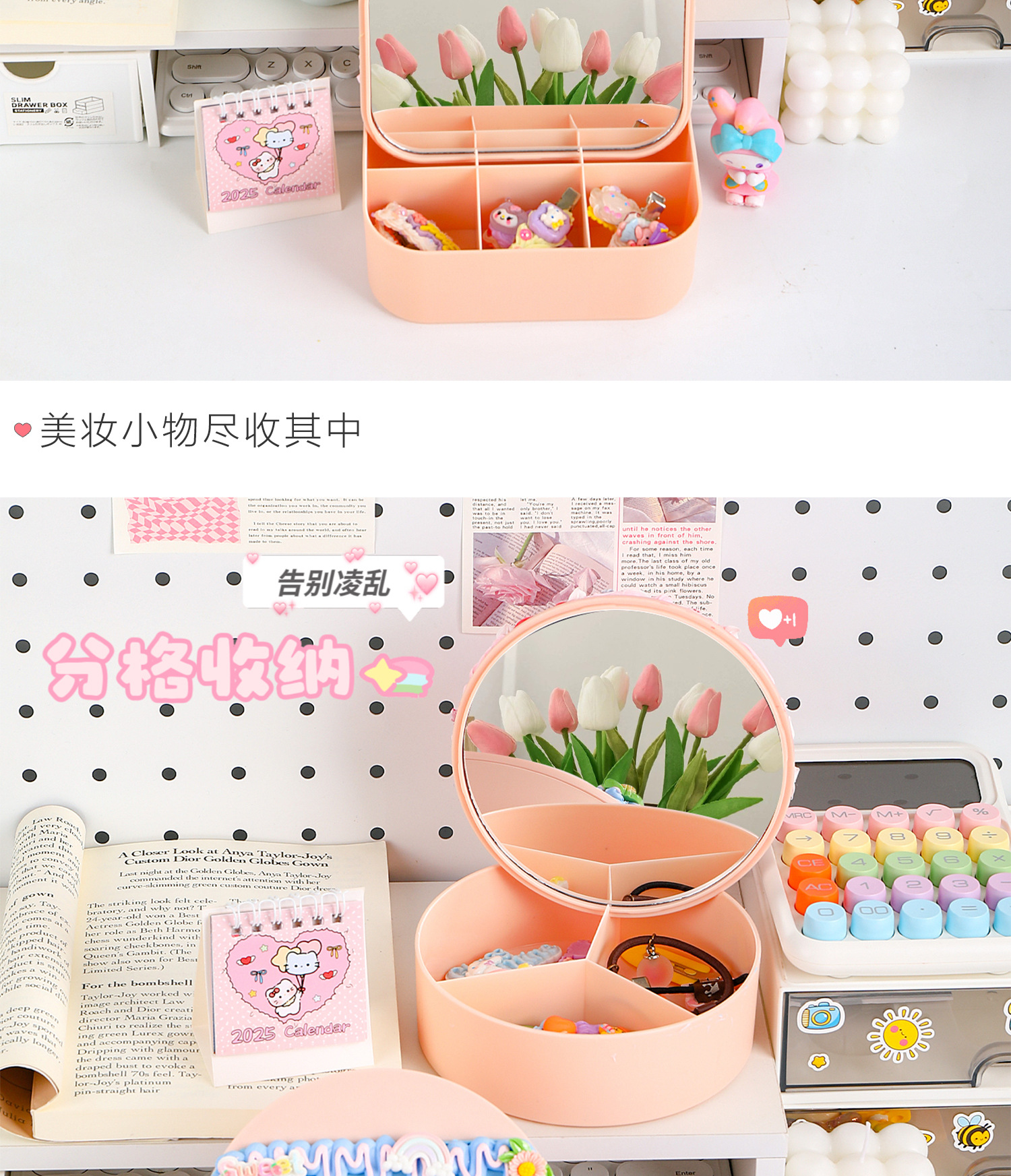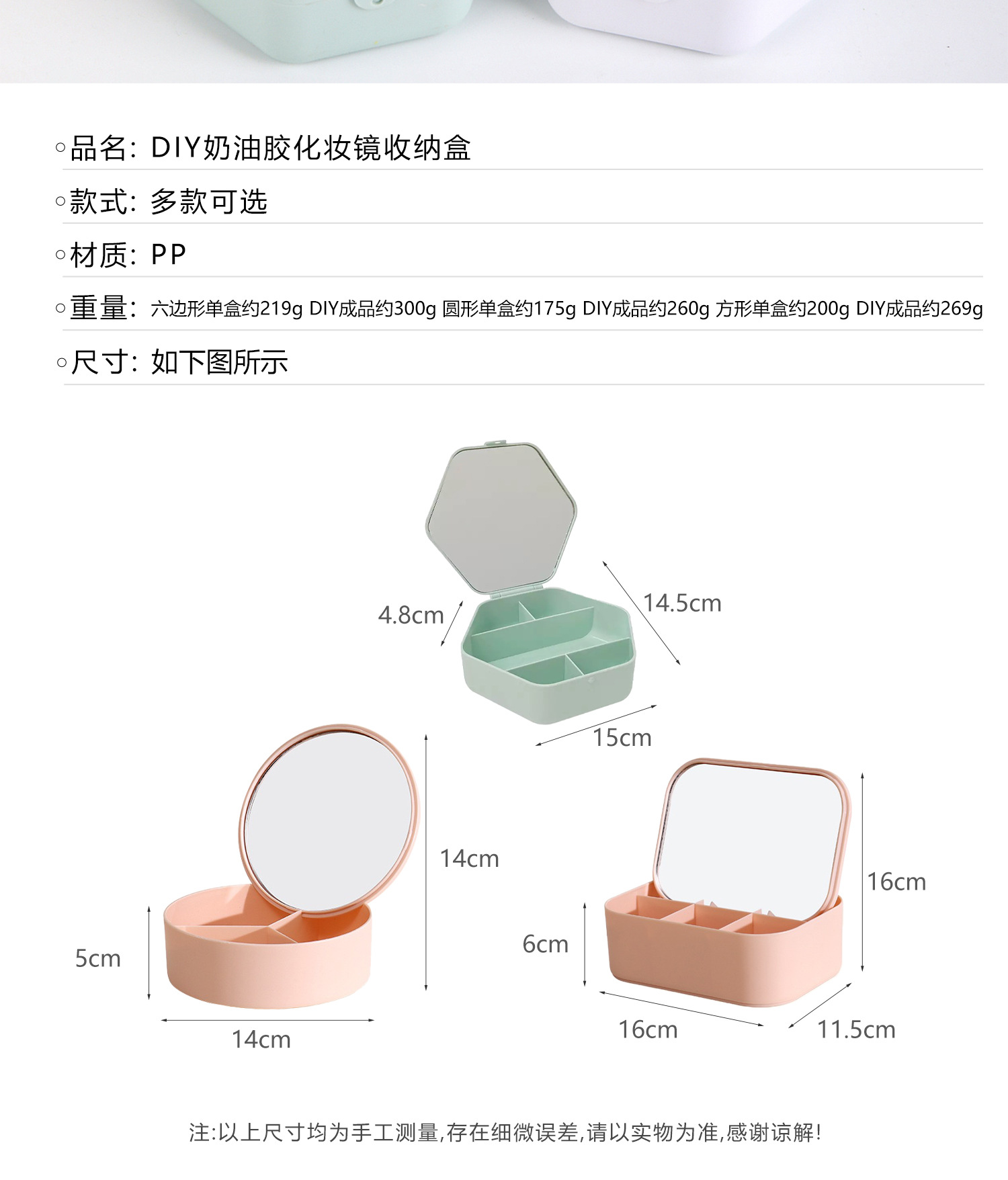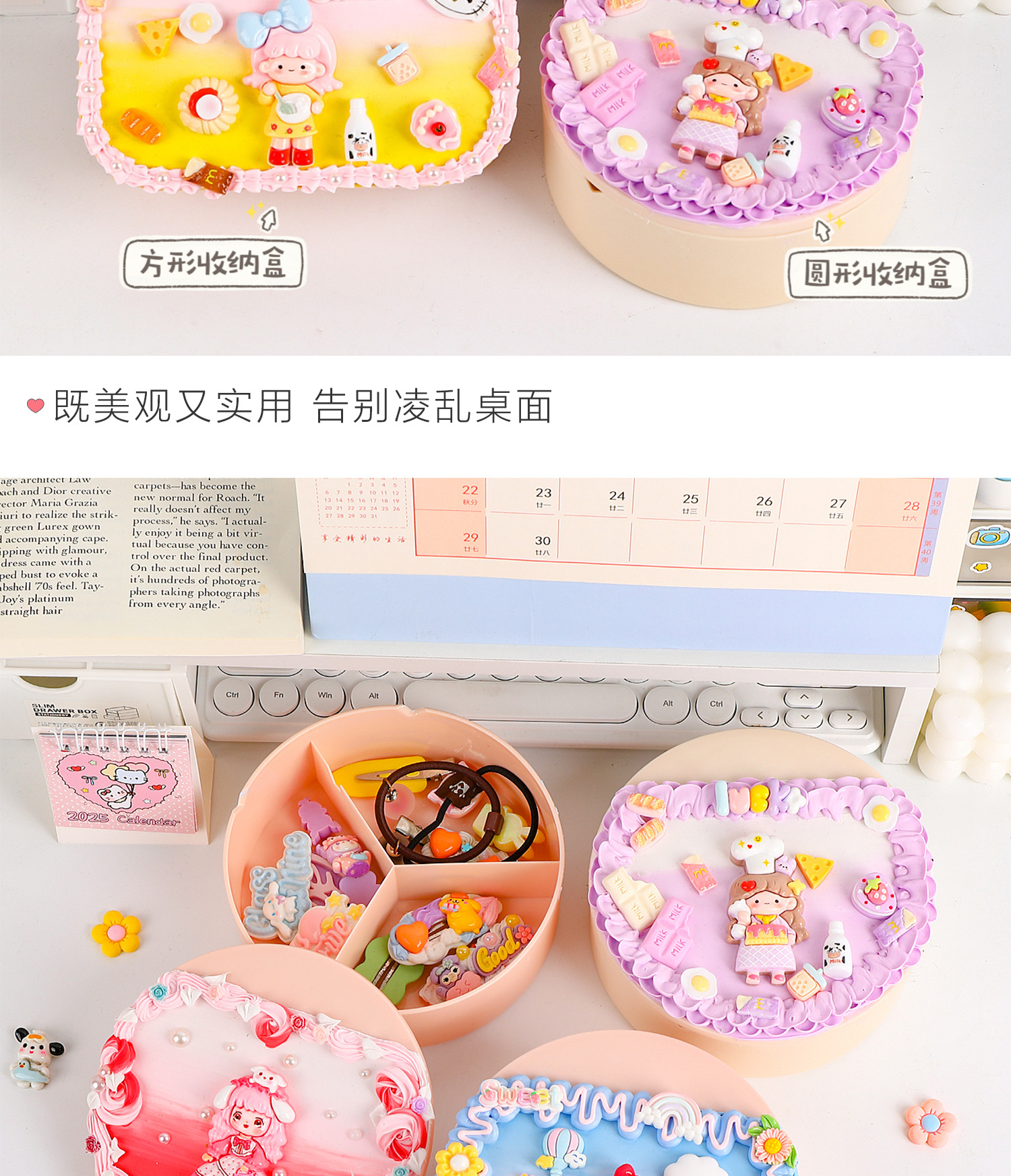 手工diy奶油胶化妆镜收纳盒女生卡通kt猫材料包饰品首饰盒小玩具