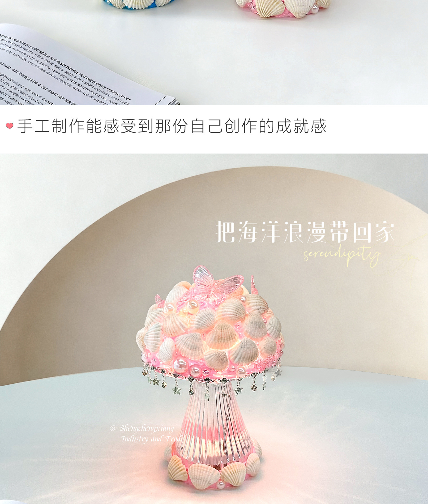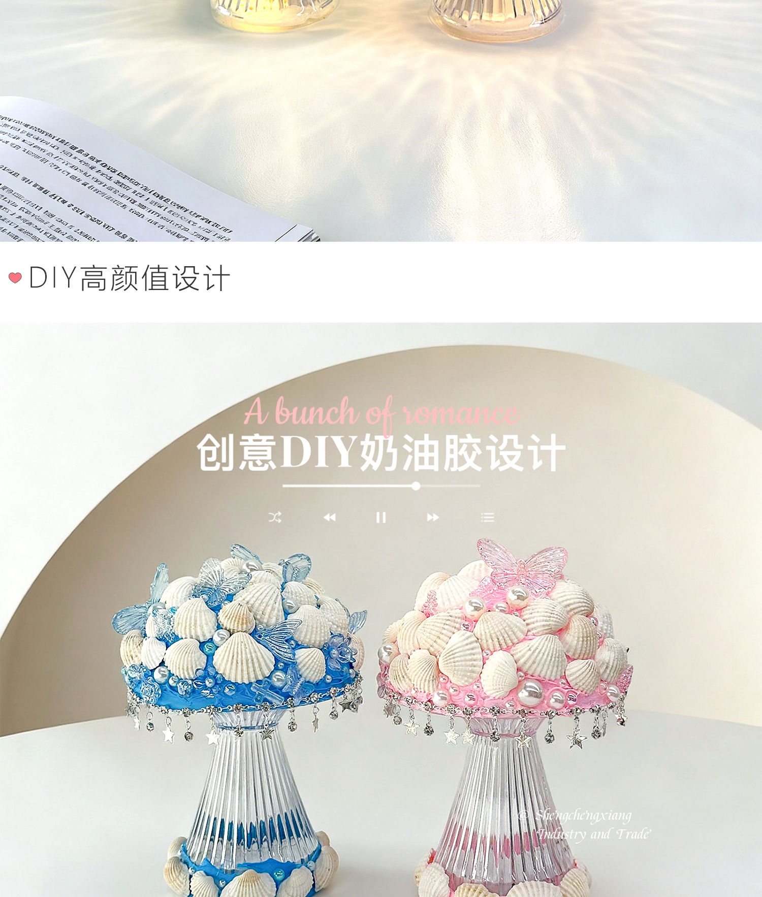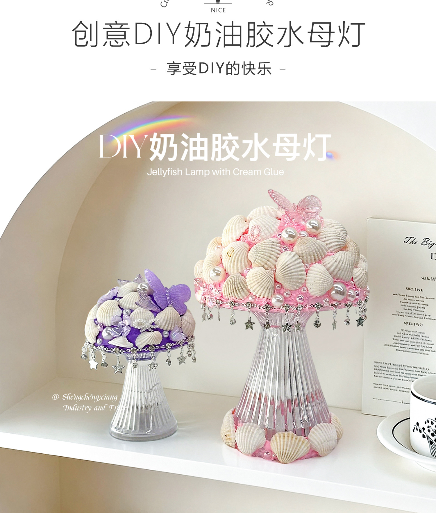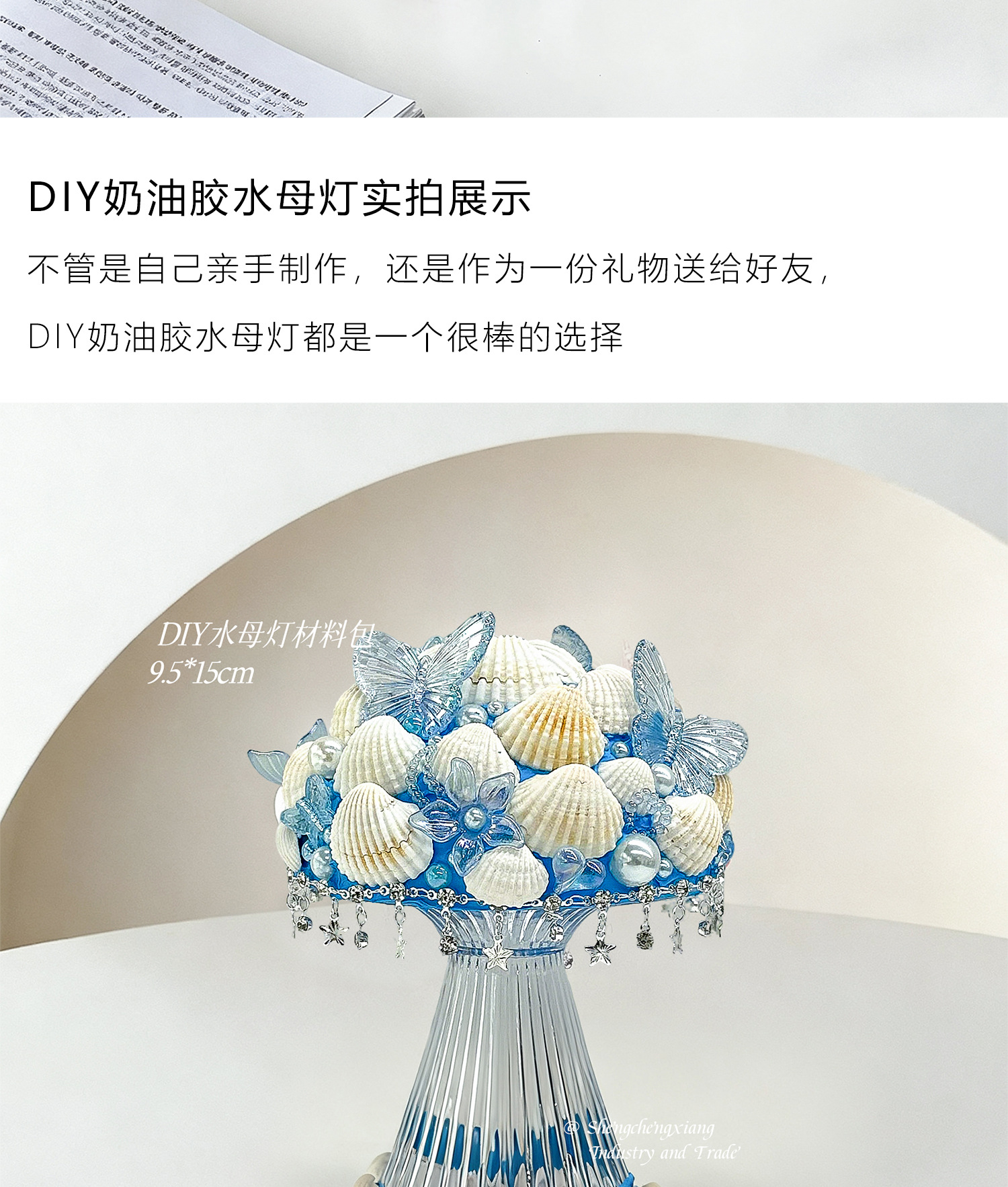 新款儿童海洋贝壳水母灯手工diy奶油胶材料包制作小夜灯益智玩具