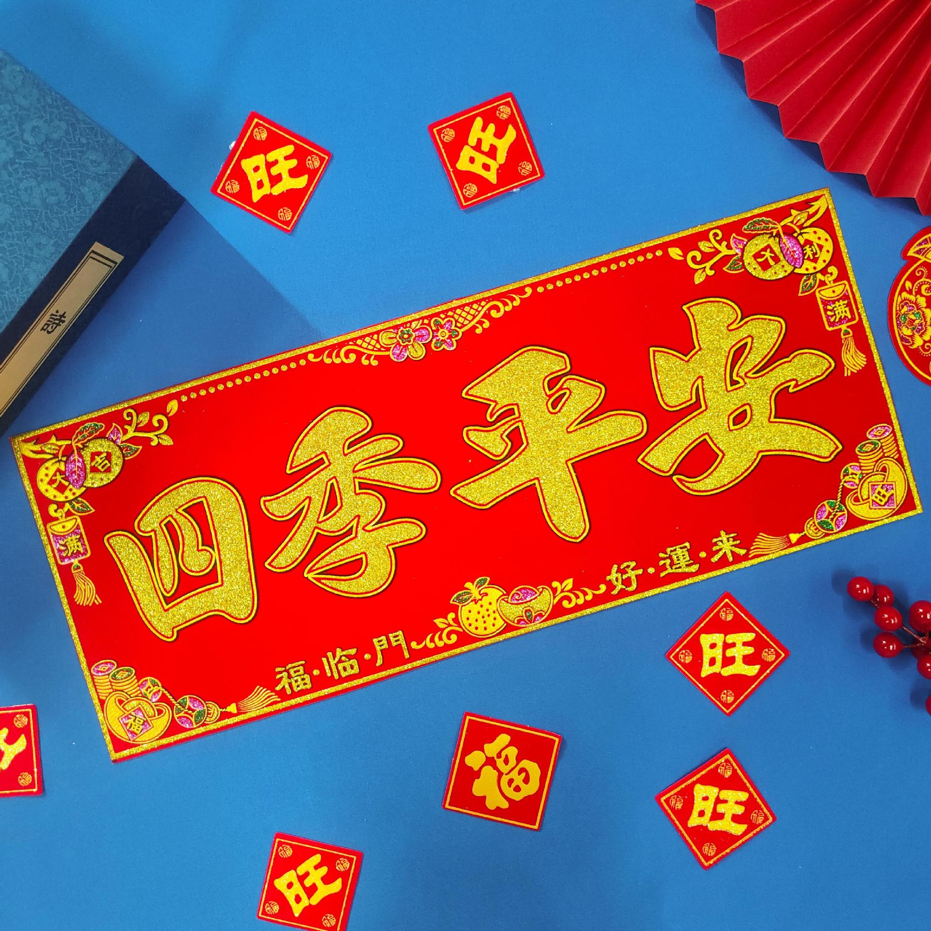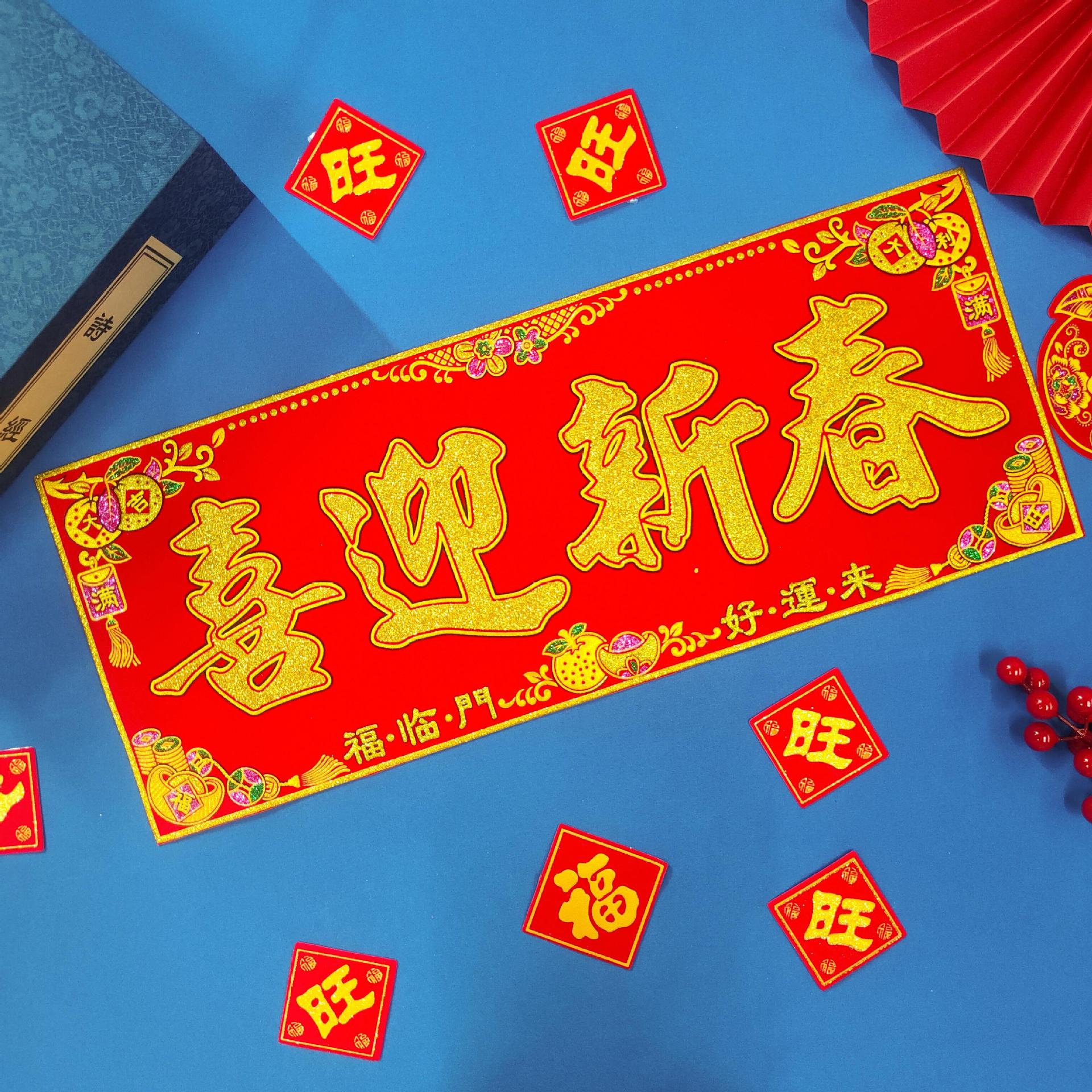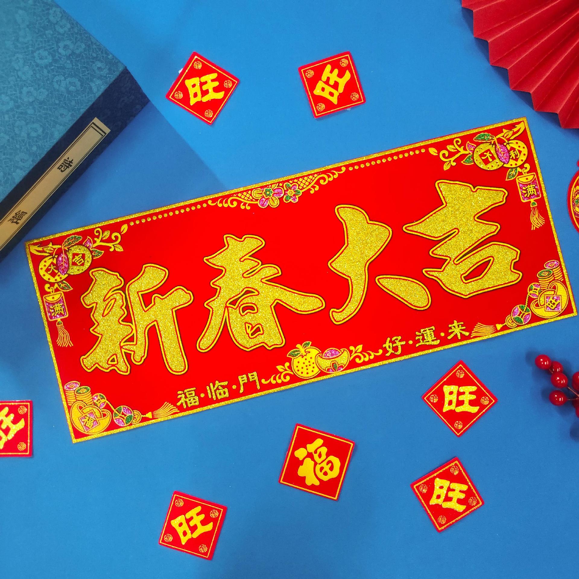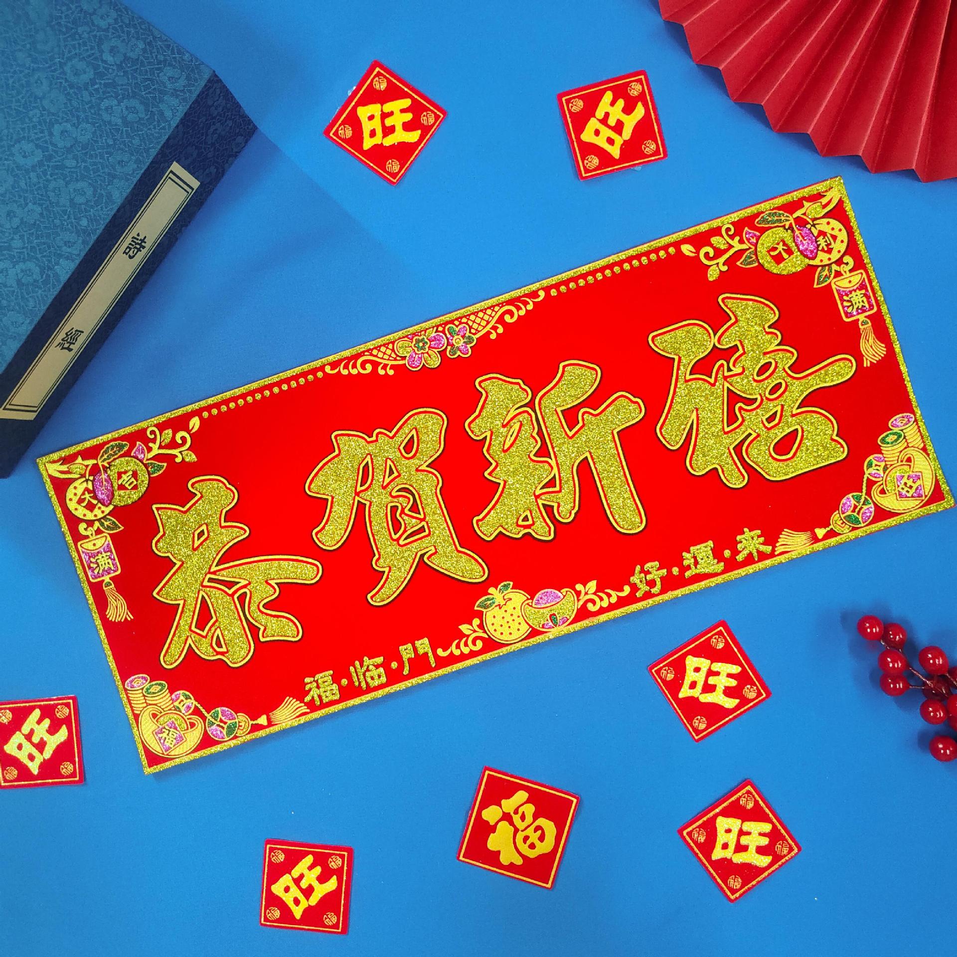 天官赐福横批2026绒布四字对联春联挥春门贴自粘烫金横联新春必备