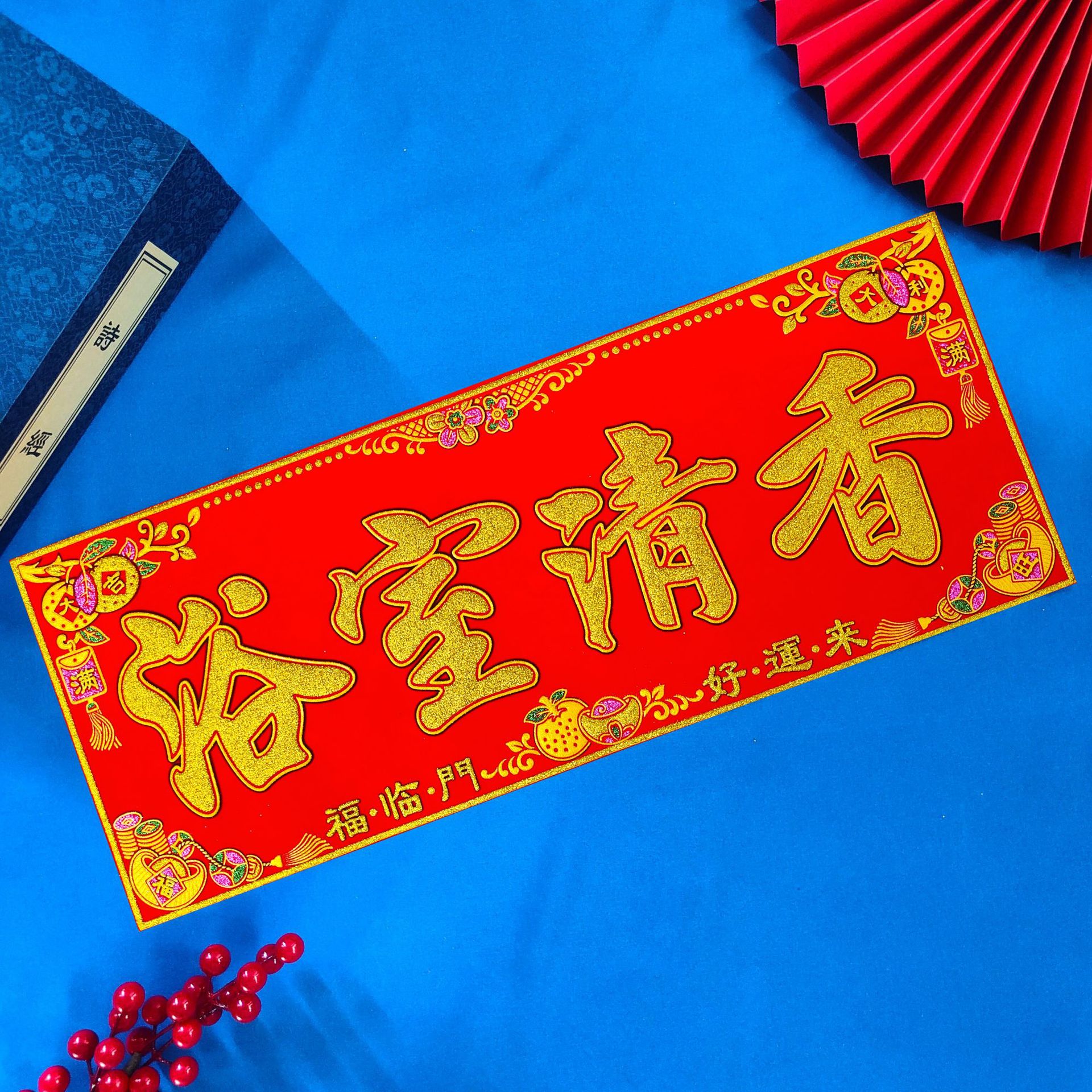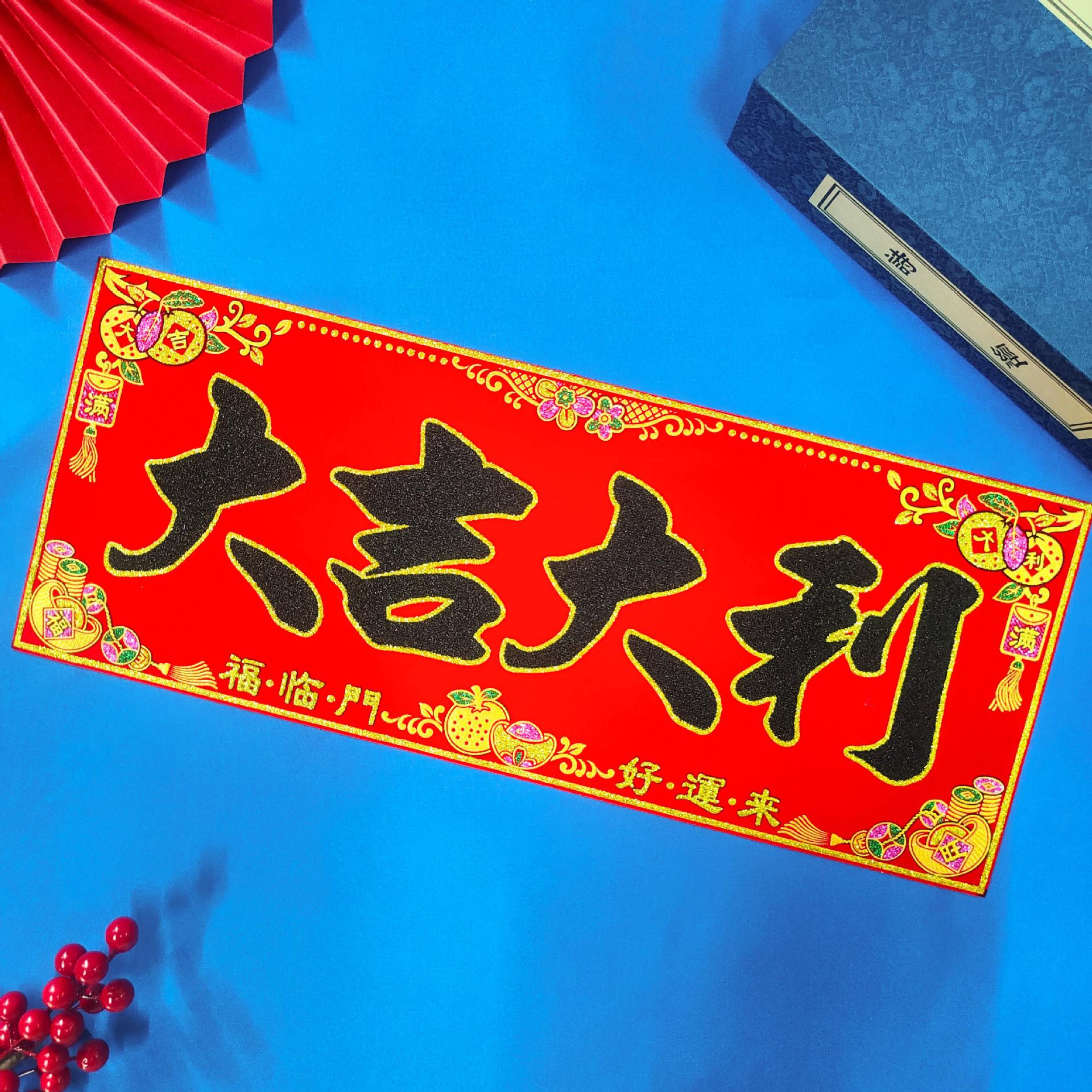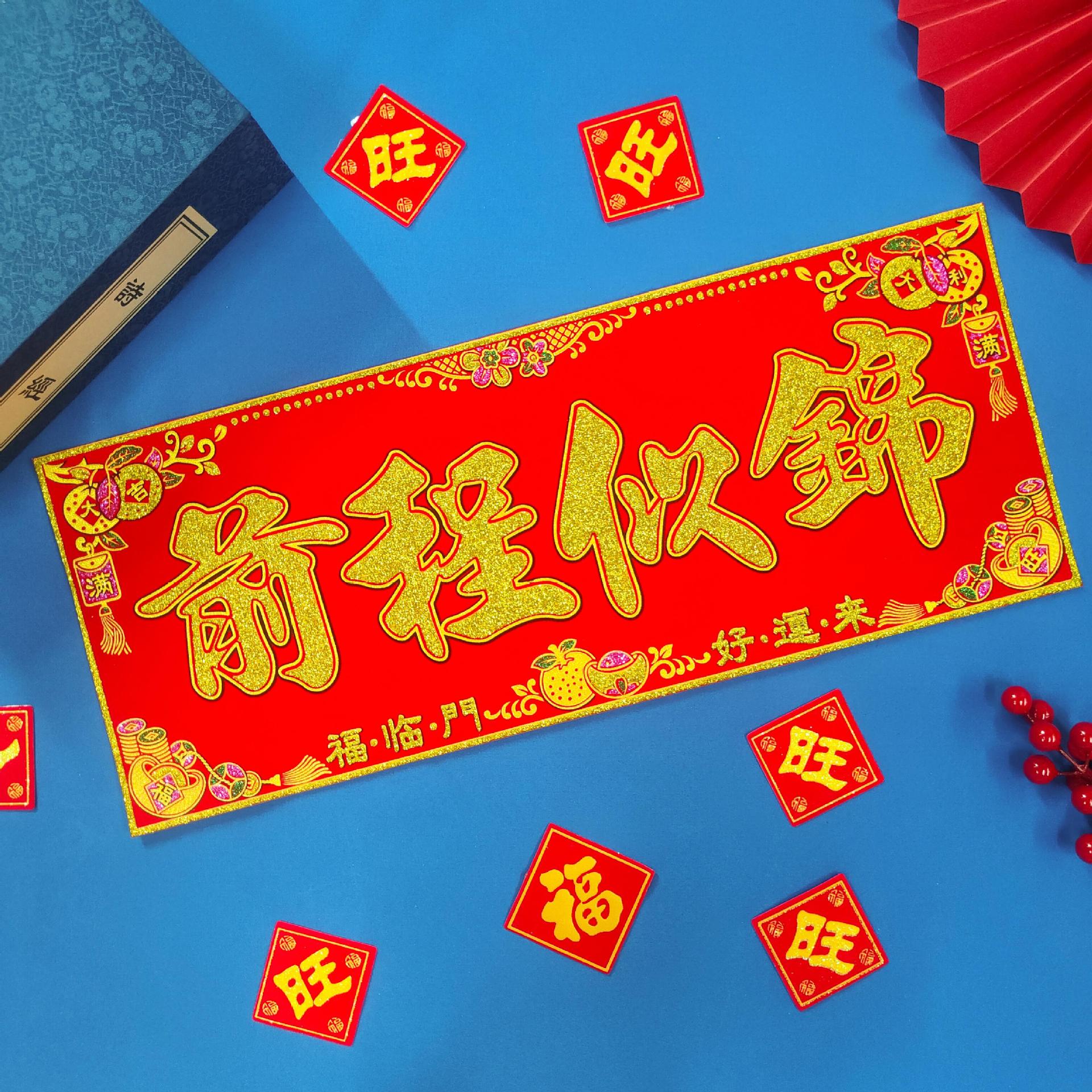 天官赐福横批2026绒布四字对联春联挥春门贴自粘烫金横联新春必备