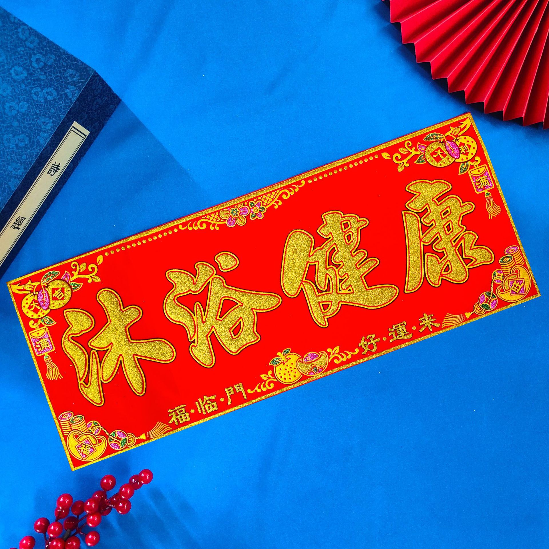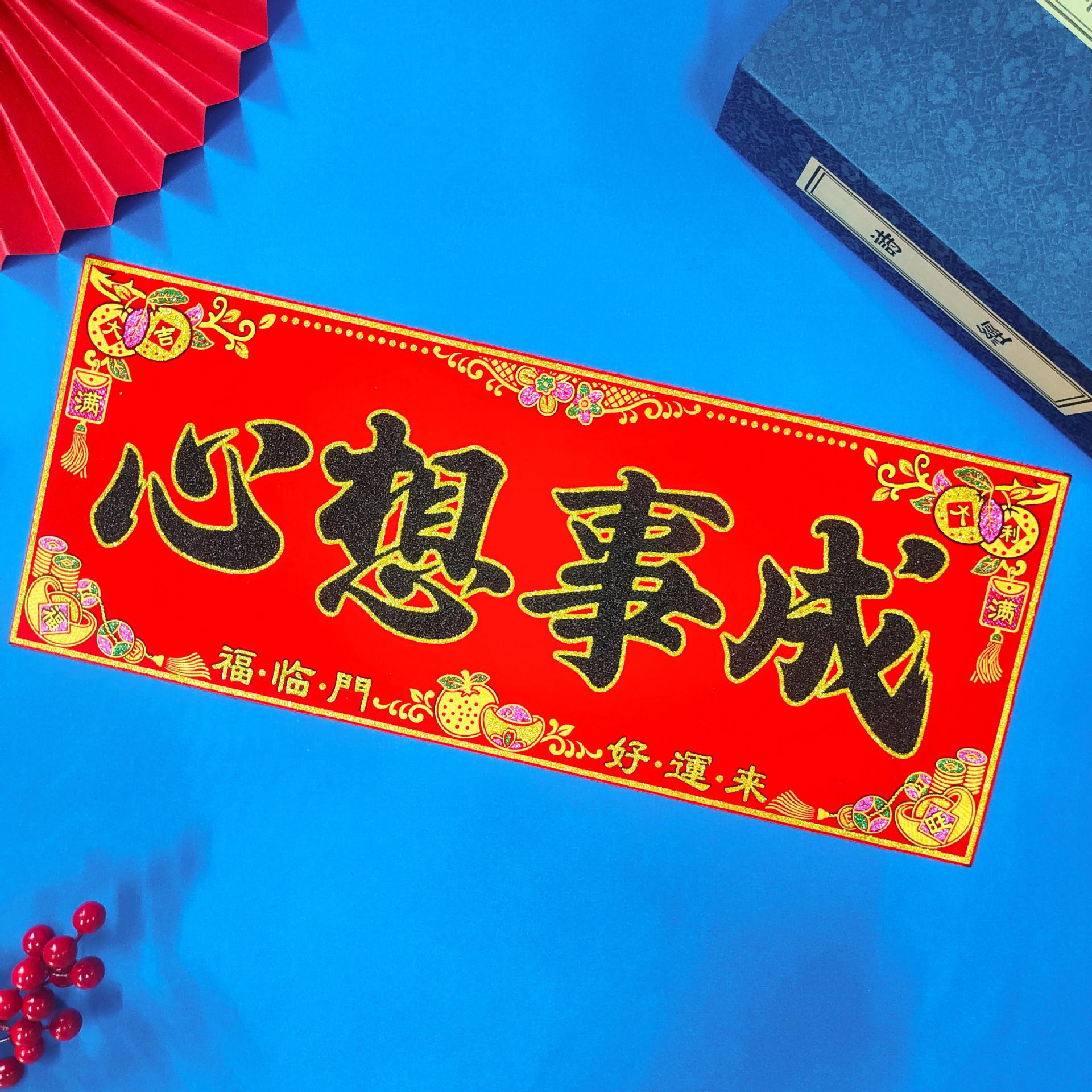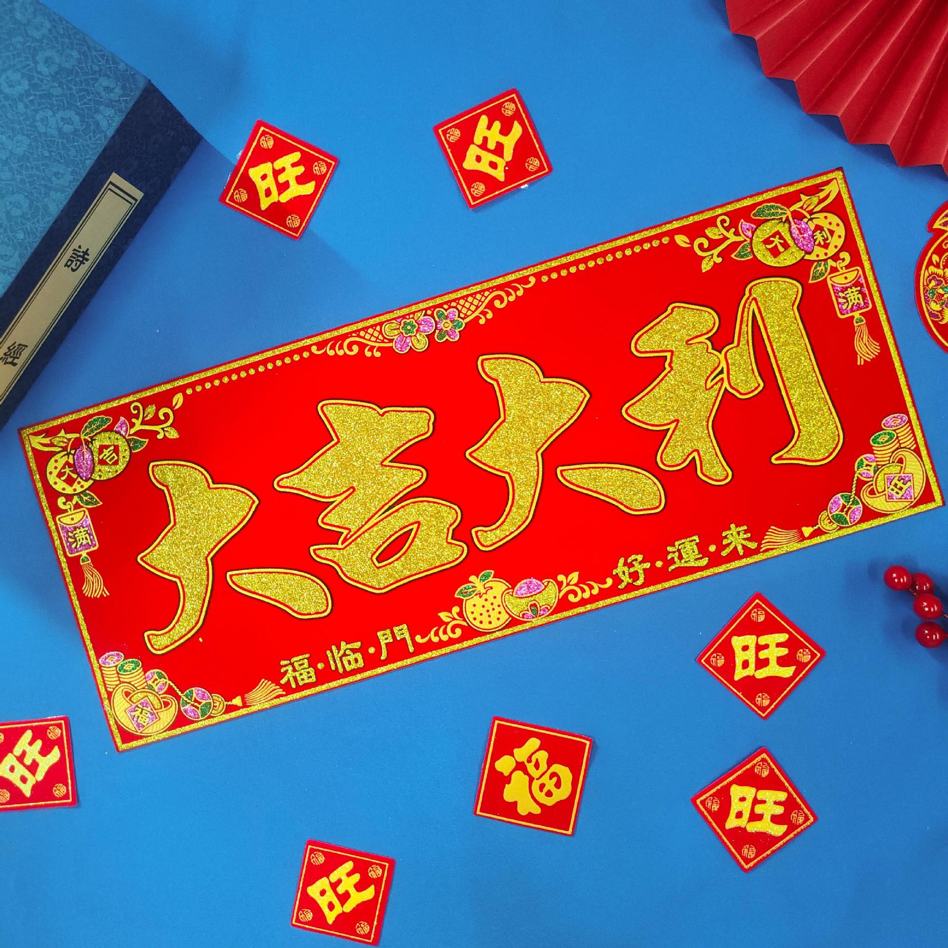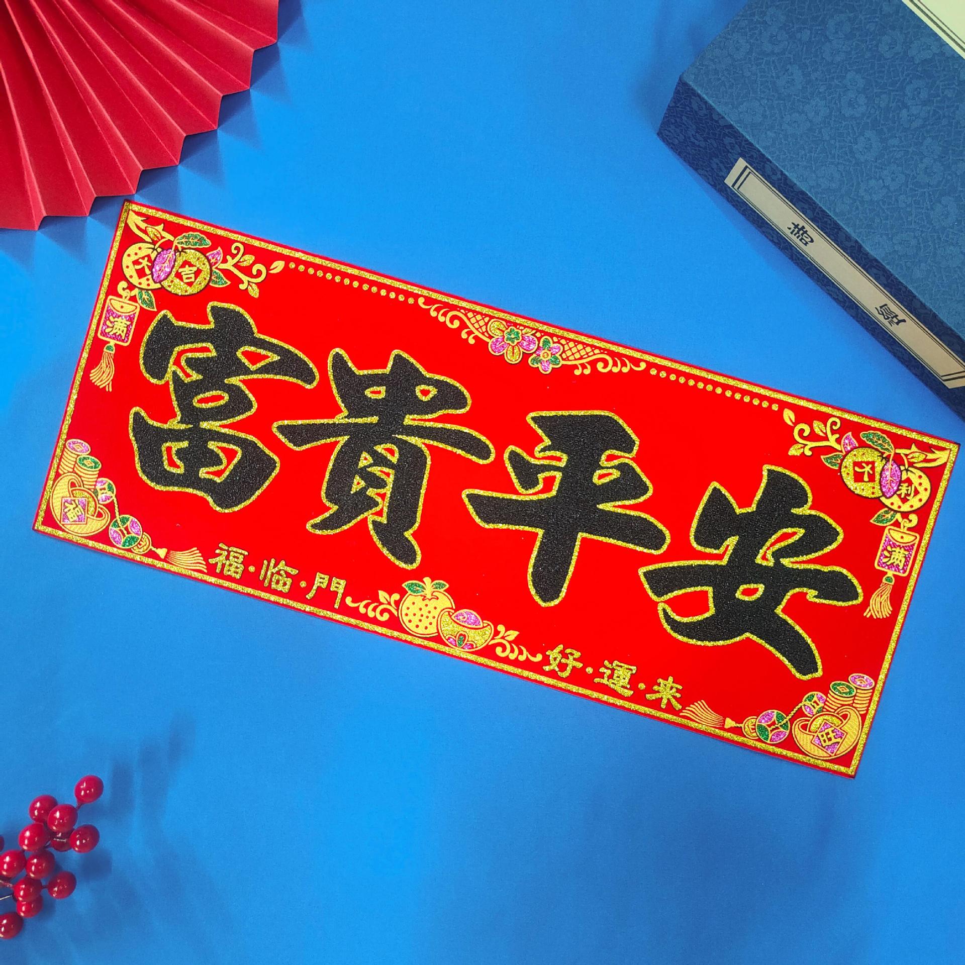 天官赐福横批2026绒布四字对联春联挥春门贴自粘烫金横联新春必备