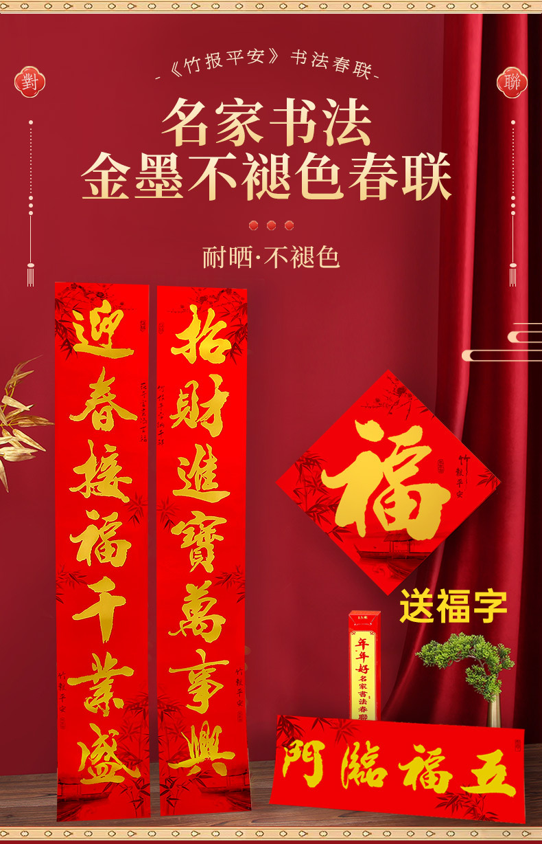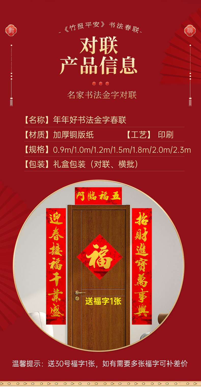 2026年新款年年好铜板纸书法金字对联不易褪色春节新年布置大门批