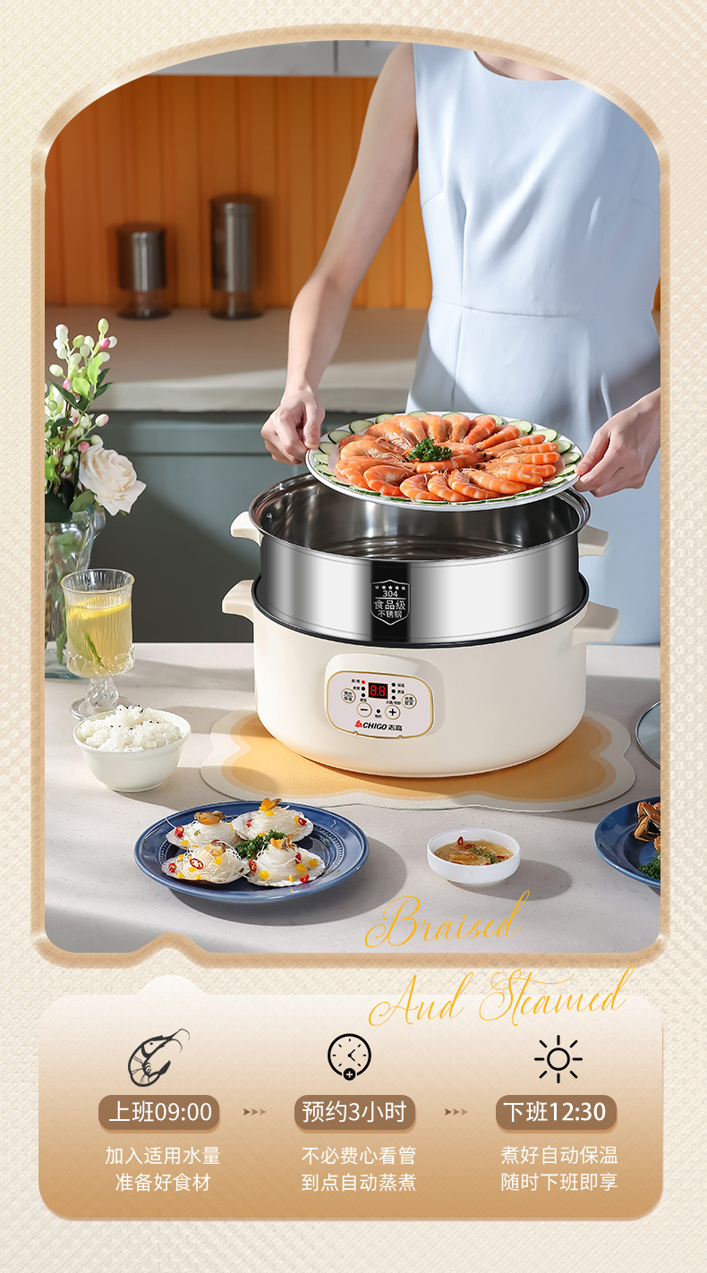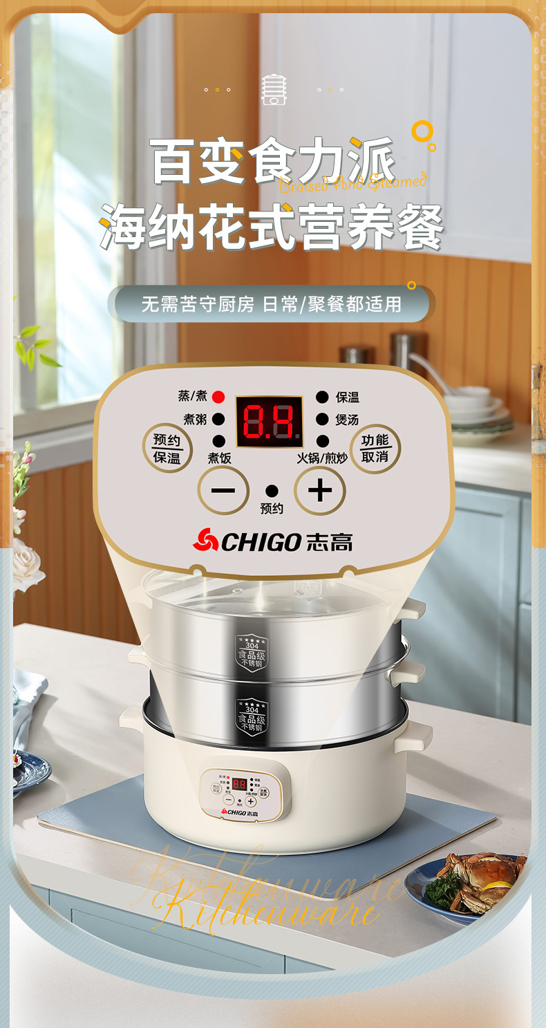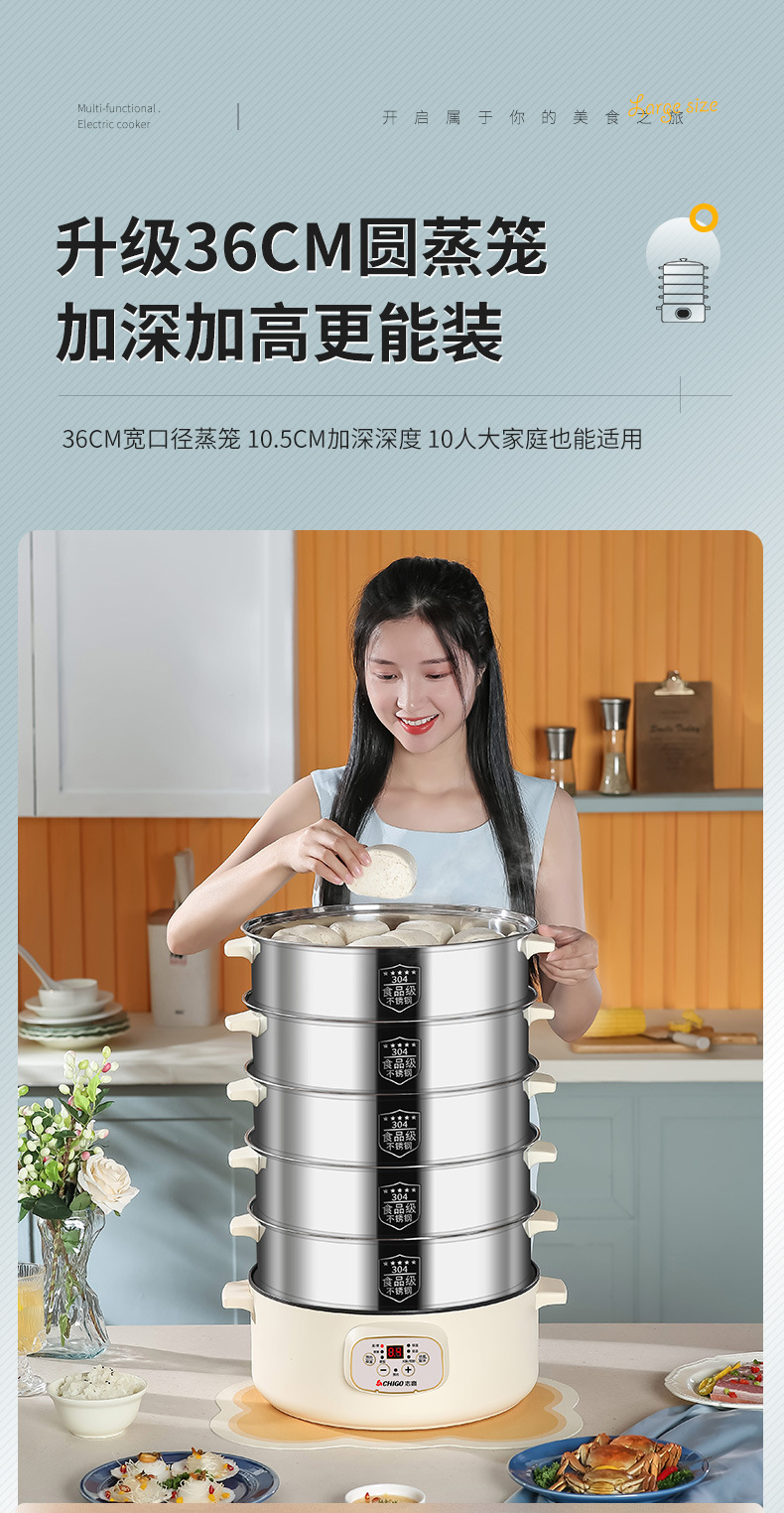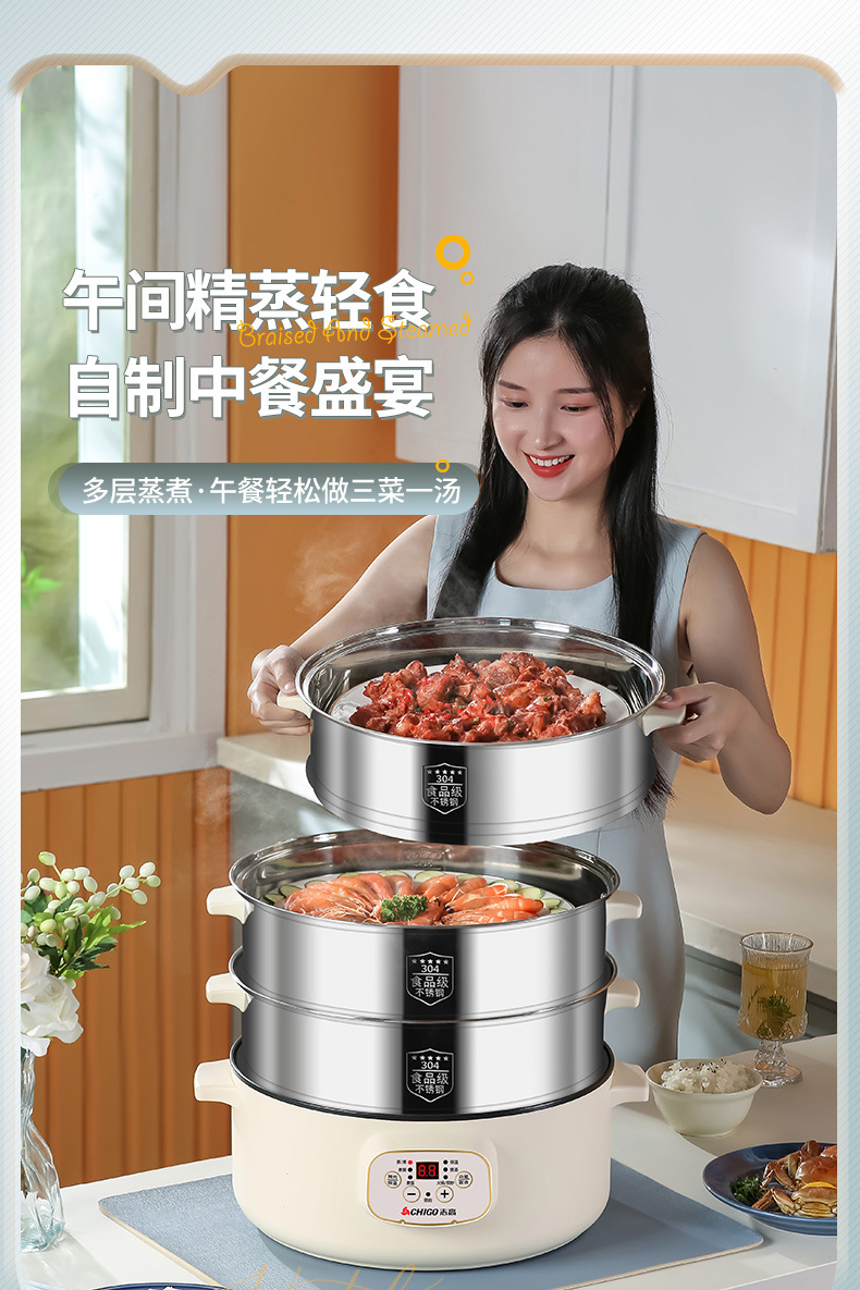 志高电蒸锅双层三层蒸菜电热锅家用自动大容量多功能一体蒸馍蒸笼
