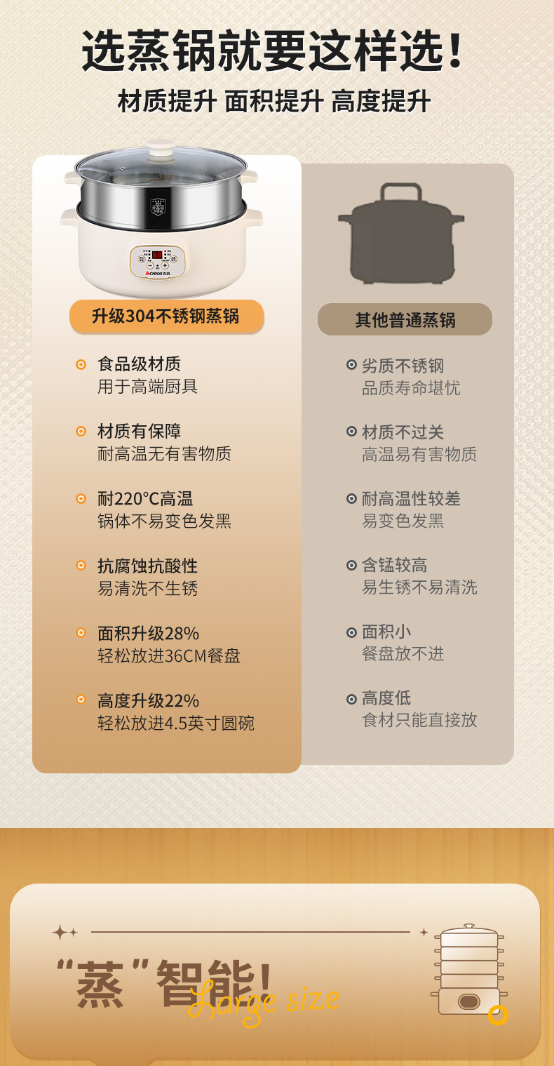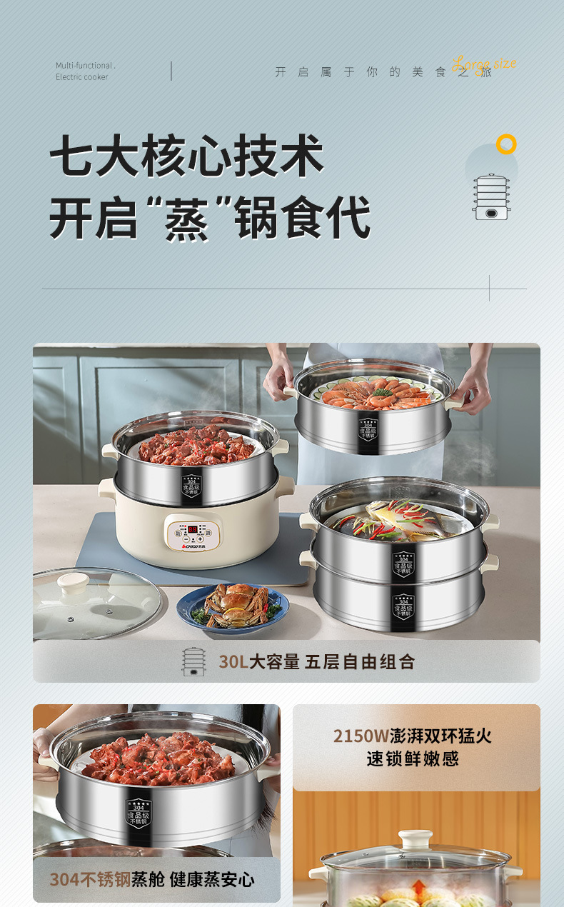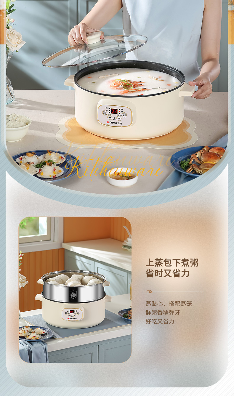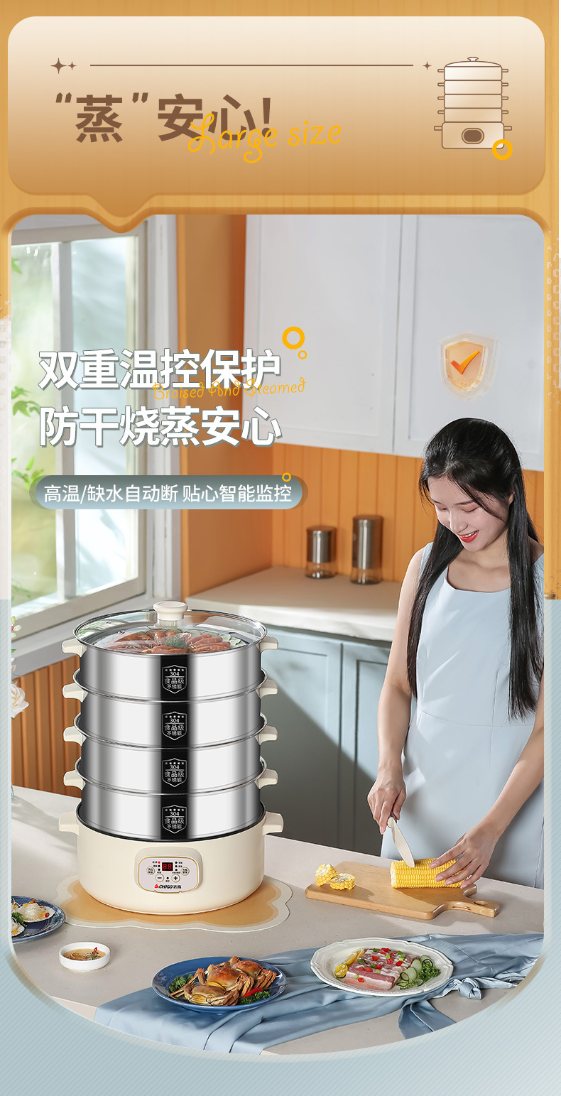 志高电蒸锅双层三层蒸菜电热锅家用自动大容量多功能一体蒸馍蒸笼
