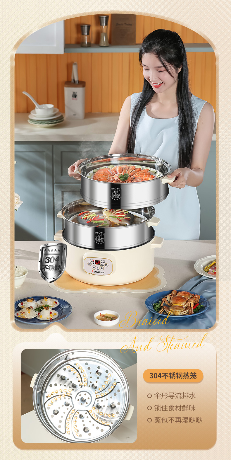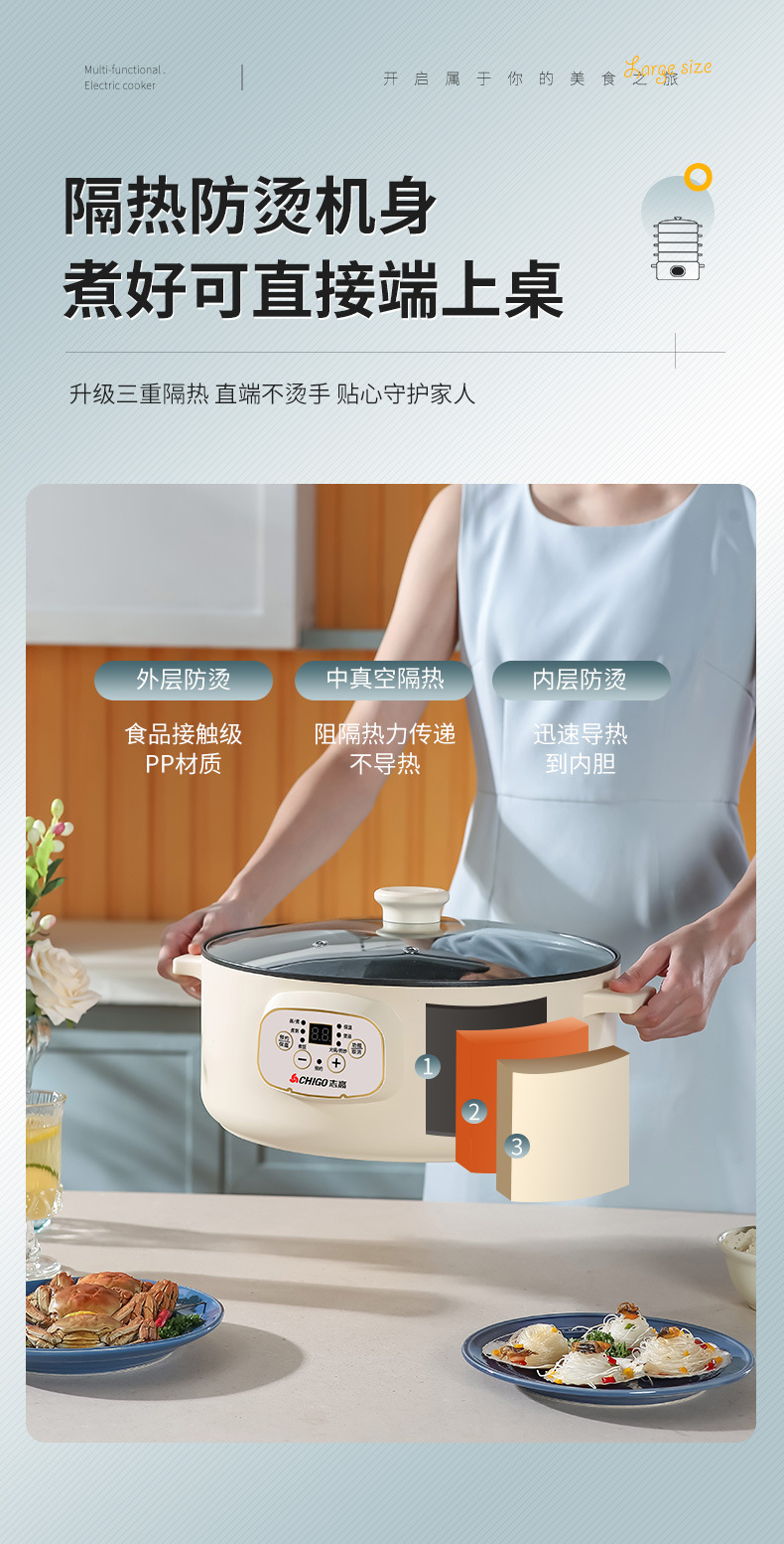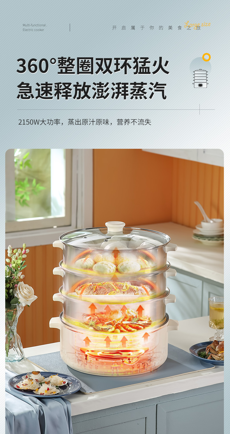 志高电蒸锅双层三层蒸菜电热锅家用自动大容量多功能一体蒸馍蒸笼