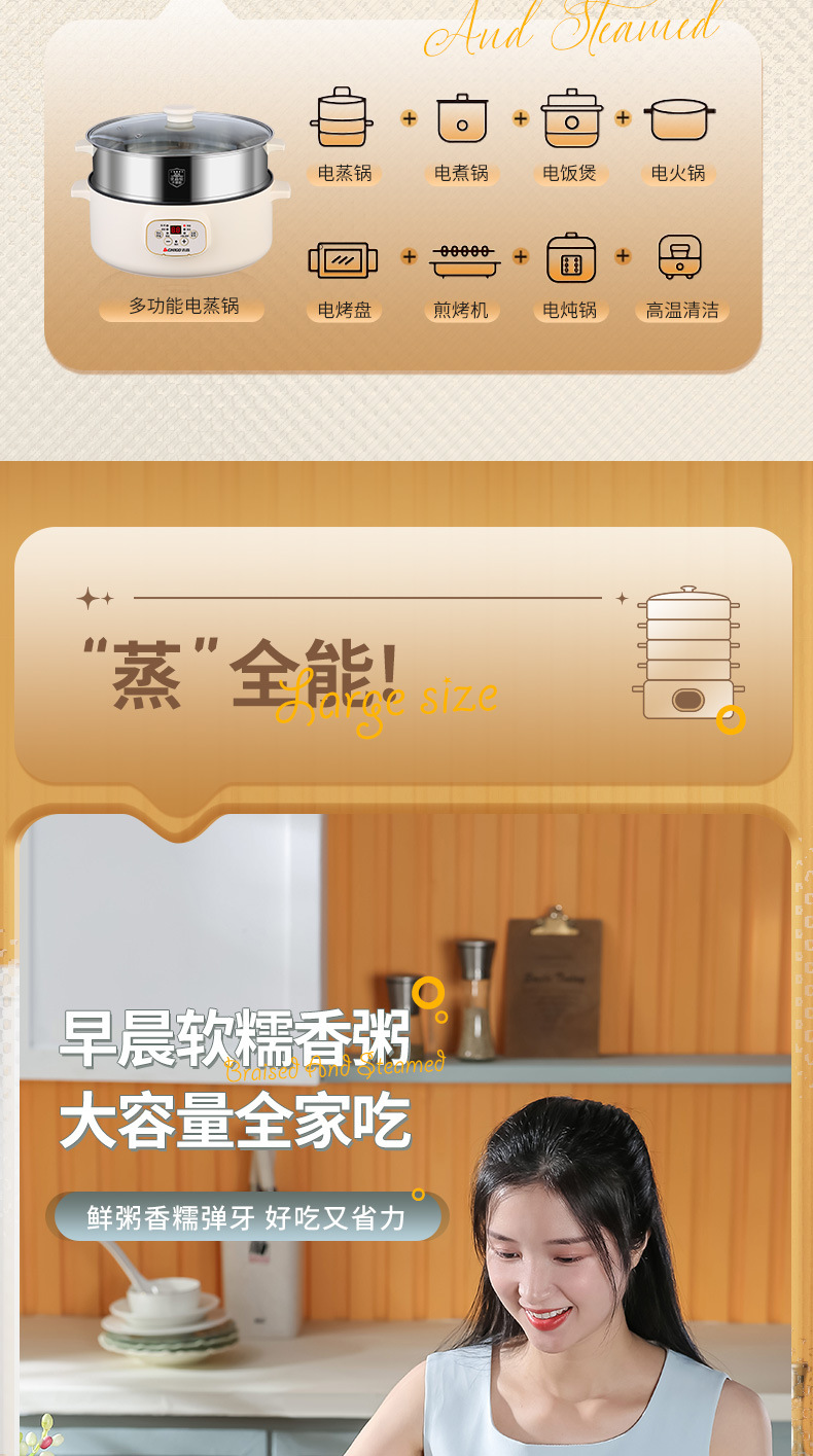 | 24cm electric steamer single pot + a steamer(24CM电蒸锅单锅+一蒸笼) | USD $15.1 | 997 piece available |