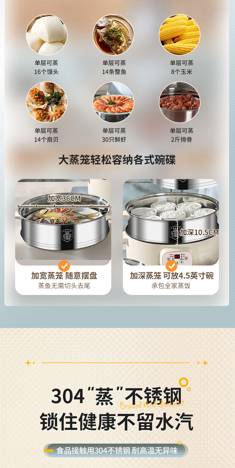 | 36cm electric steamer single pot + a steamer(36CM电蒸锅单锅+一蒸笼) | USD $40.19 | 1000 piece available |